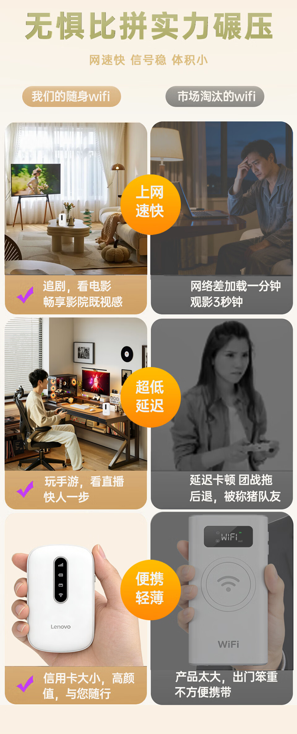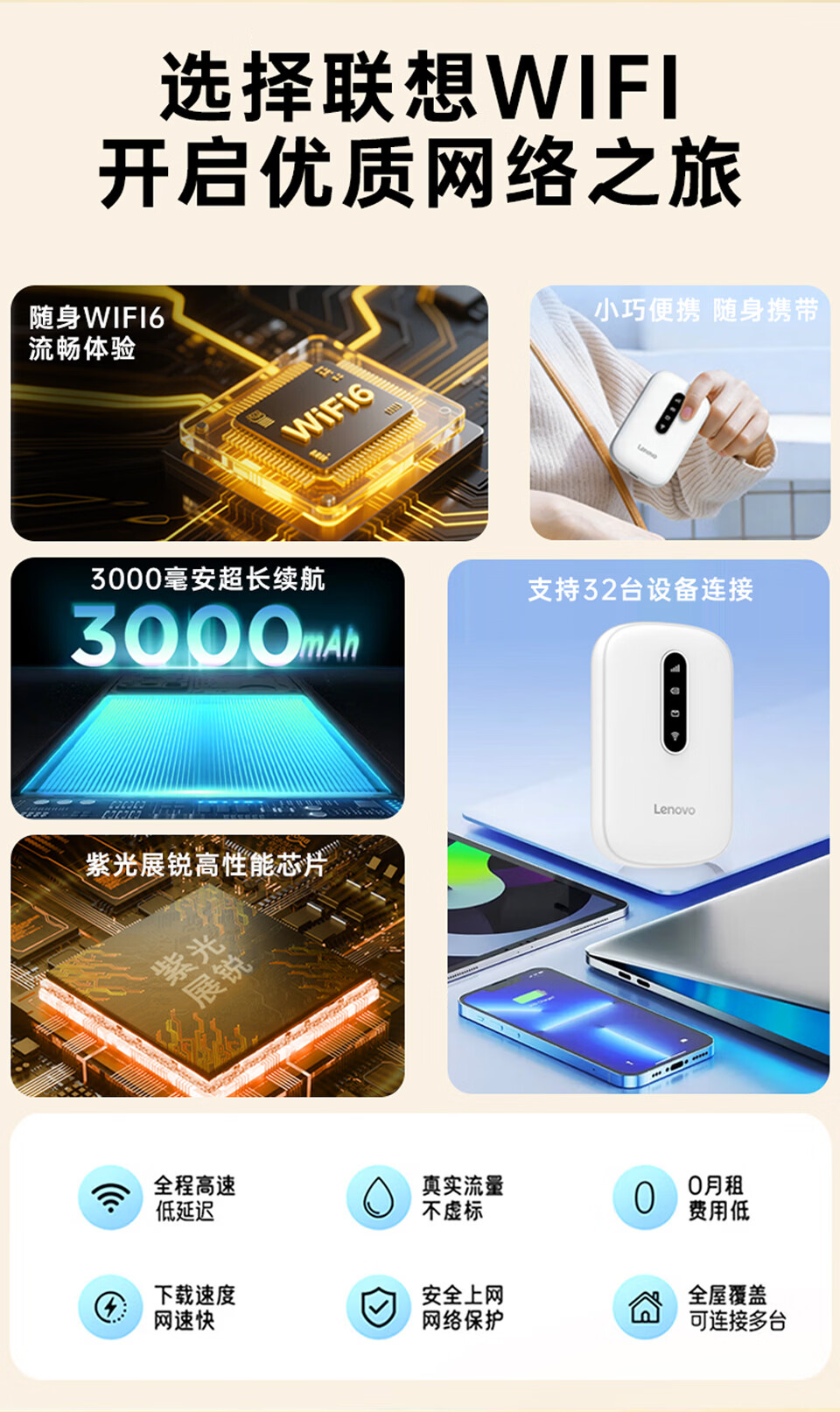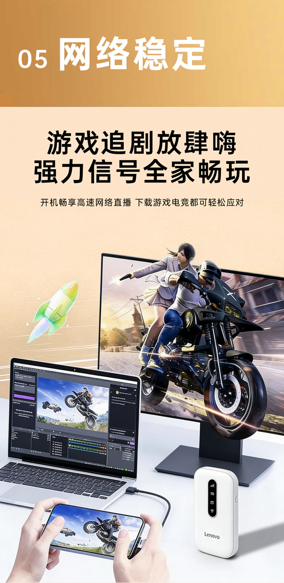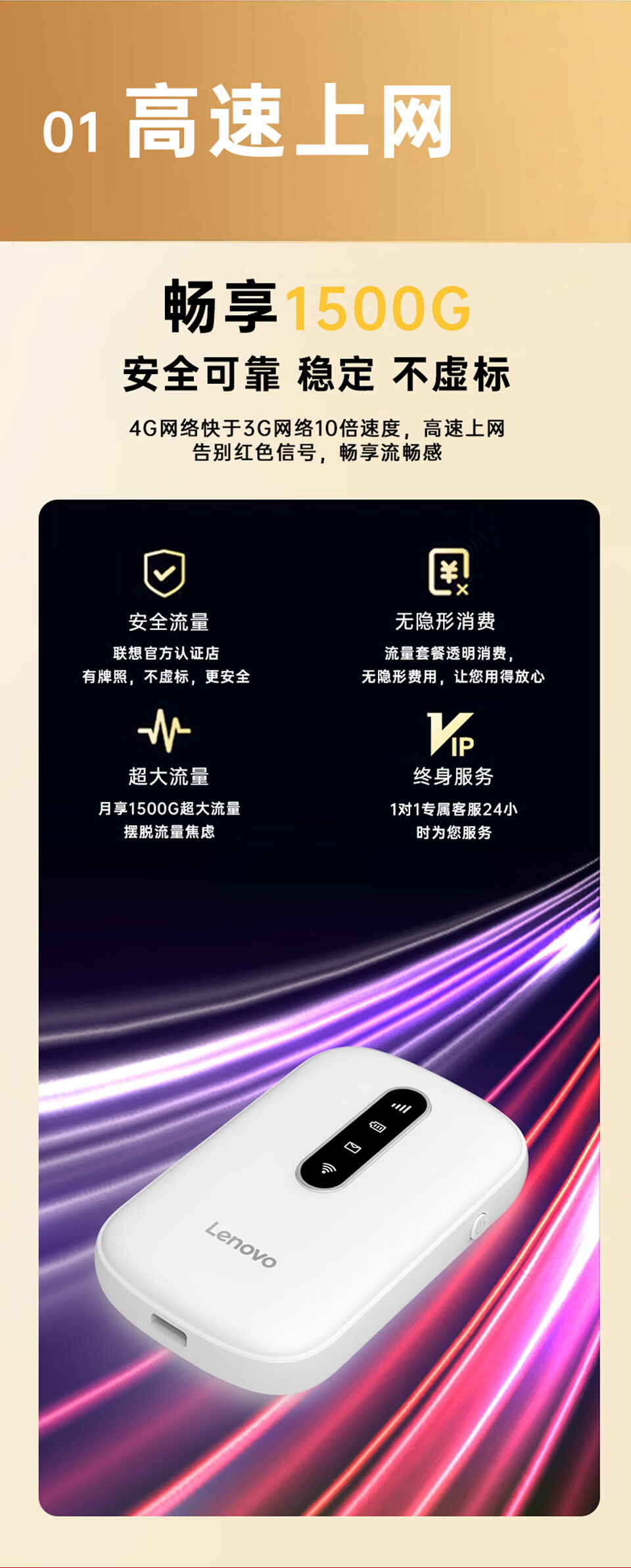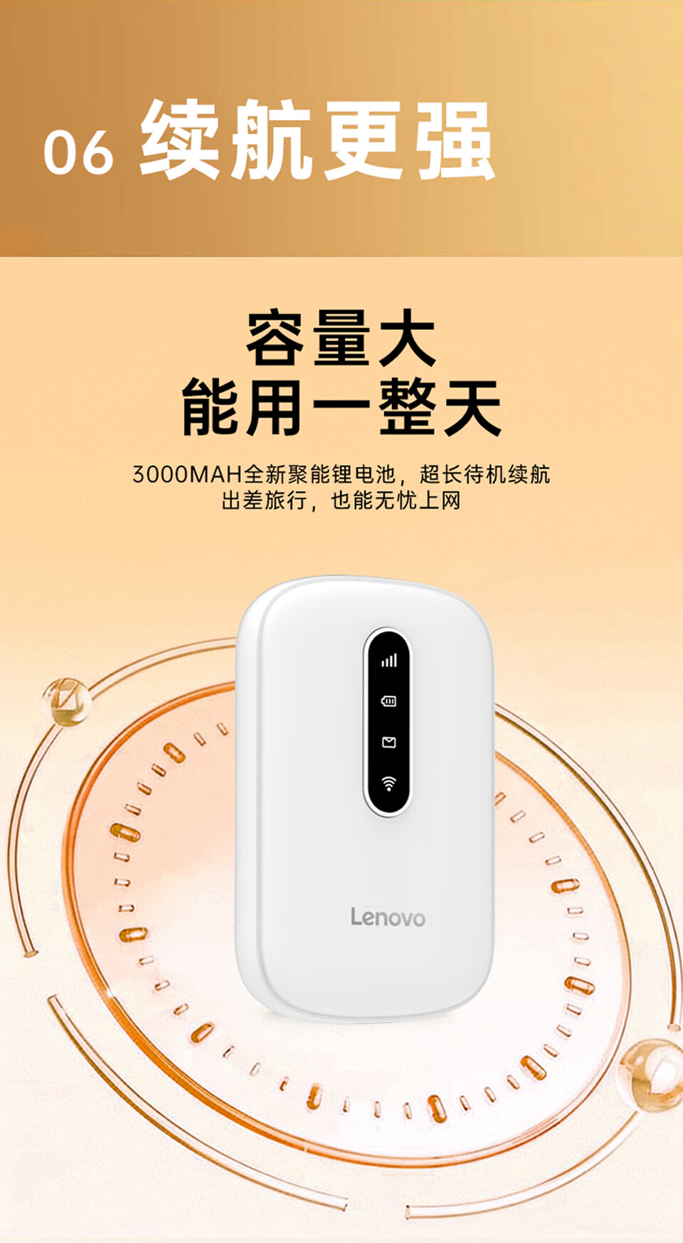 联想(lenovo)移动随身wifi免插卡高速车载4G路由器无线流量2026新款全国通用网卡cpe5G便携热点YM25 活力橙 不限速不虚标月享1500G流量