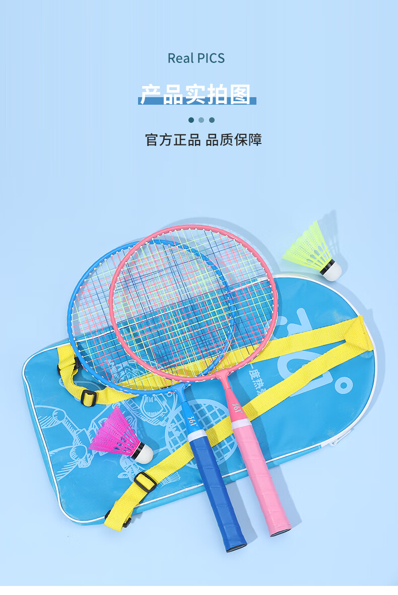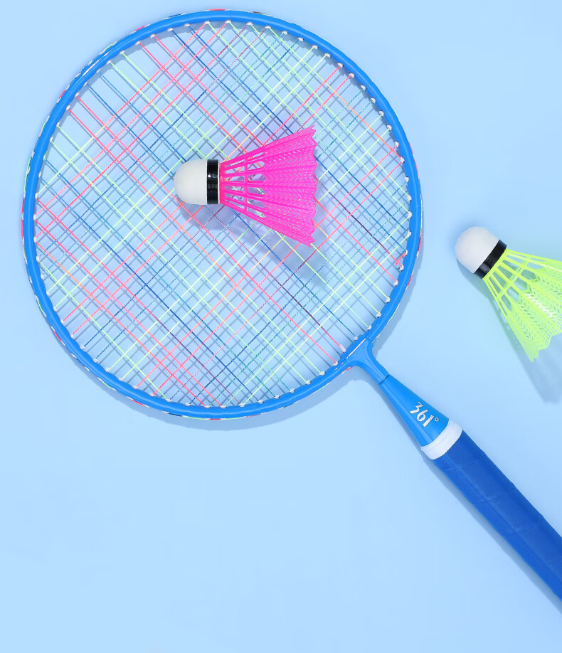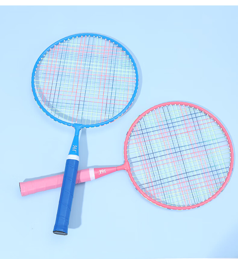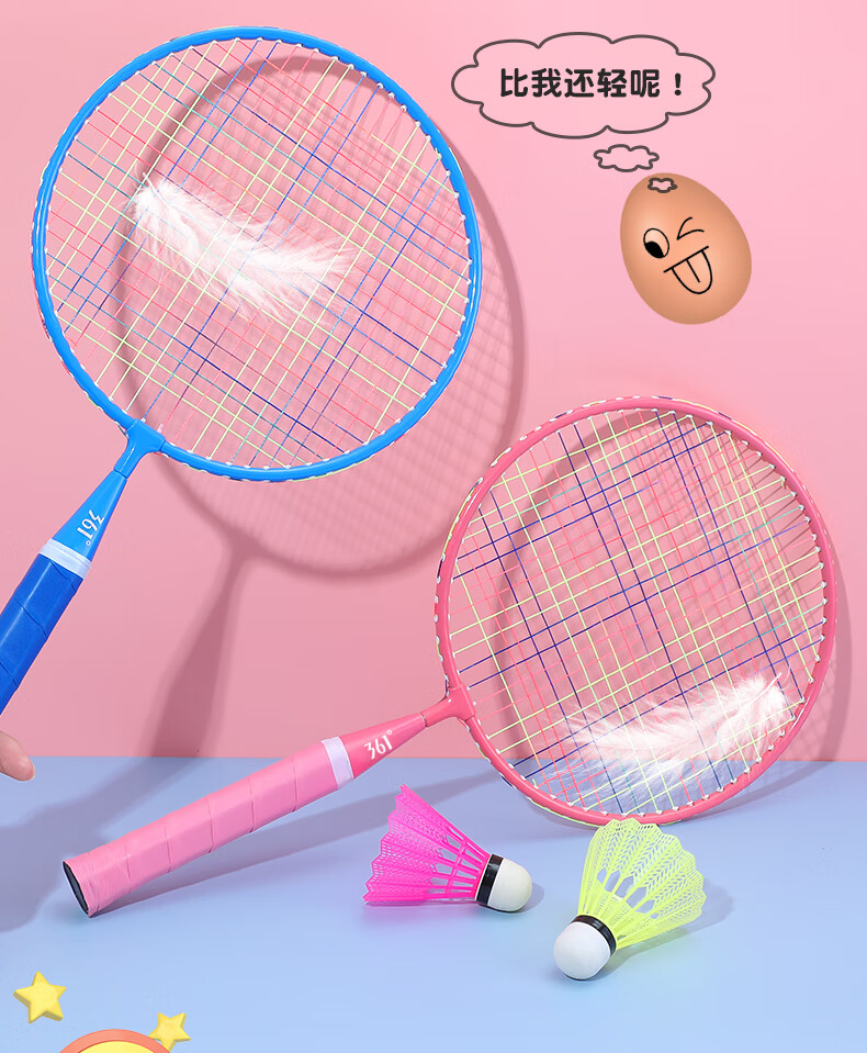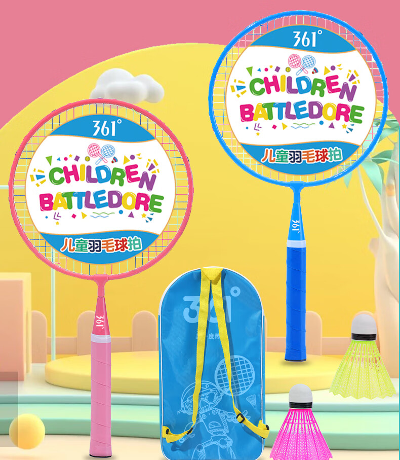 361° 361度儿童羽毛球拍耐打小学生3-12岁玩具室内亲子互动玩具套装 大童【3尼龙球1球包】蓝色双拍