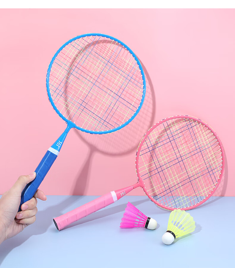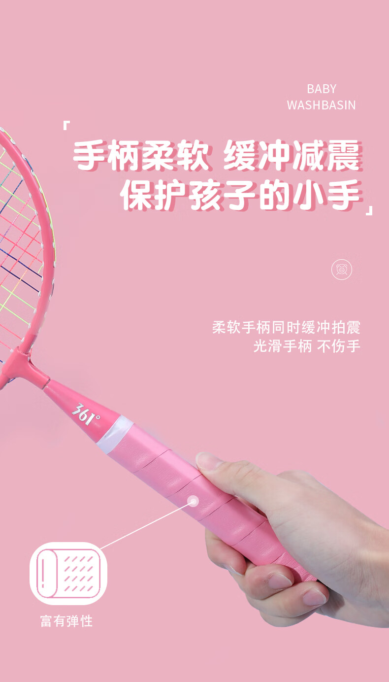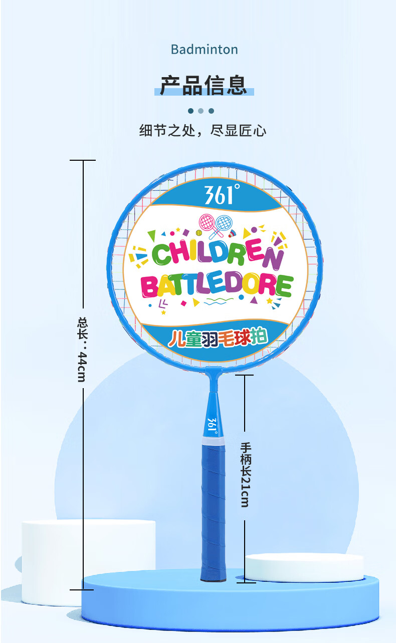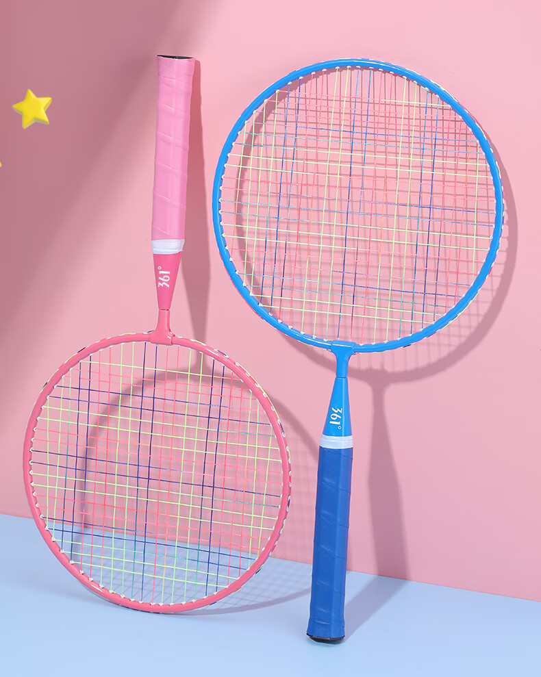 361° 361度儿童羽毛球拍耐打小学生3-12岁玩具室内亲子互动玩具套装 大童【3尼龙球1球包】蓝色双拍