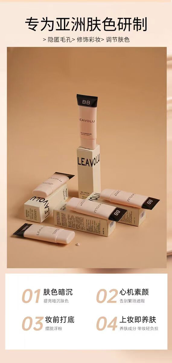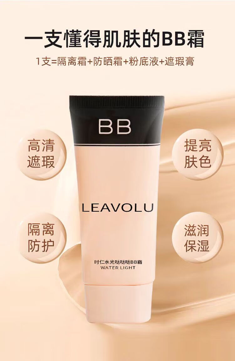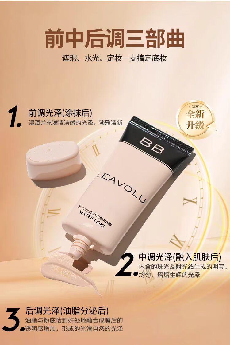 LEAVOLU直营 新款韩国时仁欧尼水光BB霜遮瑕定妆水光滋润素颜霜 新品自然白(黄白皮-送试用装) 常规包装