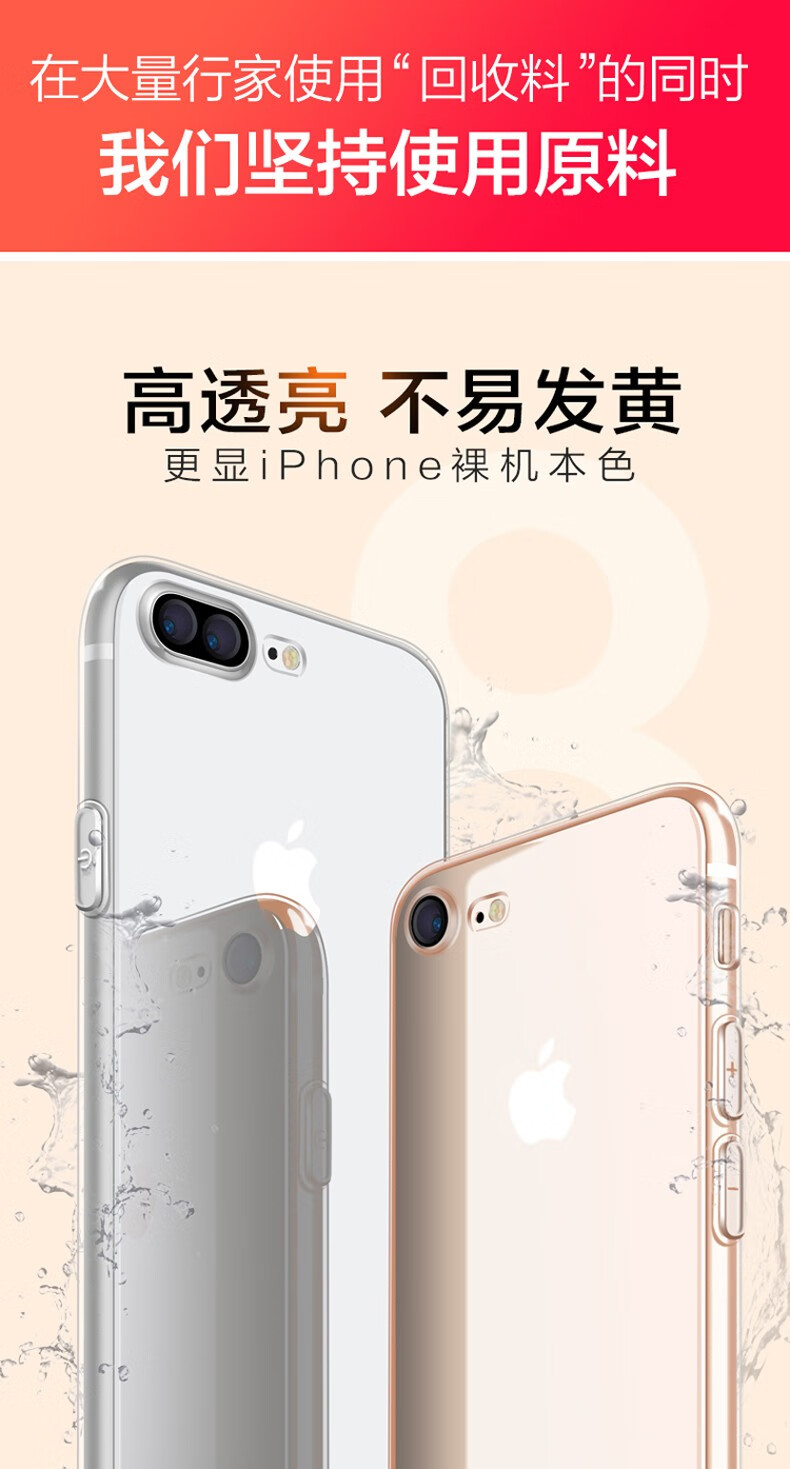 菲尔克【甄选好物】适用 苹果8Plus手机壳 iPhone7/8硅胶套苹果7P全包防摔软壳男女超薄个性款 苹果7P/8Plus【透明款】单壳