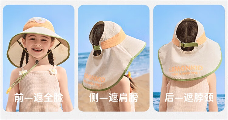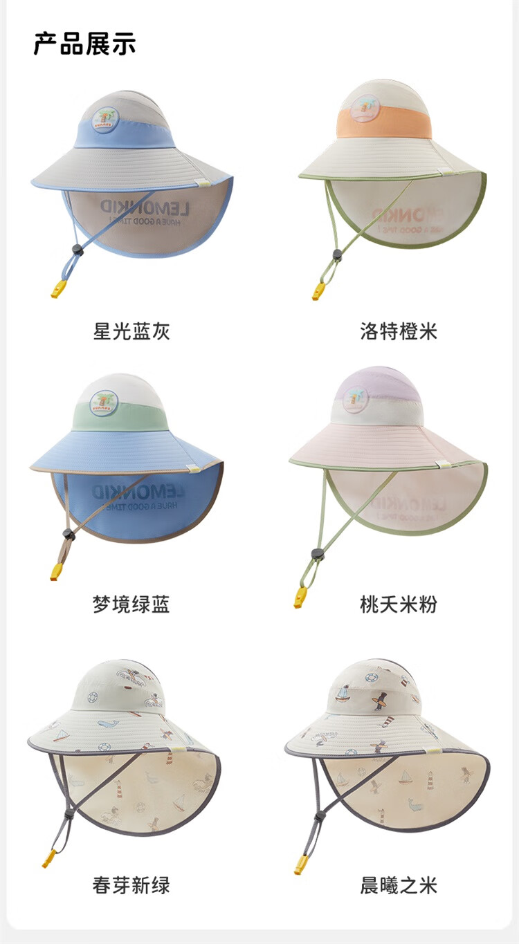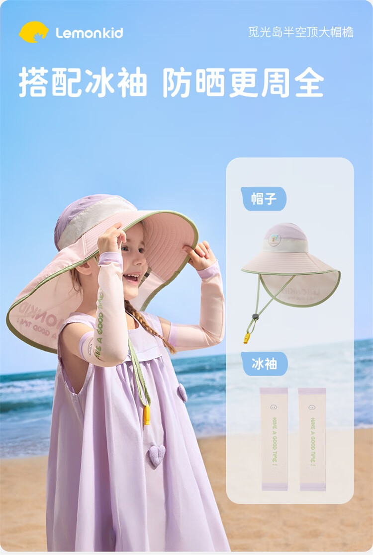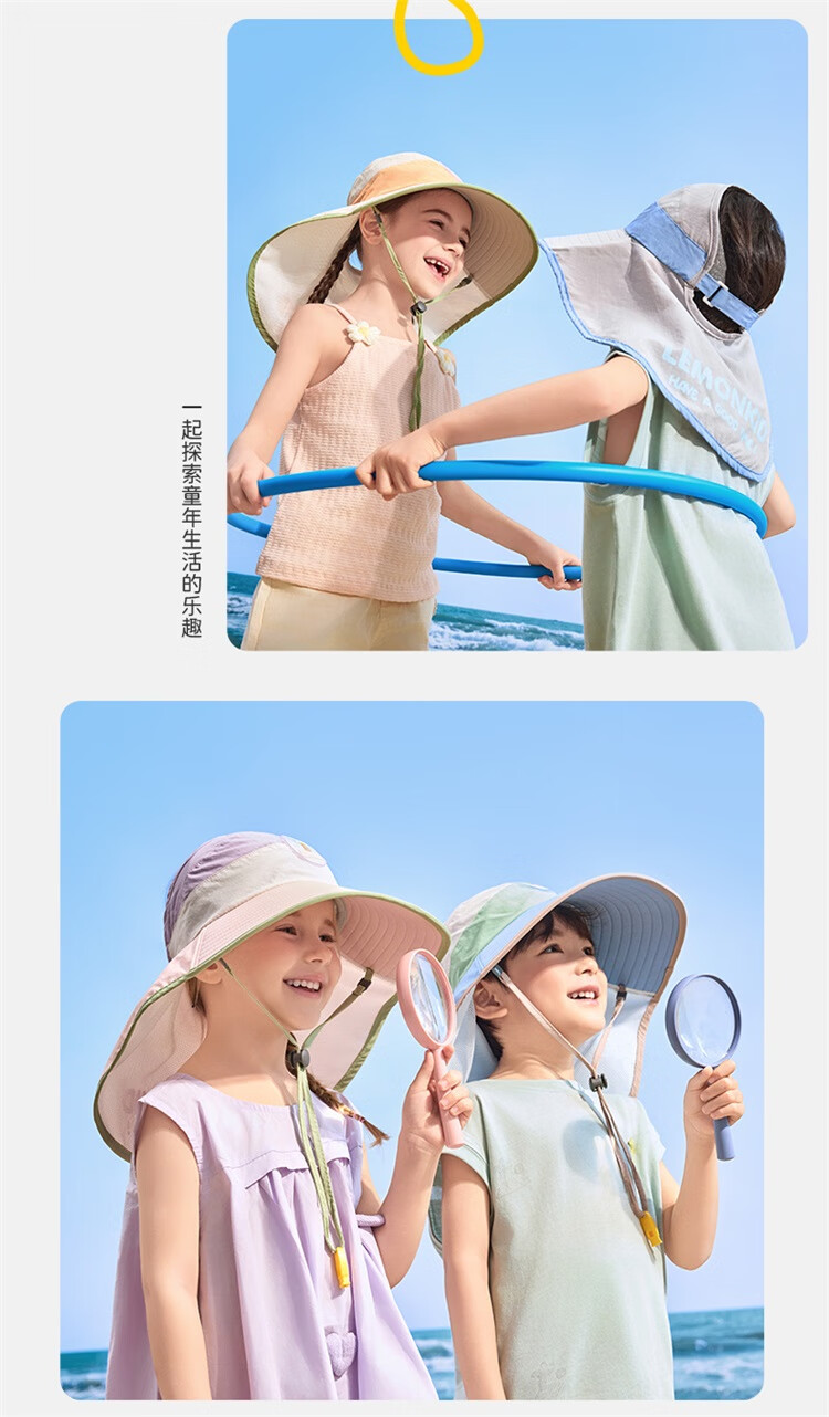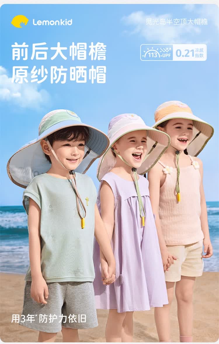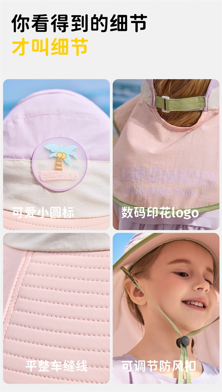 Lemonkid柠檬宝宝原纱防晒帽男童女童2025新款宝宝海边太阳帽子儿童遮阳帽 桃夭米粉【半空顶】 M【建议头围:50-54cm ,7-11岁】