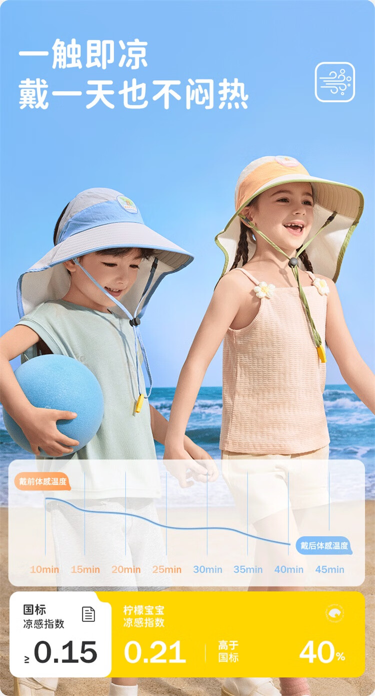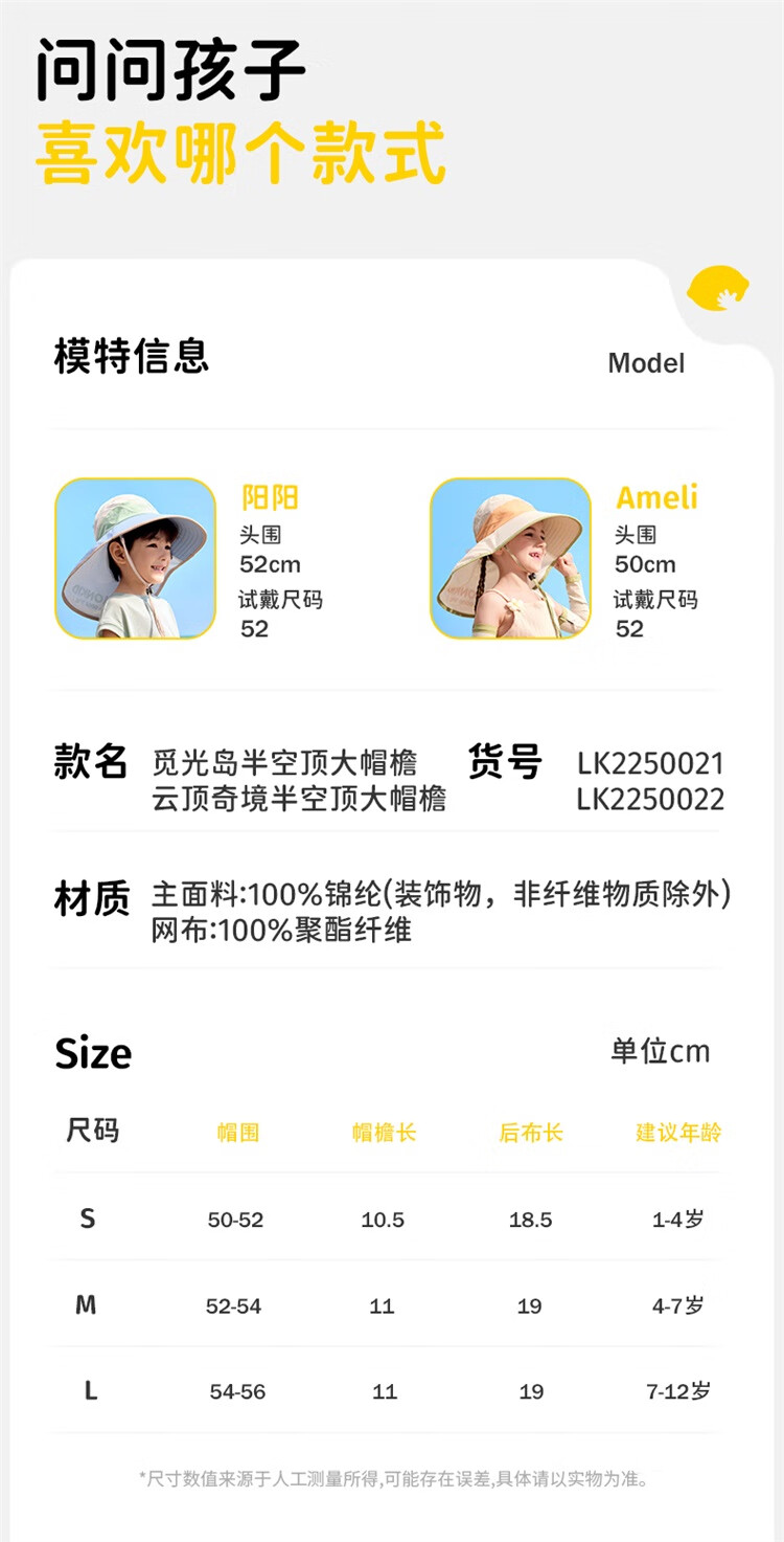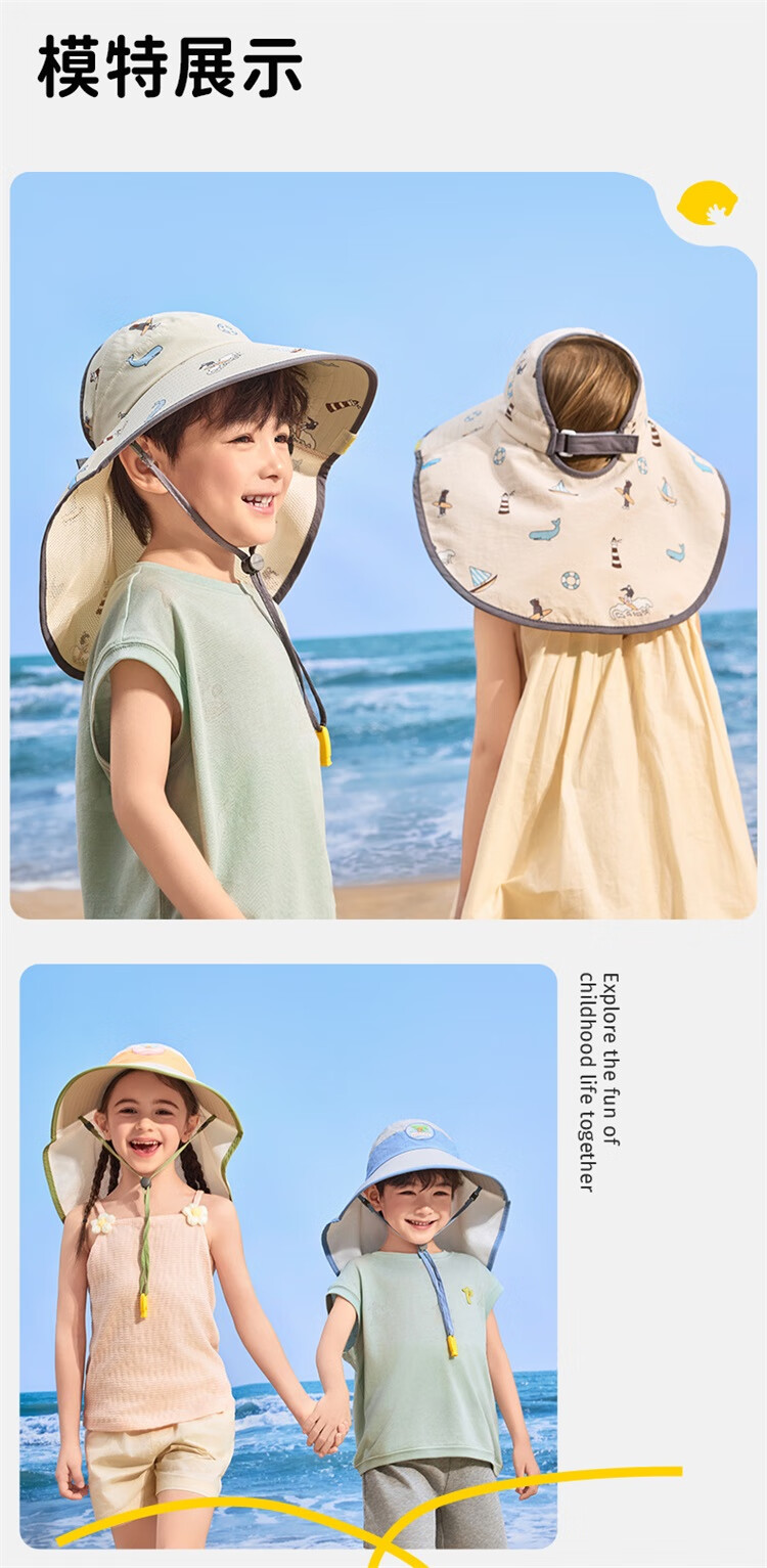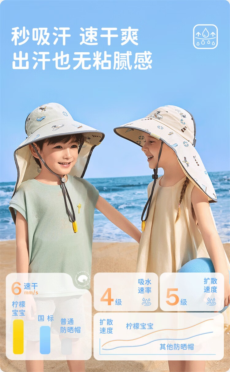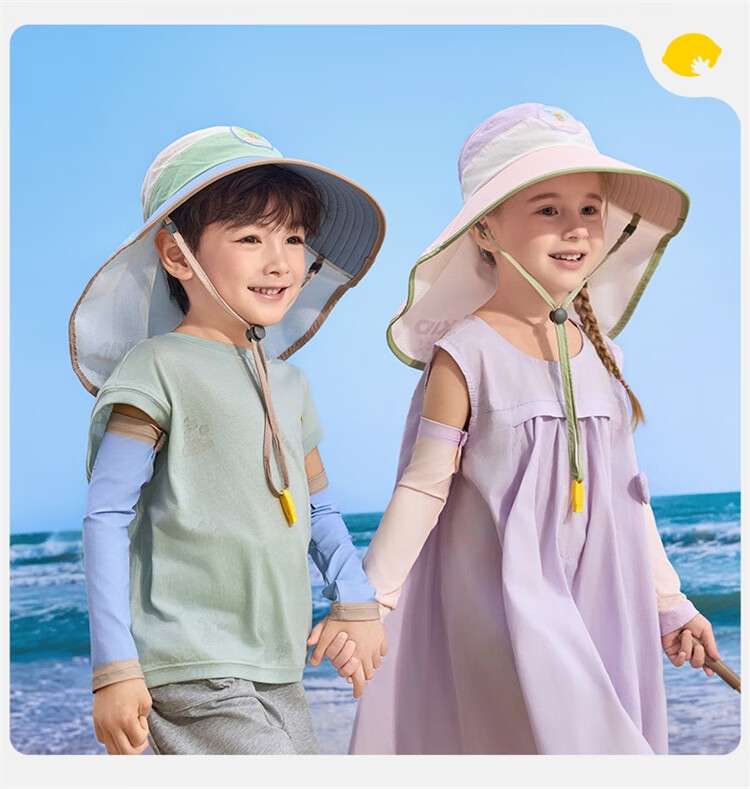 Lemonkid柠檬宝宝原纱防晒帽男童女童2025新款宝宝海边太阳帽子儿童遮阳帽 桃夭米粉【半空顶】 M【建议头围:50-54cm ,7-11岁】