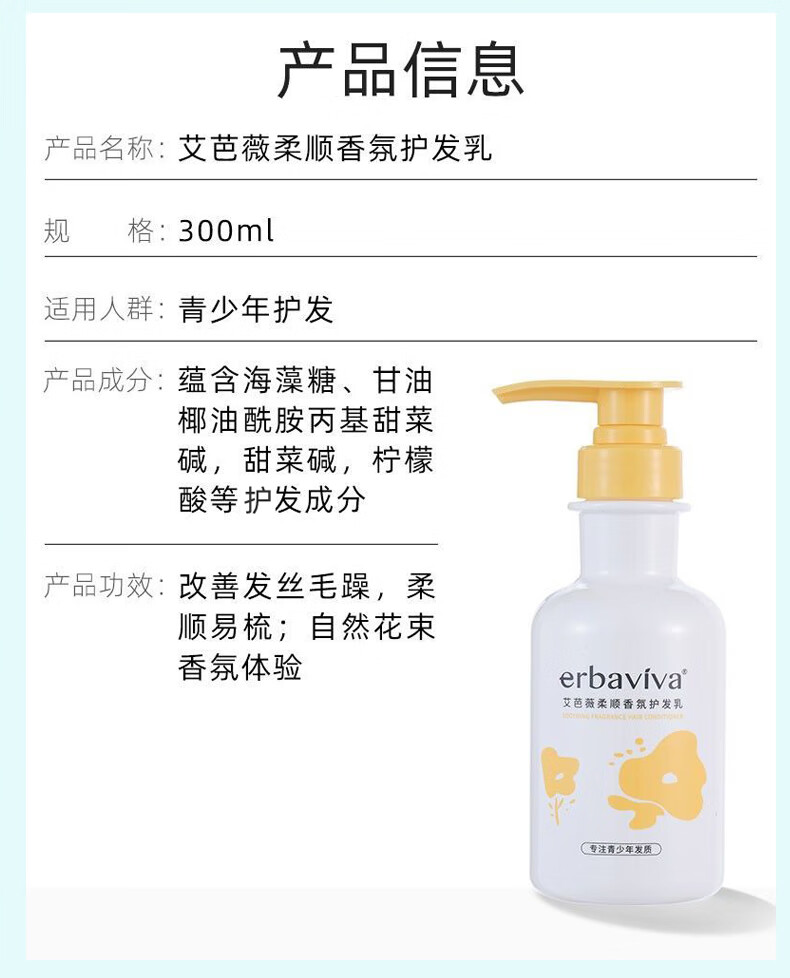 艾芭薇青少年学生护发素柔顺香氛洗头毛躁顺滑易梳理男女孩光泽护发乳膜 柔顺护发乳