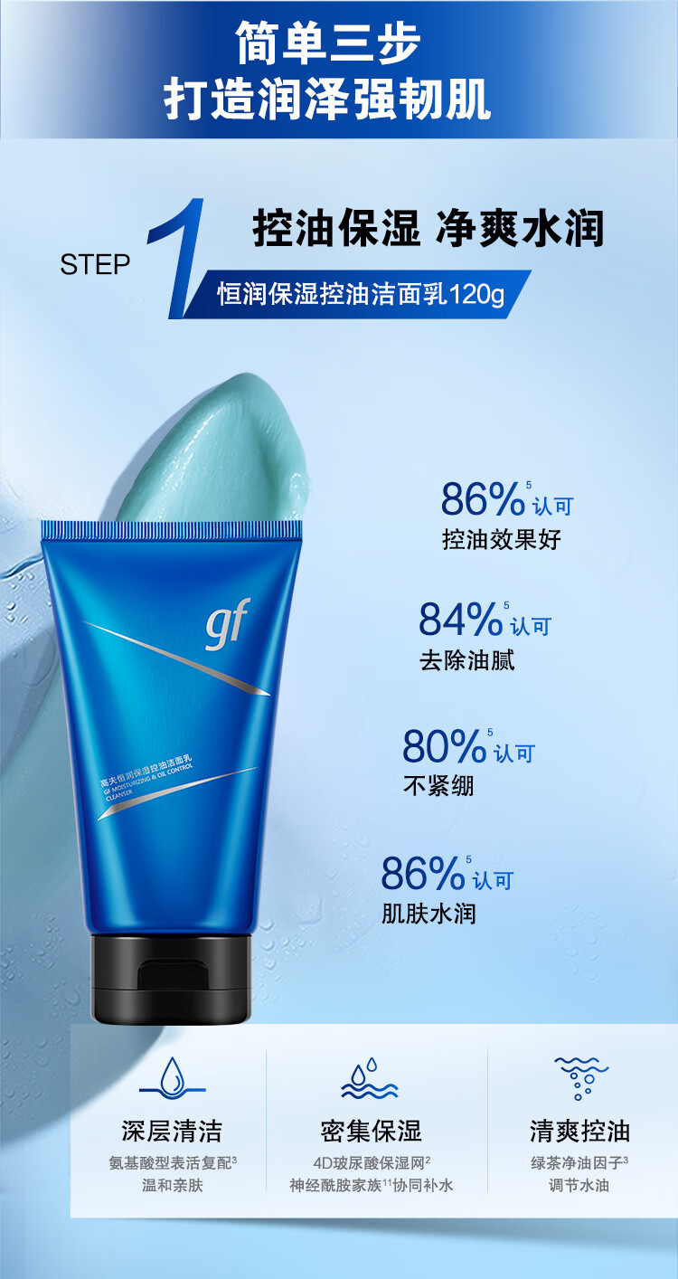 高夫男士护肤恒润保湿礼盒(洁面+水+熬夜乳)新年礼物送男友