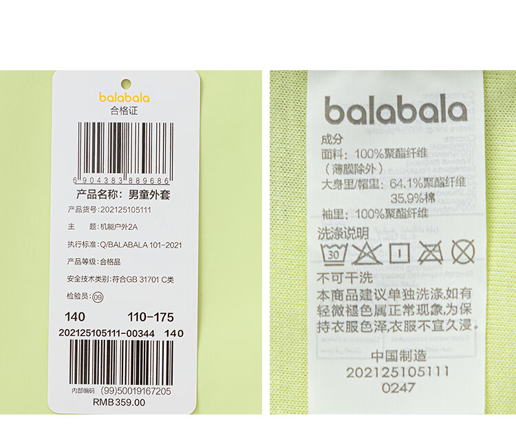 巴拉巴拉童装男童外套儿童上衣2025新款春软壳衣【商场同款】202125105111