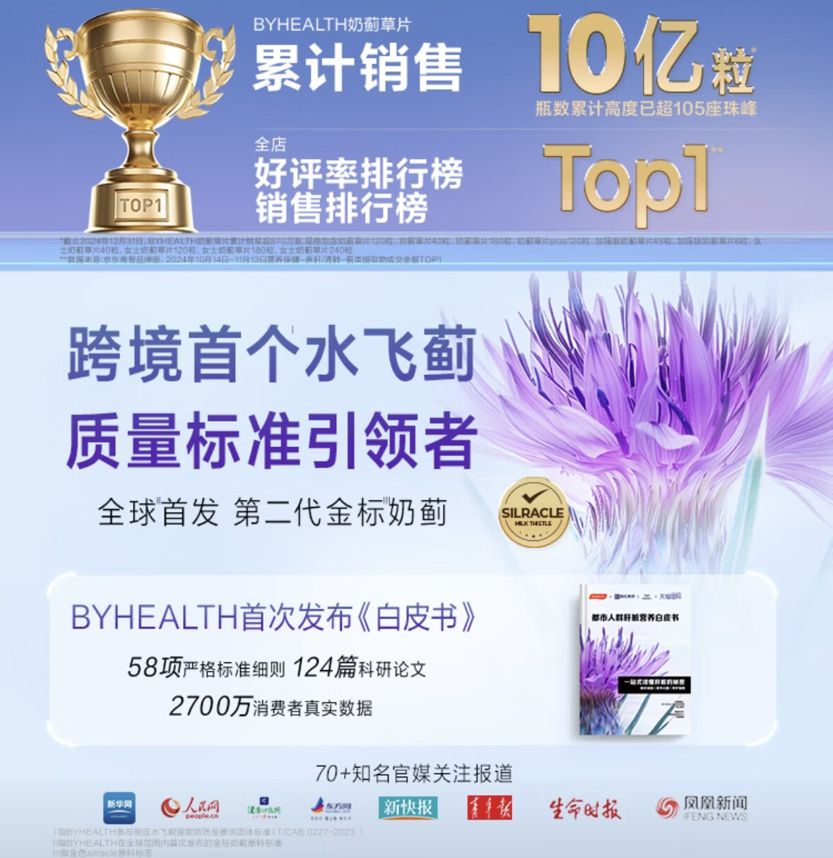 BYHEALTH第二代夜肝片升级护肝片奶蓟草水飞蓟宾11100mg肌醇胆碱 第二代专利进阶升级120粒【8周改善指标】