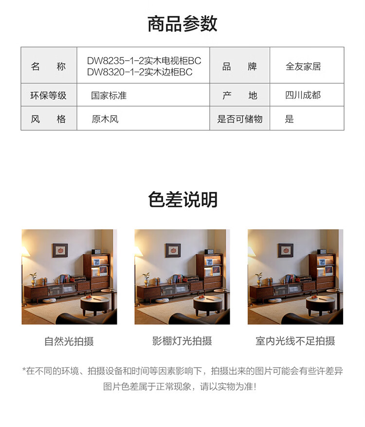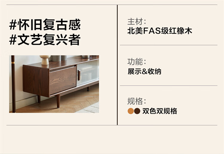 全友家居原木风茶几电视柜客厅轻奢高级感2026新款组合柜沙发边柜家具 【胡桃色 | 红橡木】1.8 米电视柜-预约