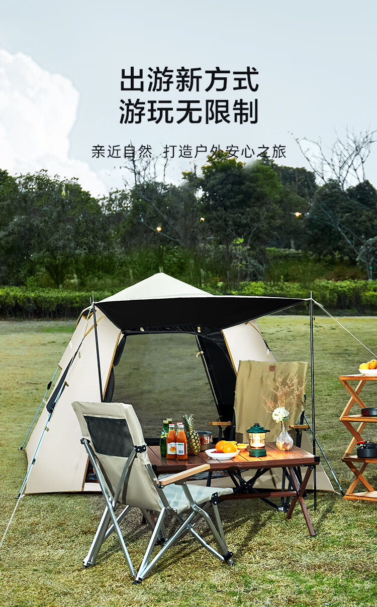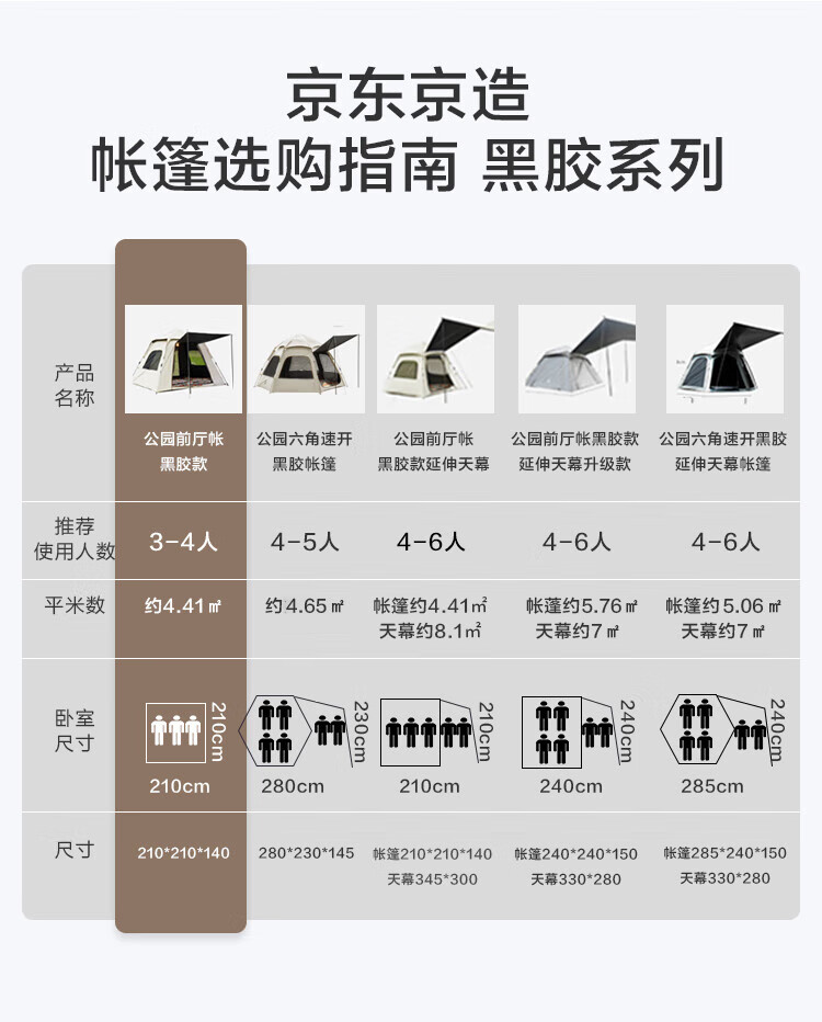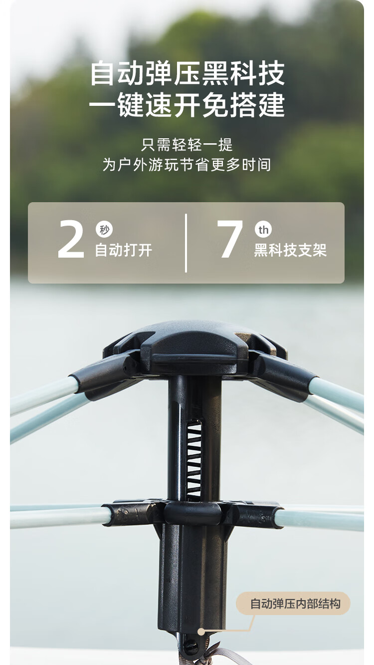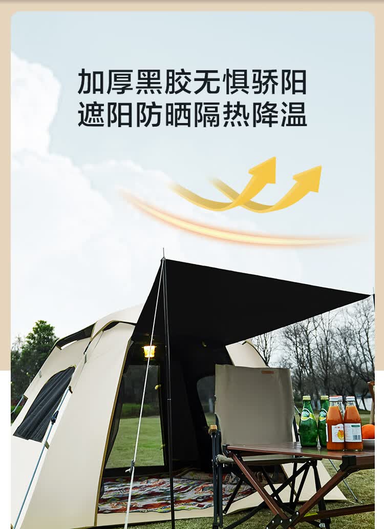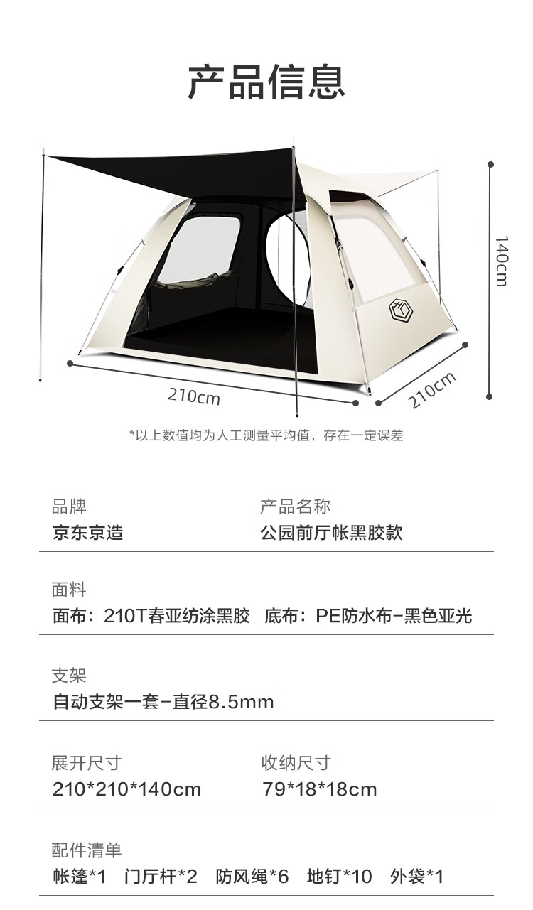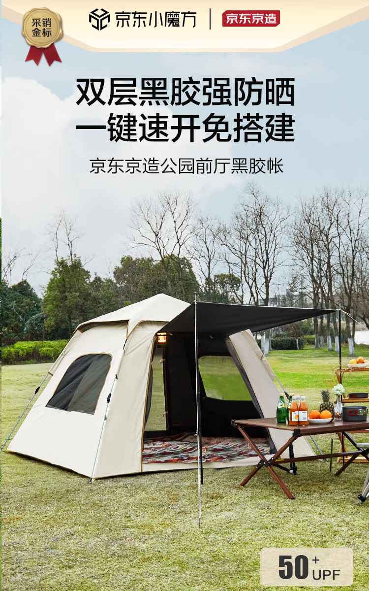 京东京造 公园前厅帐篷4.4㎡黑胶防晒户外露营帐篷全自动弹压3-4人