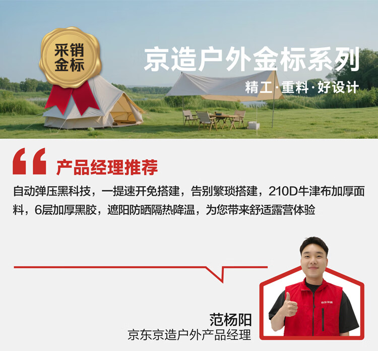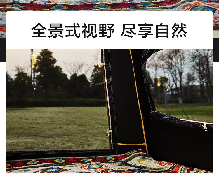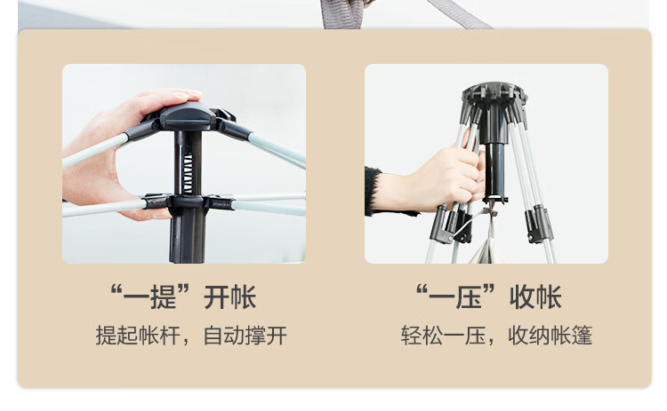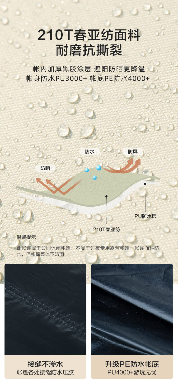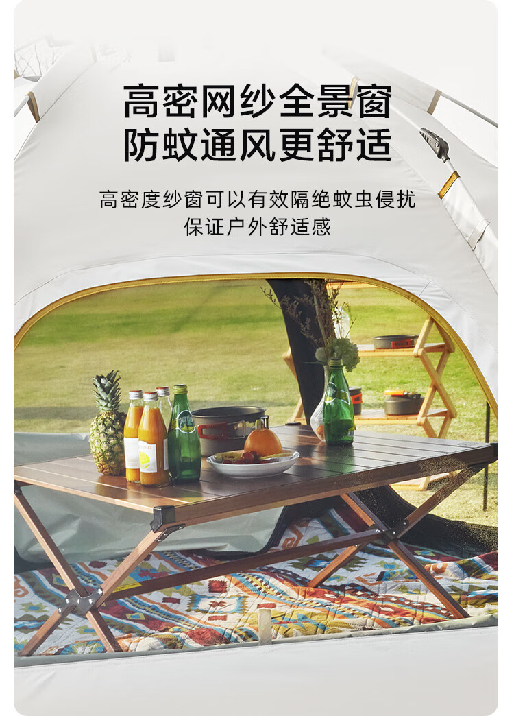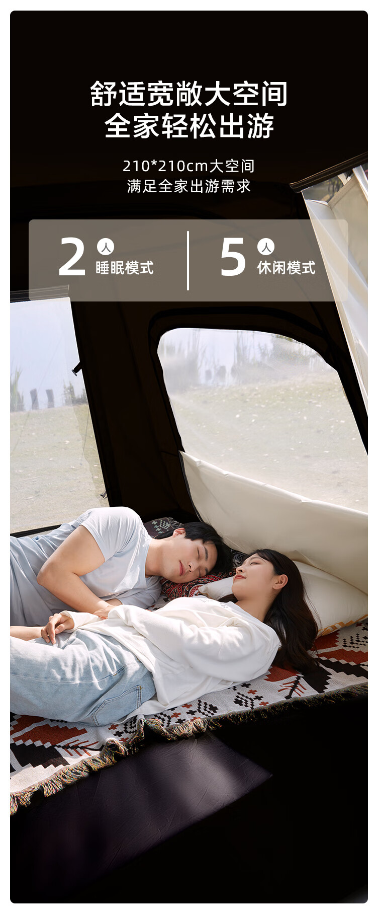 京东京造 公园前厅帐篷4.4㎡黑胶防晒户外露营帐篷全自动弹压3-4人