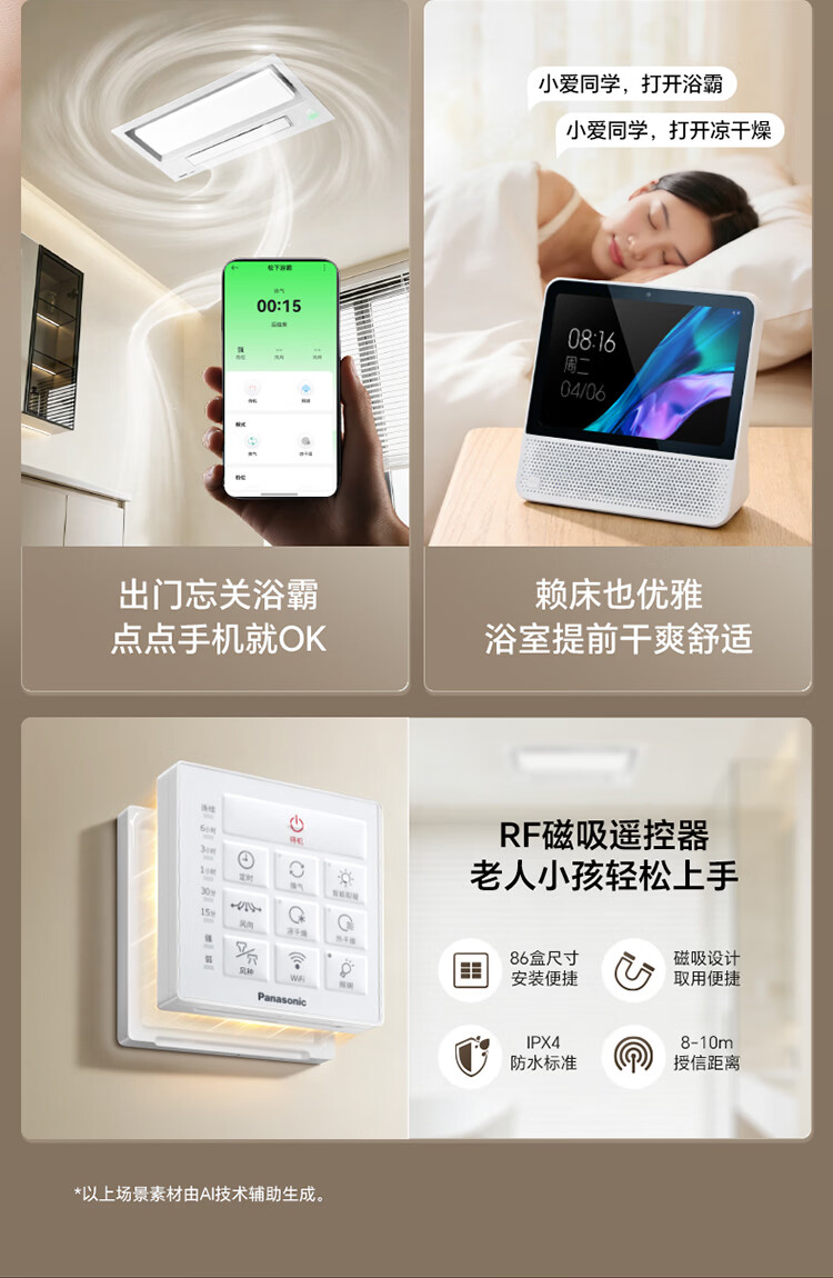 松下(Panasonic)智能浴霸 暖风照明排气一体 支持米家 风暖浴霸恒温 浴室R7 Air