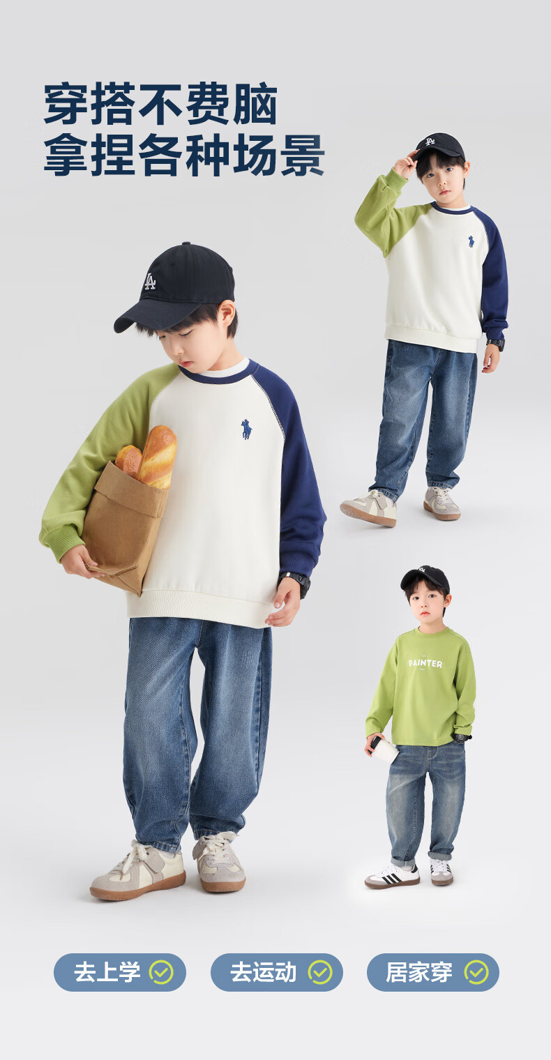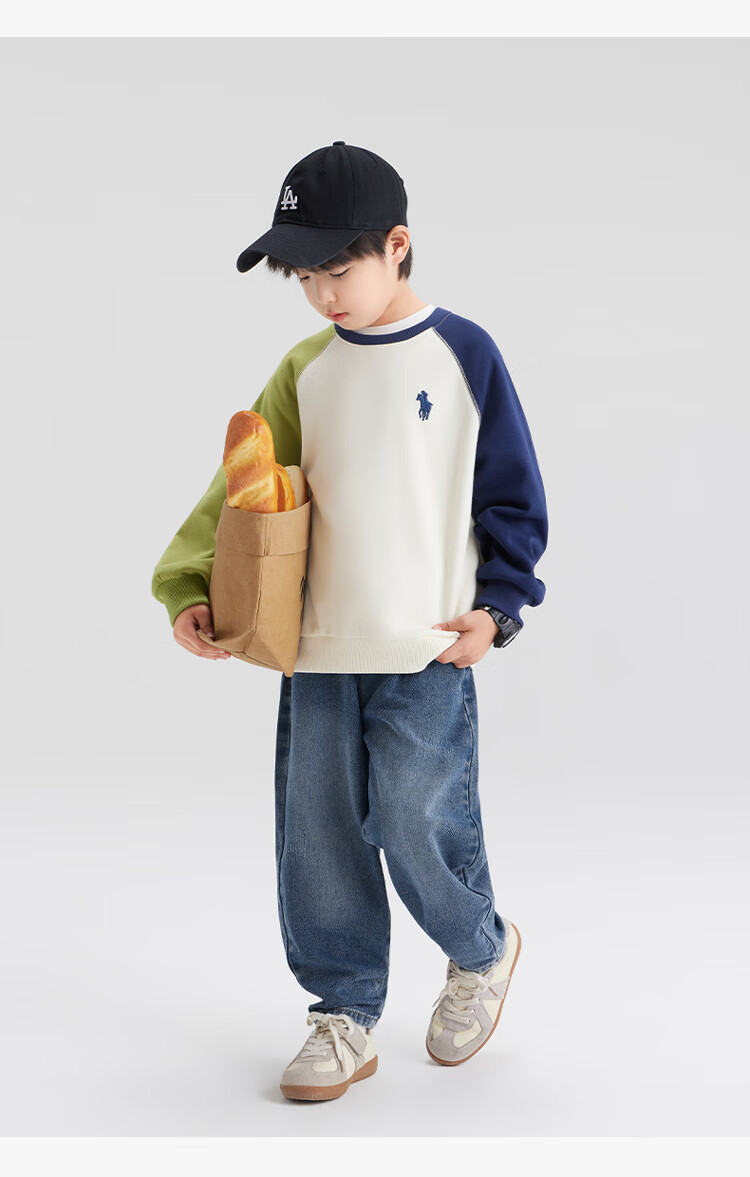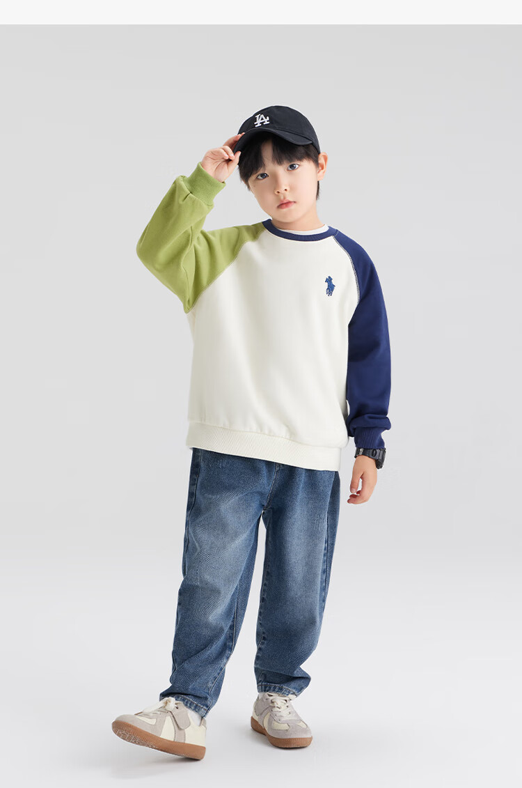 迷你巴拉巴拉男女童长袖套装潮流拼色上衣长裤两件套春季新款 海盐千层 100 【91-100cm 12-16kg】