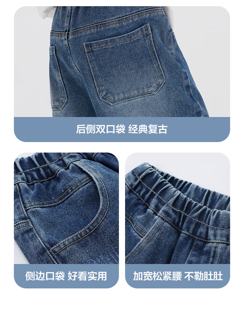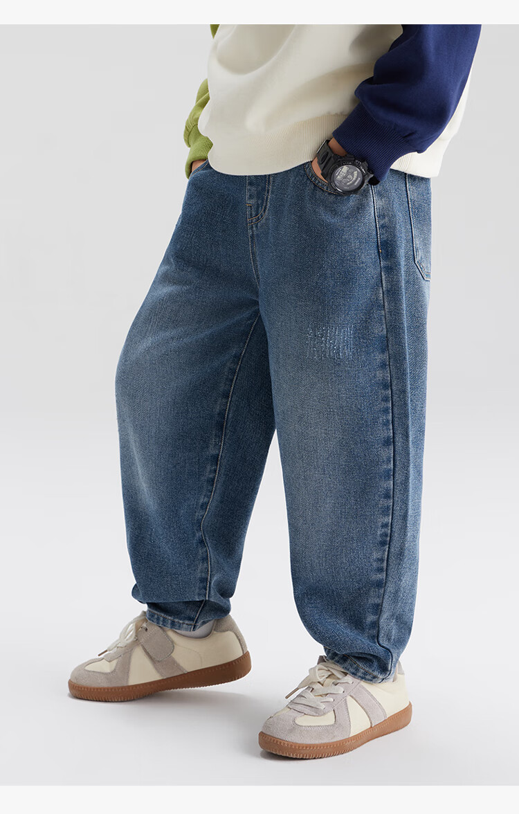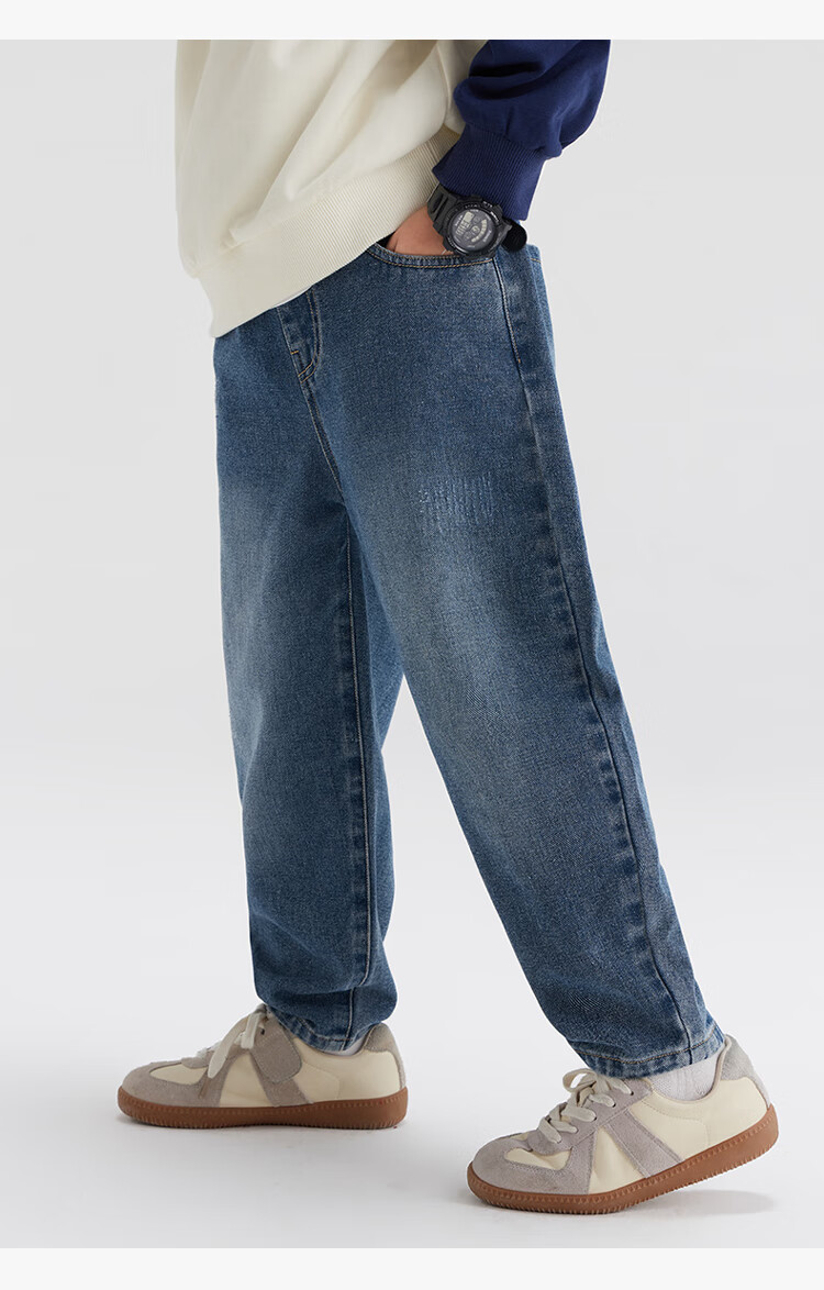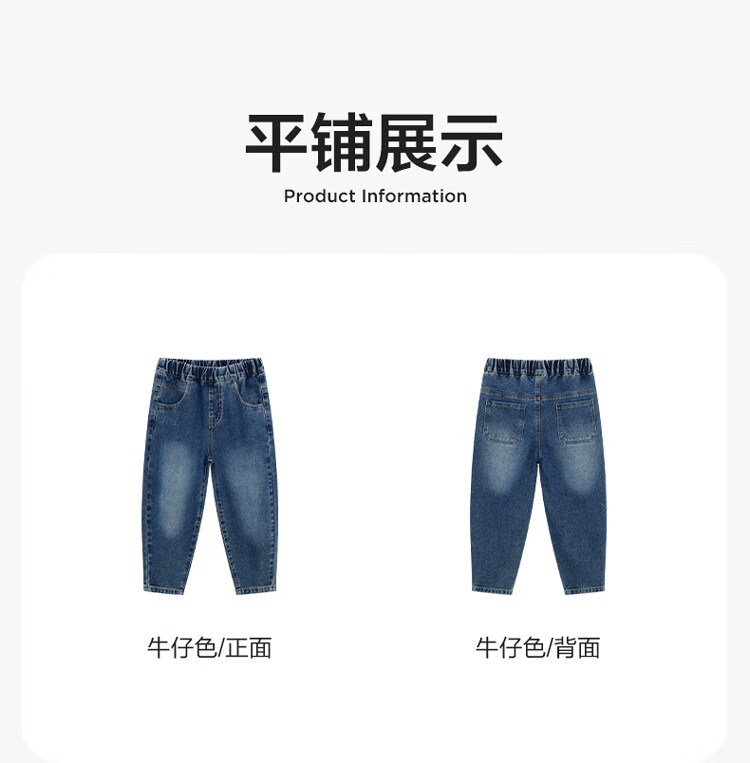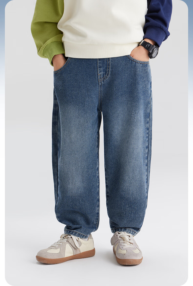 左西男童牛仔裤儿童裤子春装2026新款男孩春装中大童长裤 牛仔色 110