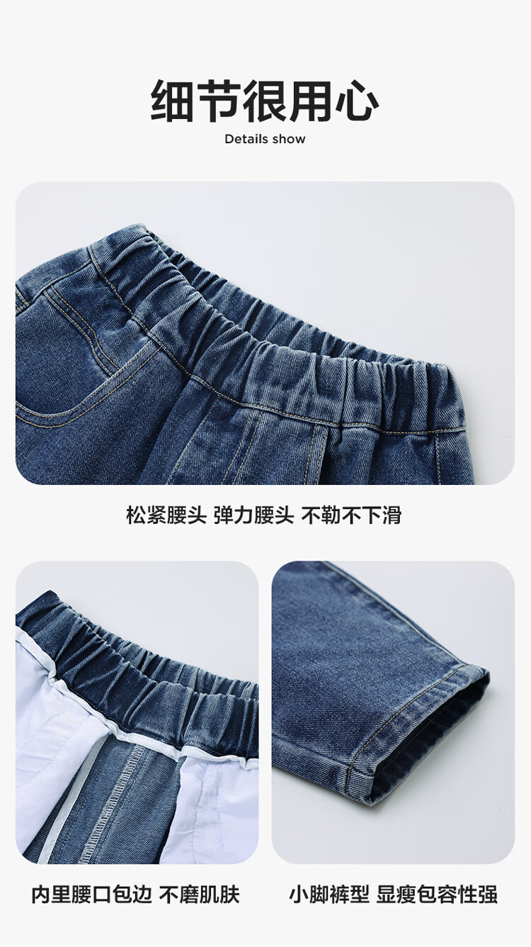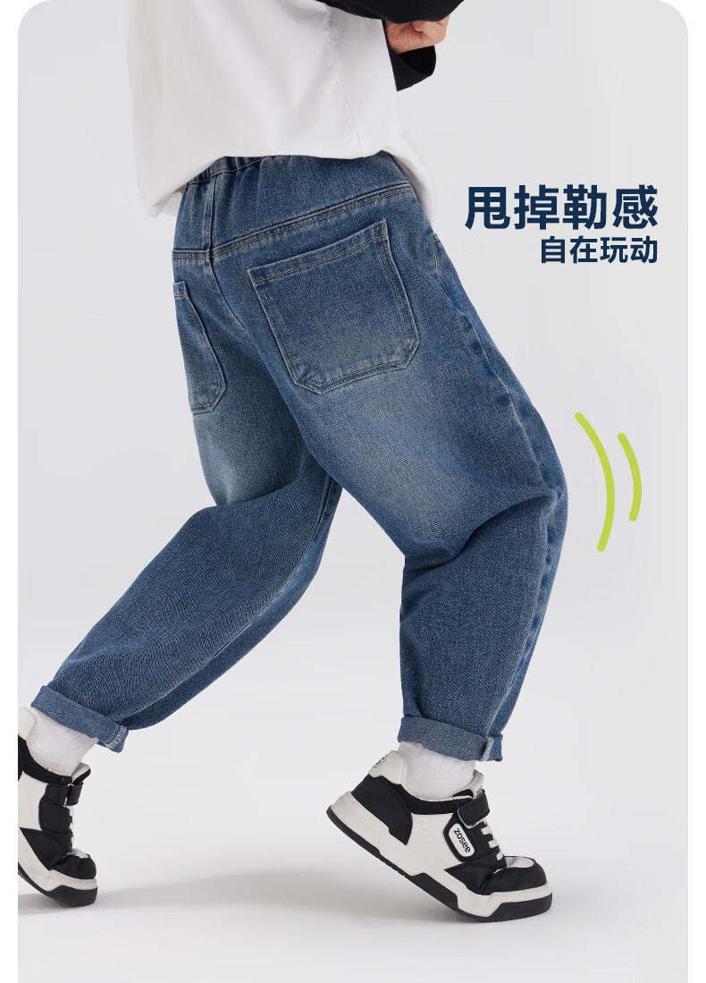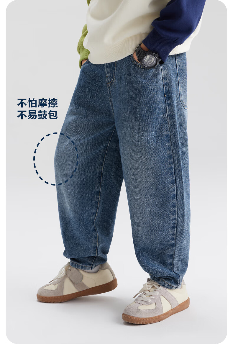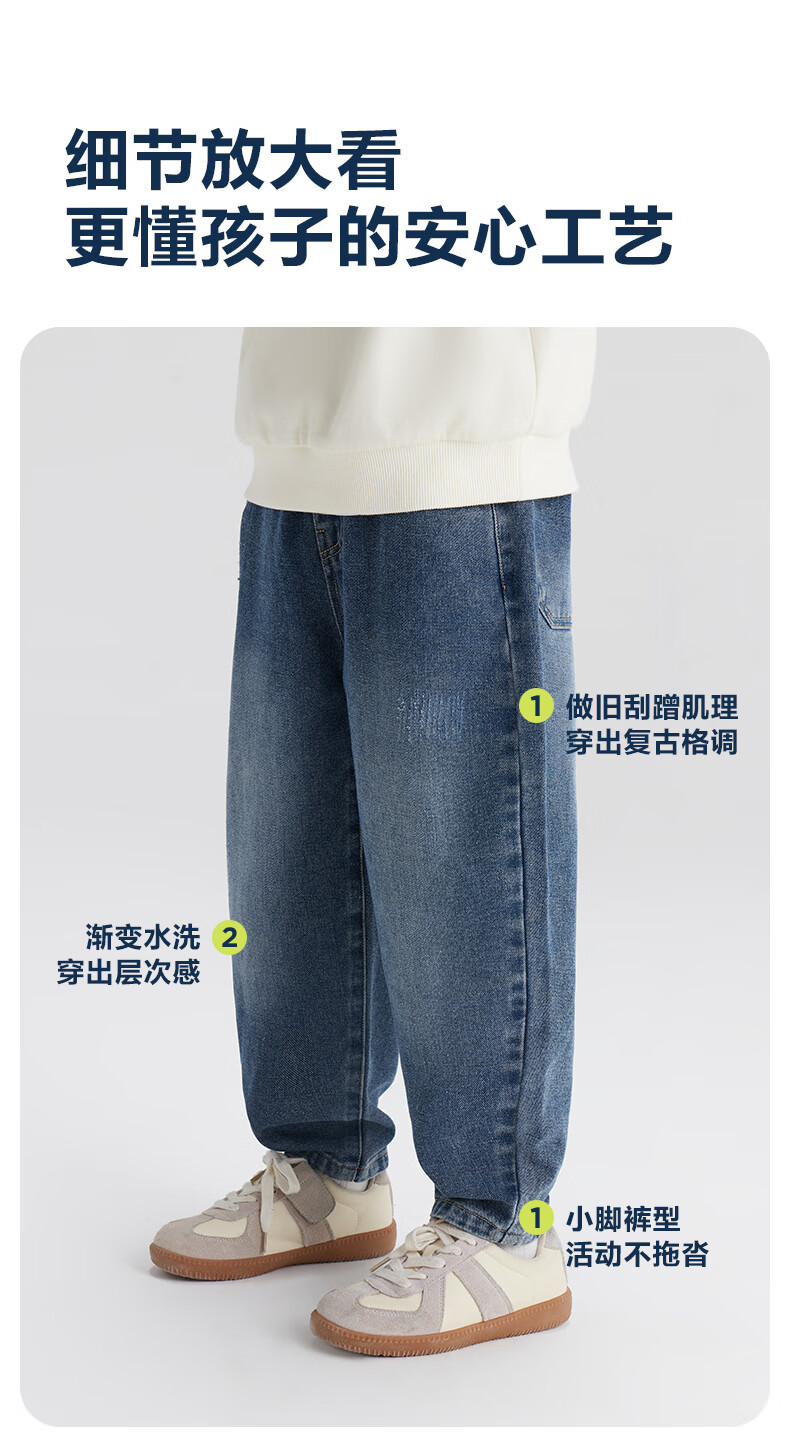 左西男童牛仔裤儿童裤子春装2026新款男孩春装中大童长裤 牛仔色 110