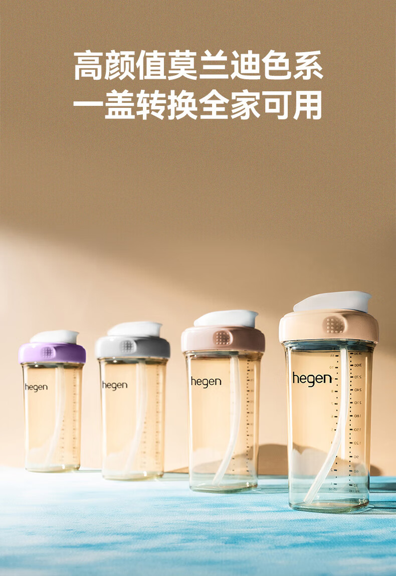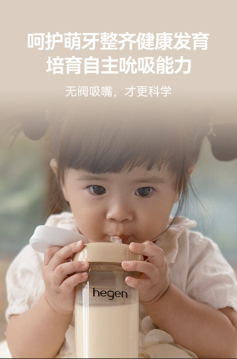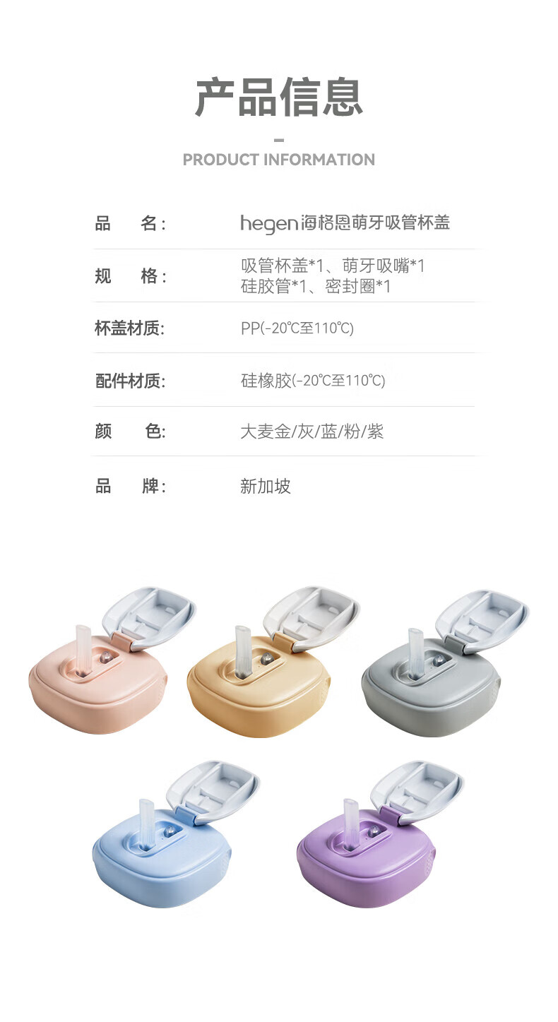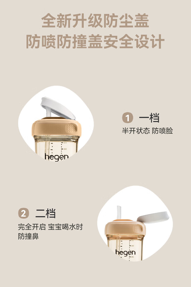 HEGEN海格恩宽口径多功能水杯盖宝宝婴儿通用水杯配件喝水杯盖大麦金色