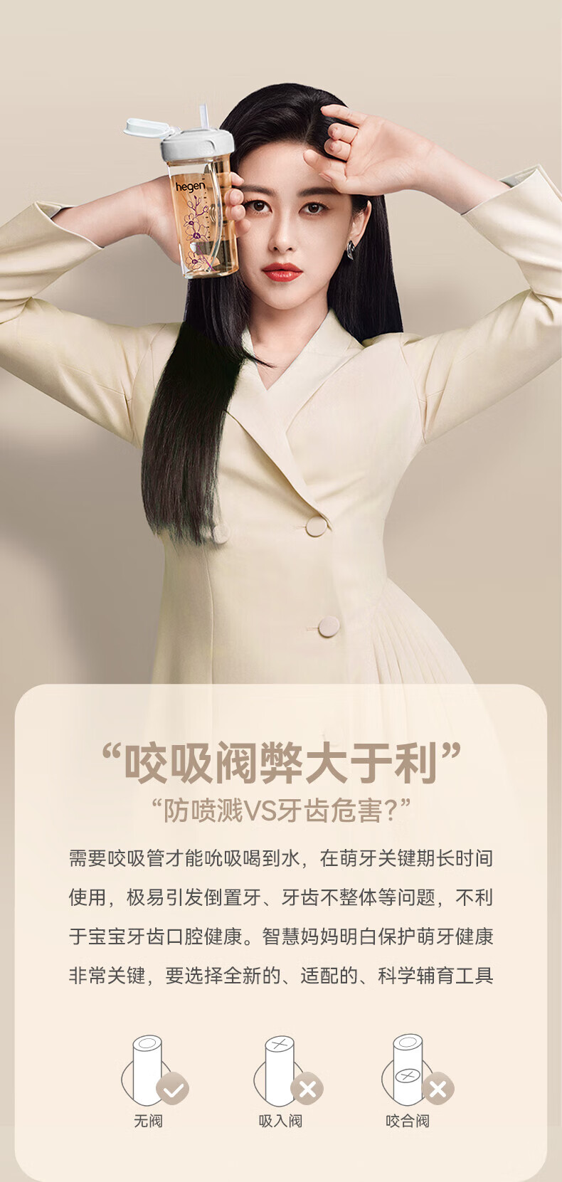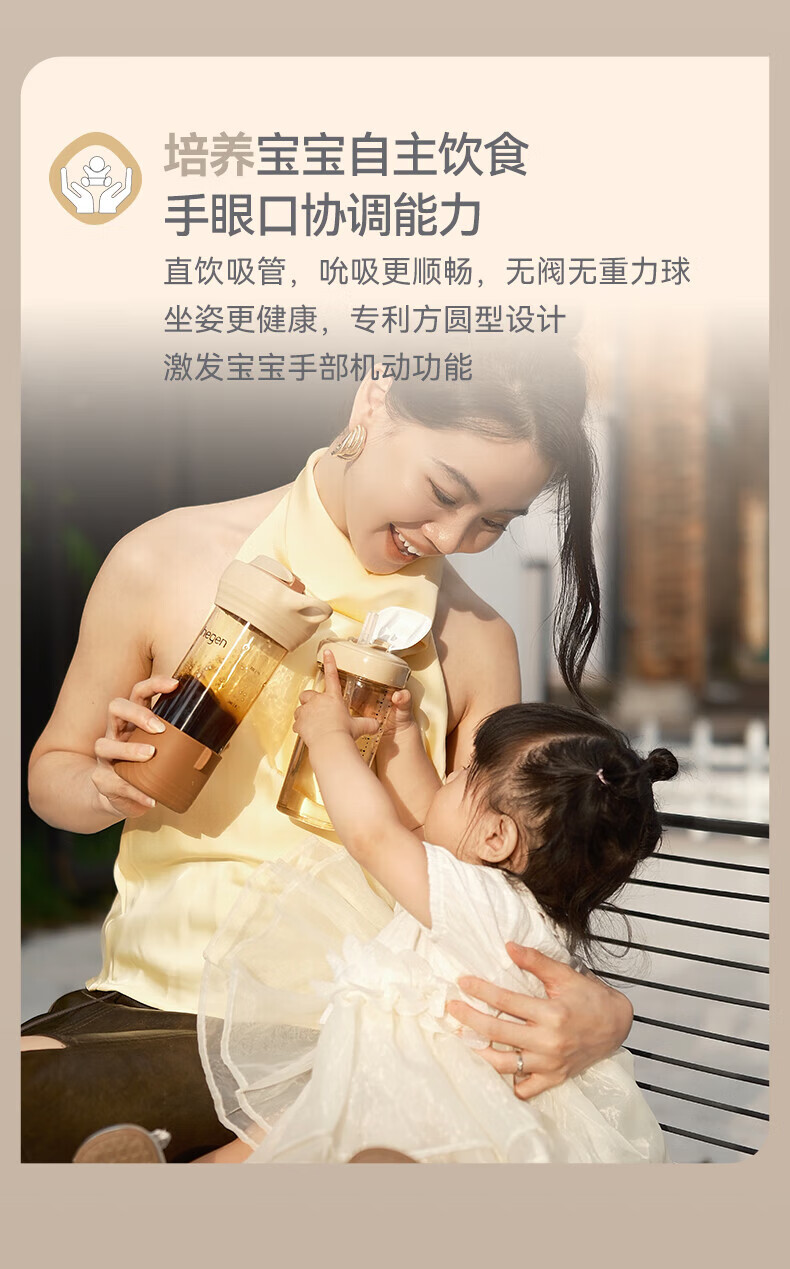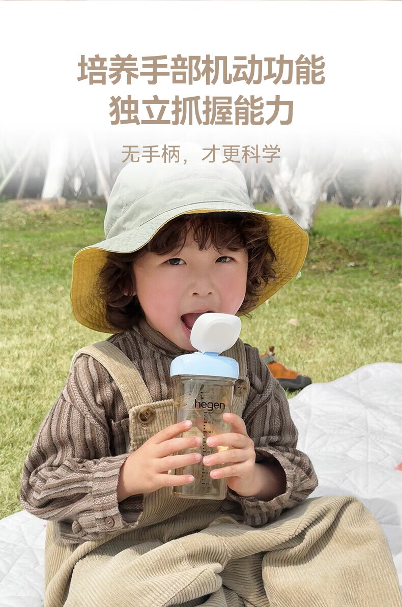 HEGEN海格恩宽口径多功能水杯盖宝宝婴儿通用水杯配件喝水杯盖大麦金色
