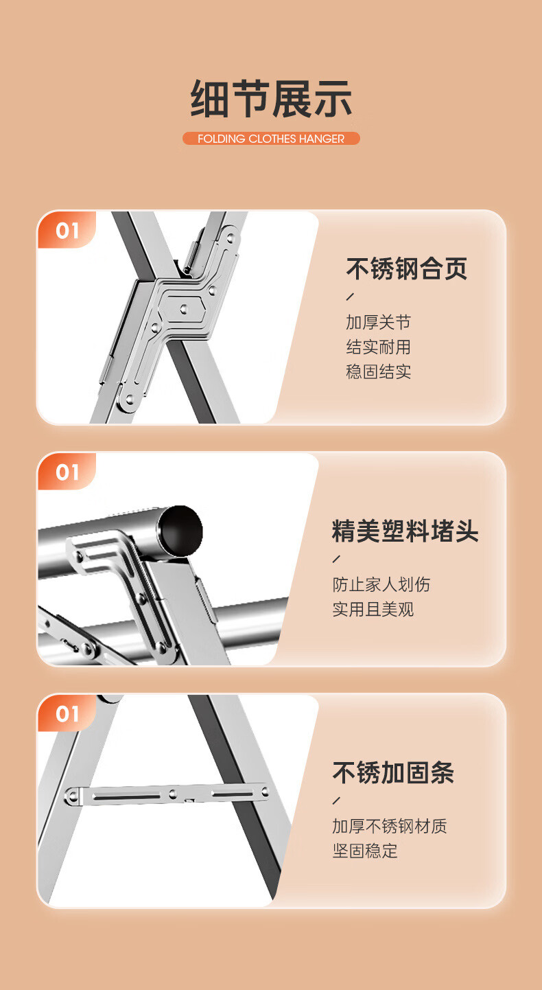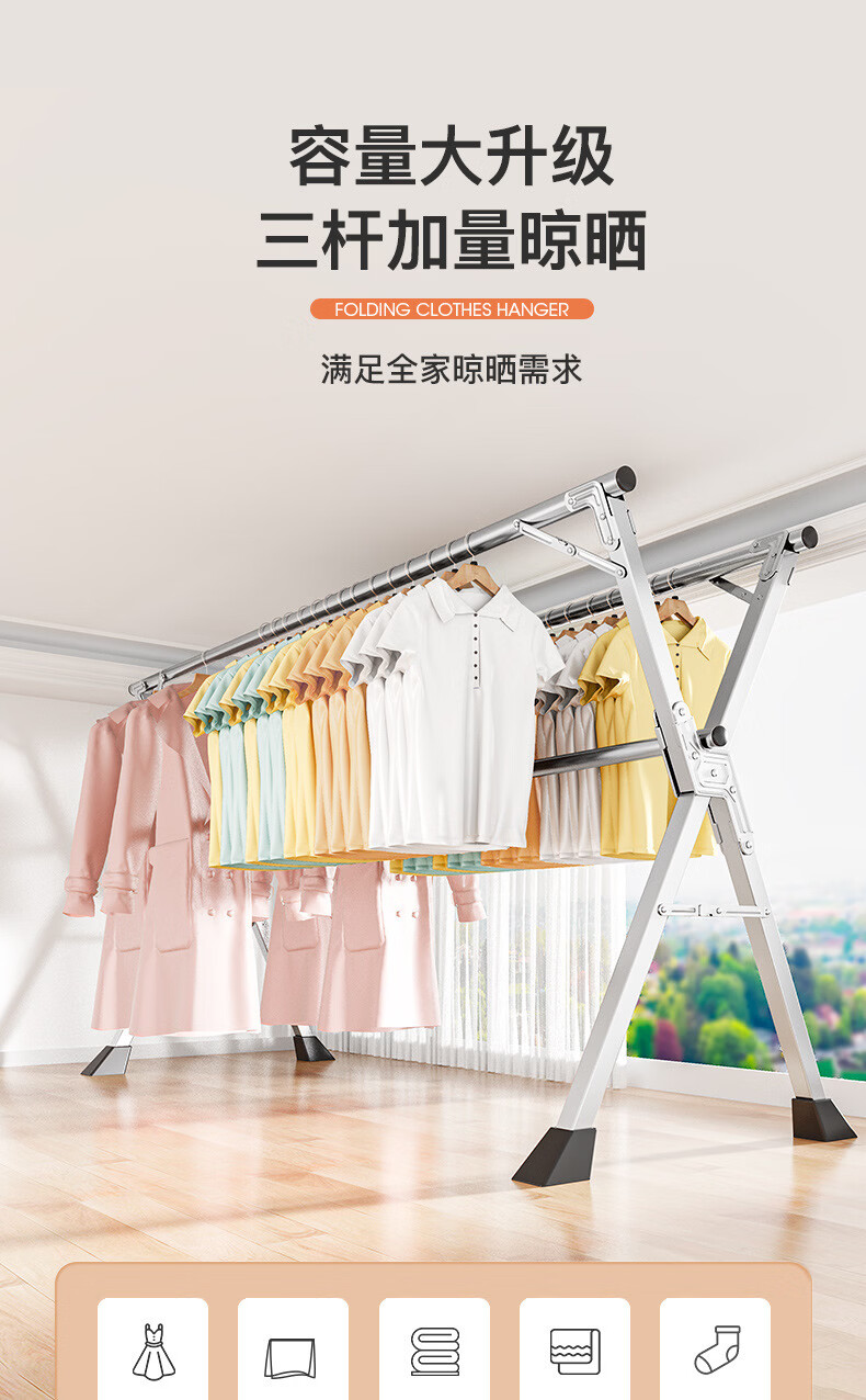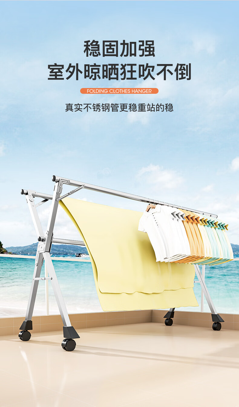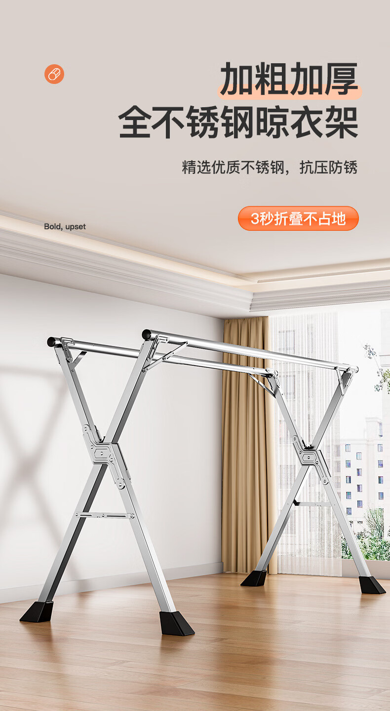 落地晾衣架家用宿舍伸缩折叠加厚室内外阳台卧室不锈钢 加粗加厚双杆1.6米可伸缩+20风钩
