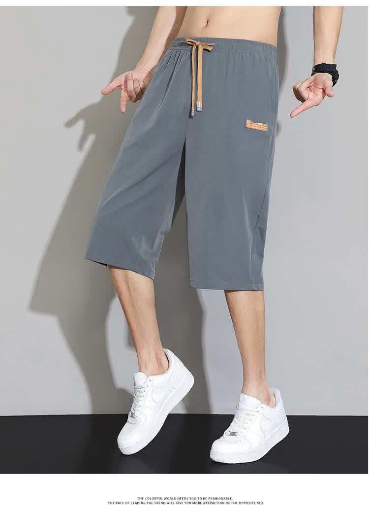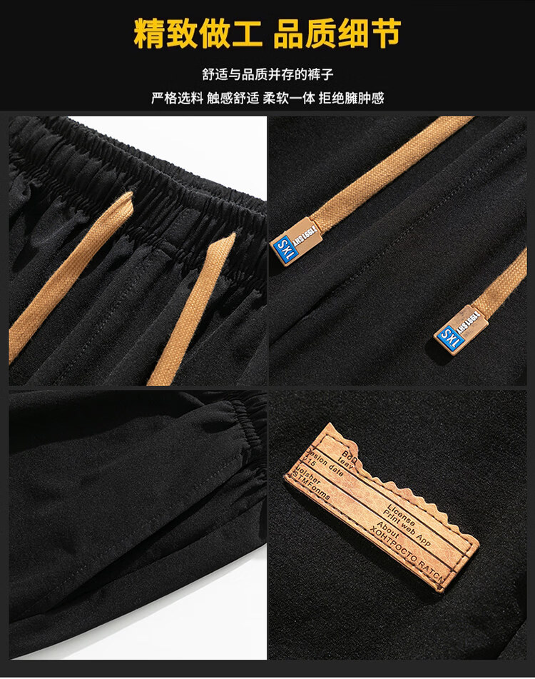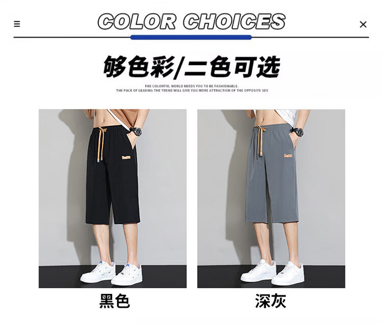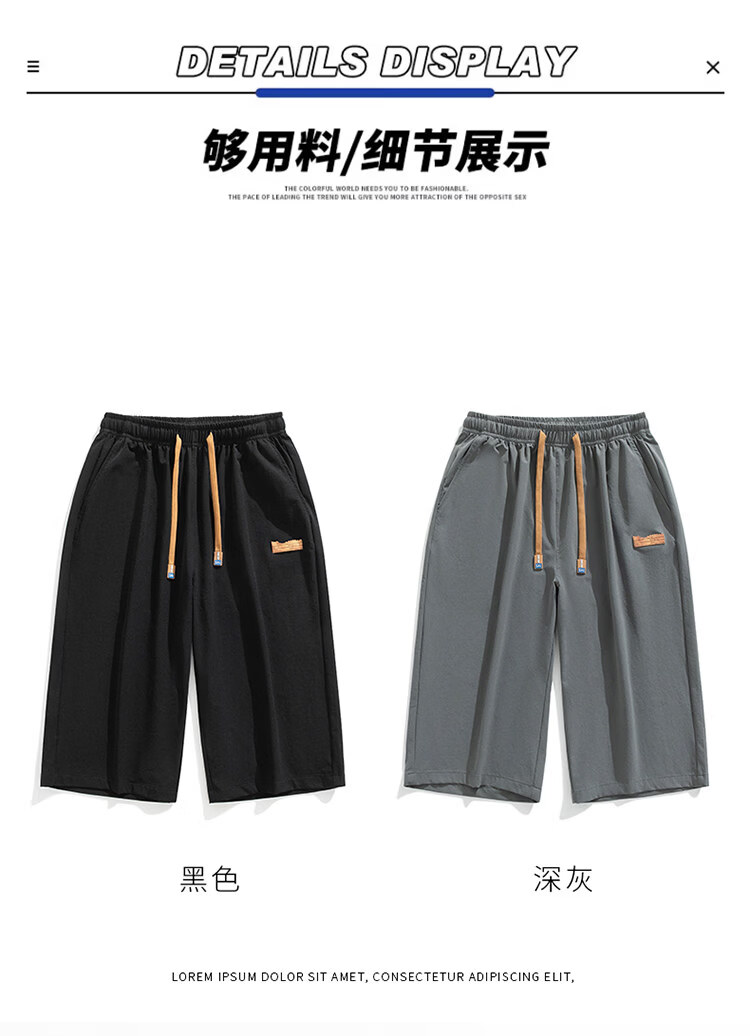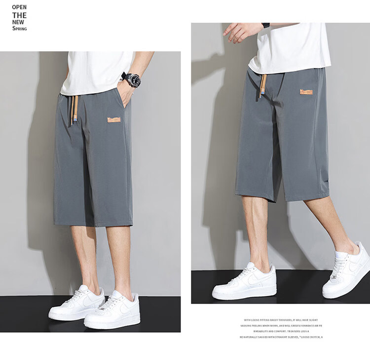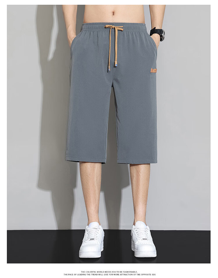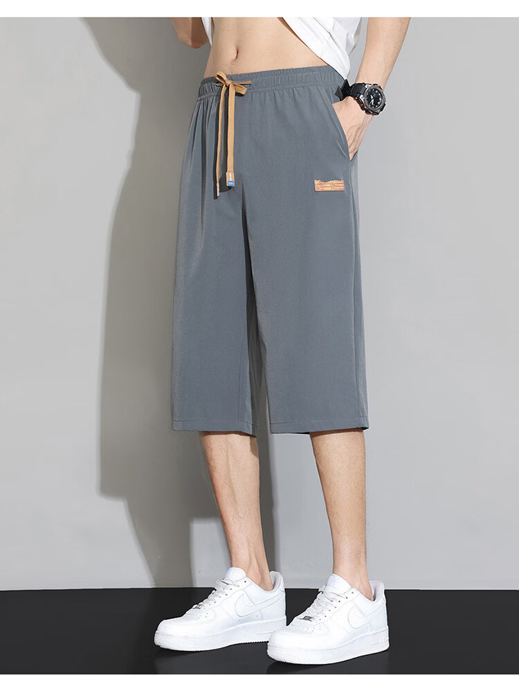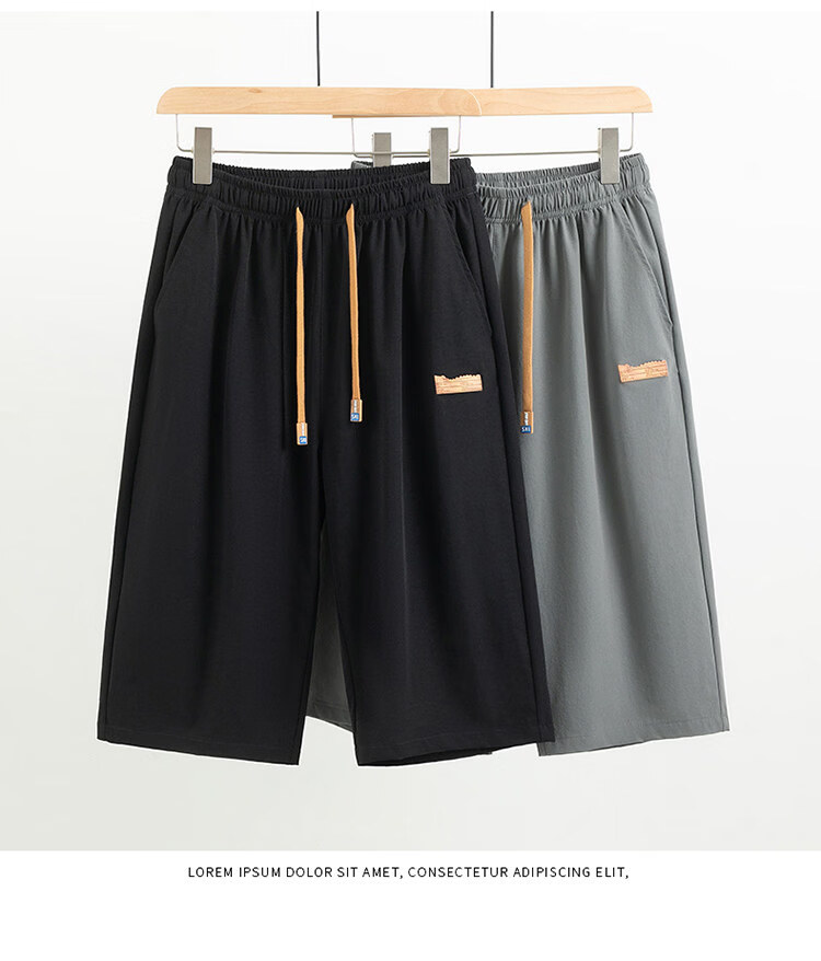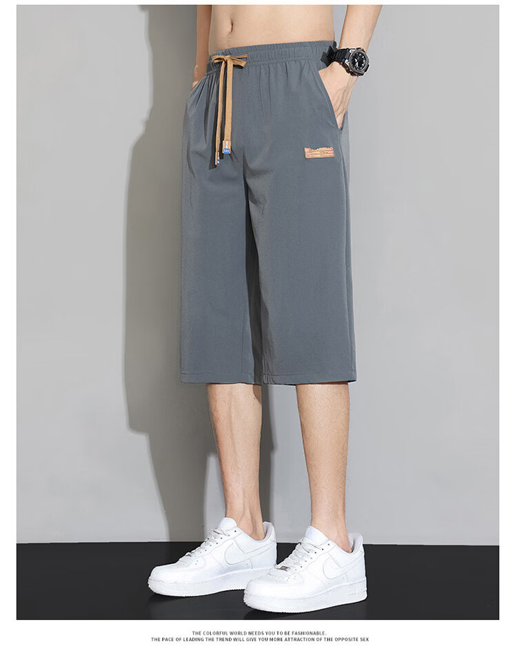 猫人(MiiOW)冰丝速干七分裤子男士夏季薄款外穿直筒马裤中裤宽松休闲运动短裤 720黑色 XL 【推荐120-135斤】