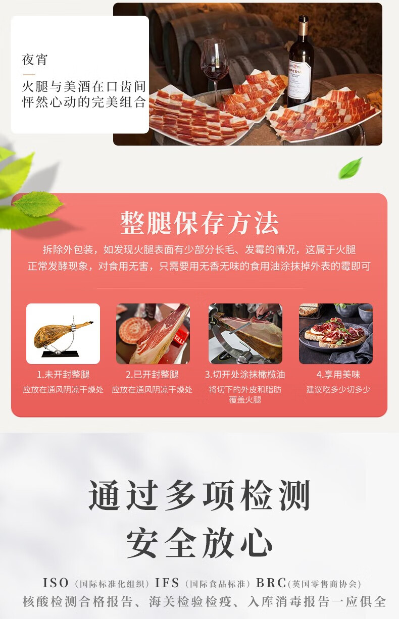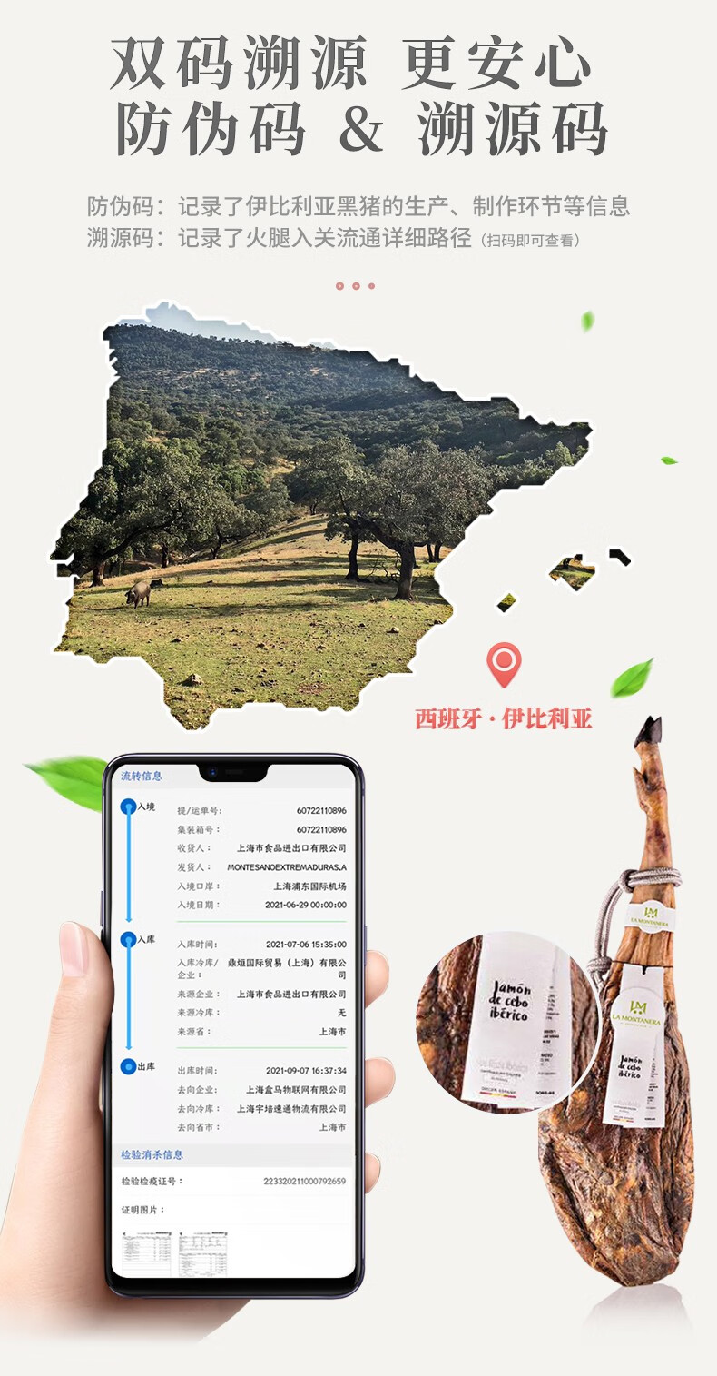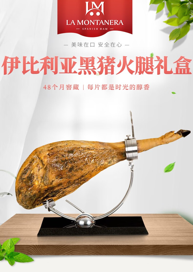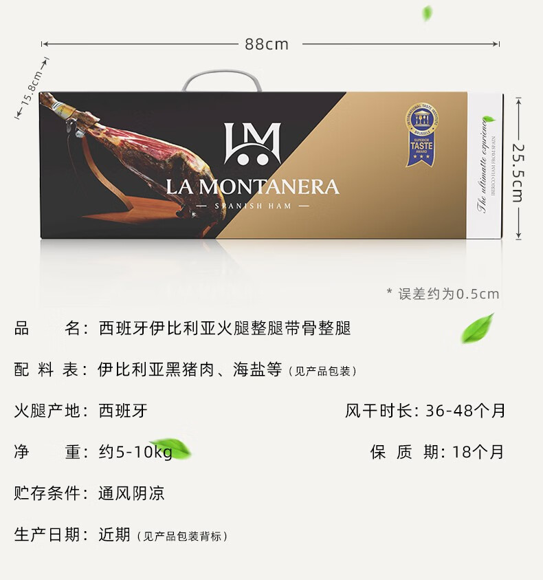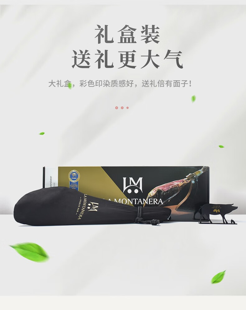 LA MONTANERA 西班牙火腿伊比利亚黑标原装进口即食 DOP产区整只腿礼品盒送礼 【法产认证黑标】100%血统全橡果7-8kg