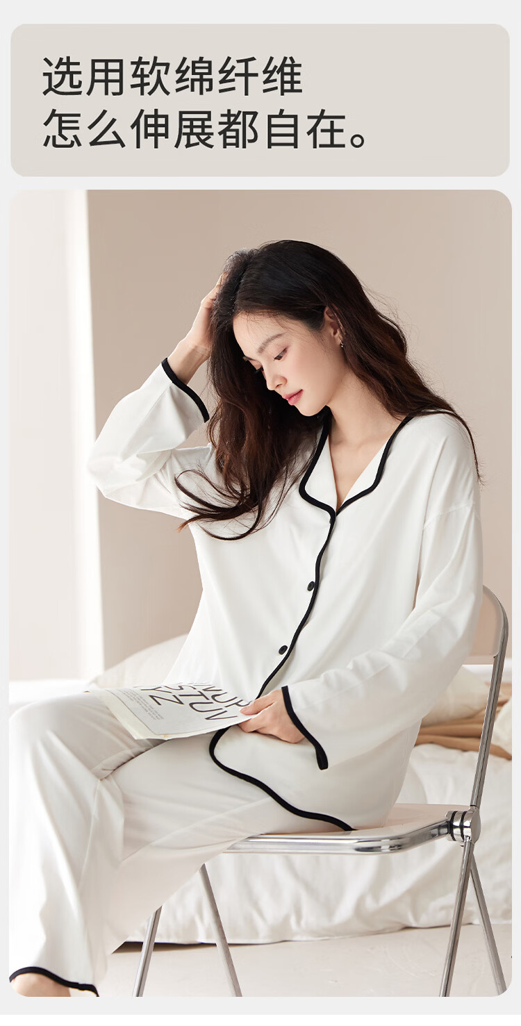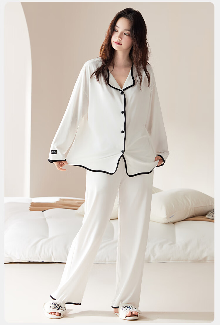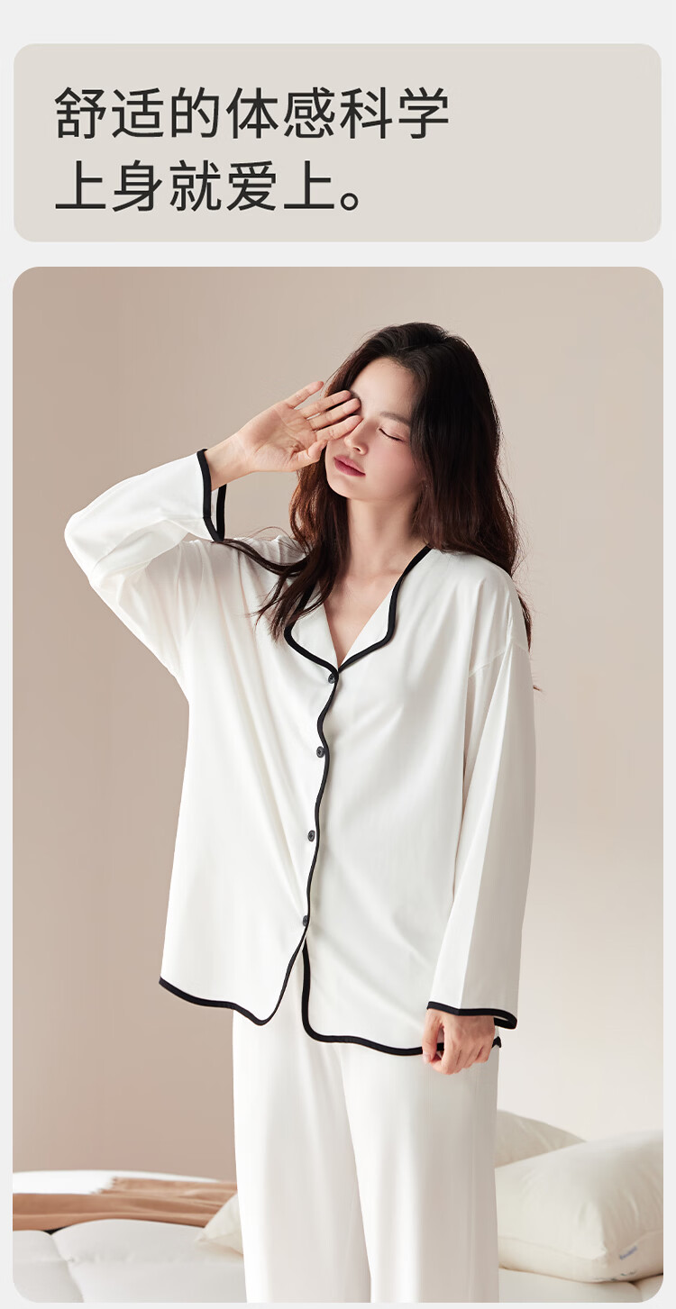 都市丽人女士睡衣女春秋季长袖开衫少女系列宽松透气简约可外穿家居服女 白色 2XL