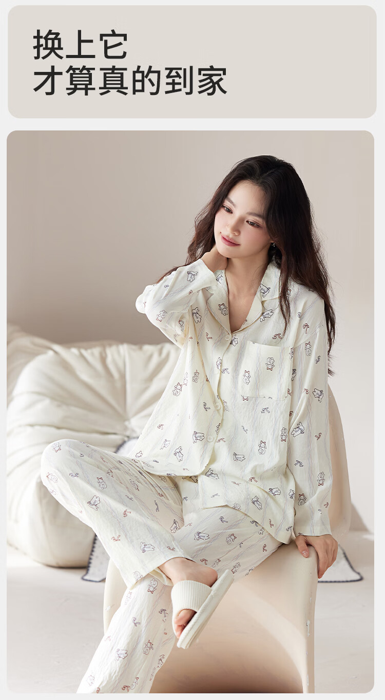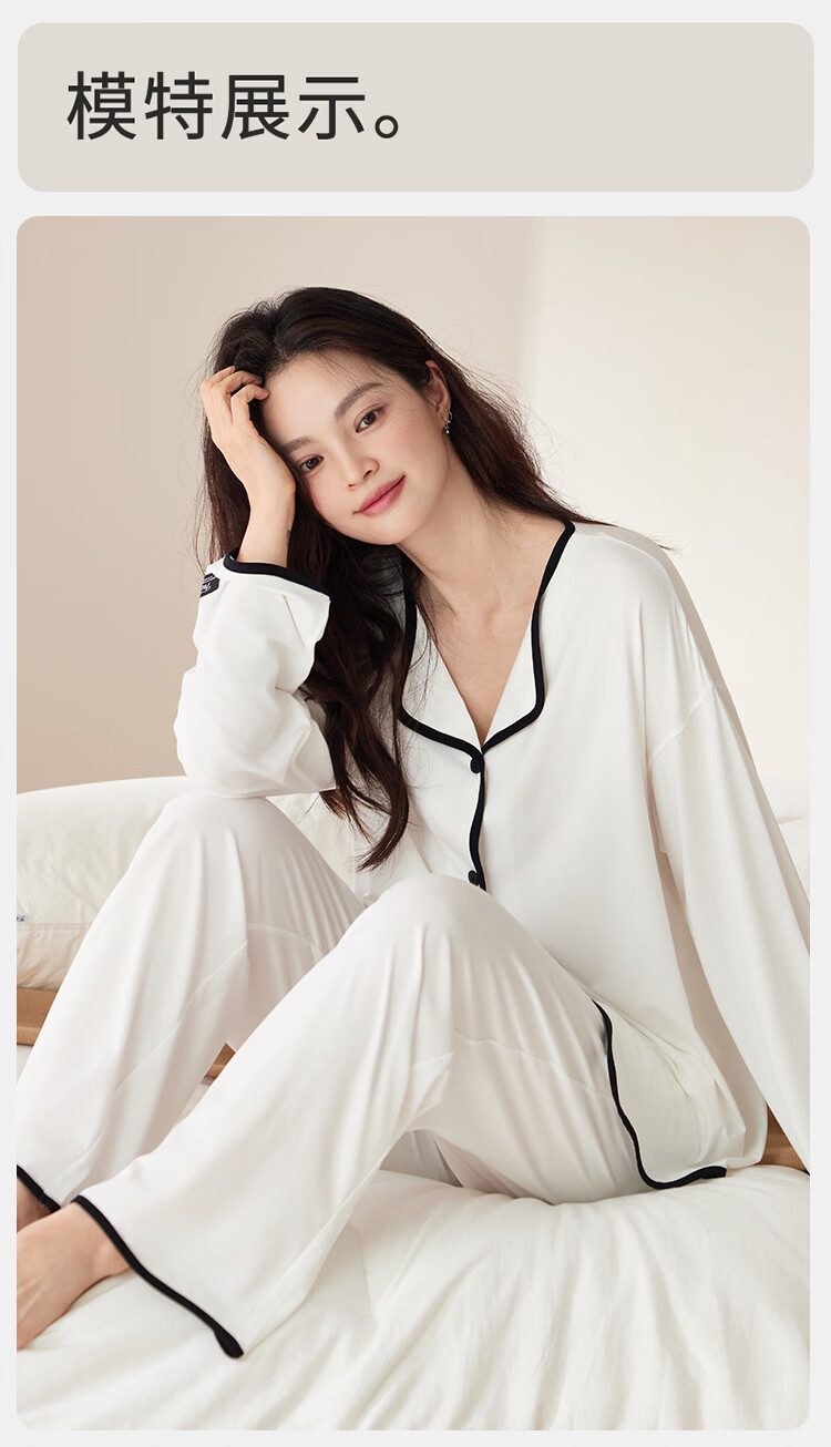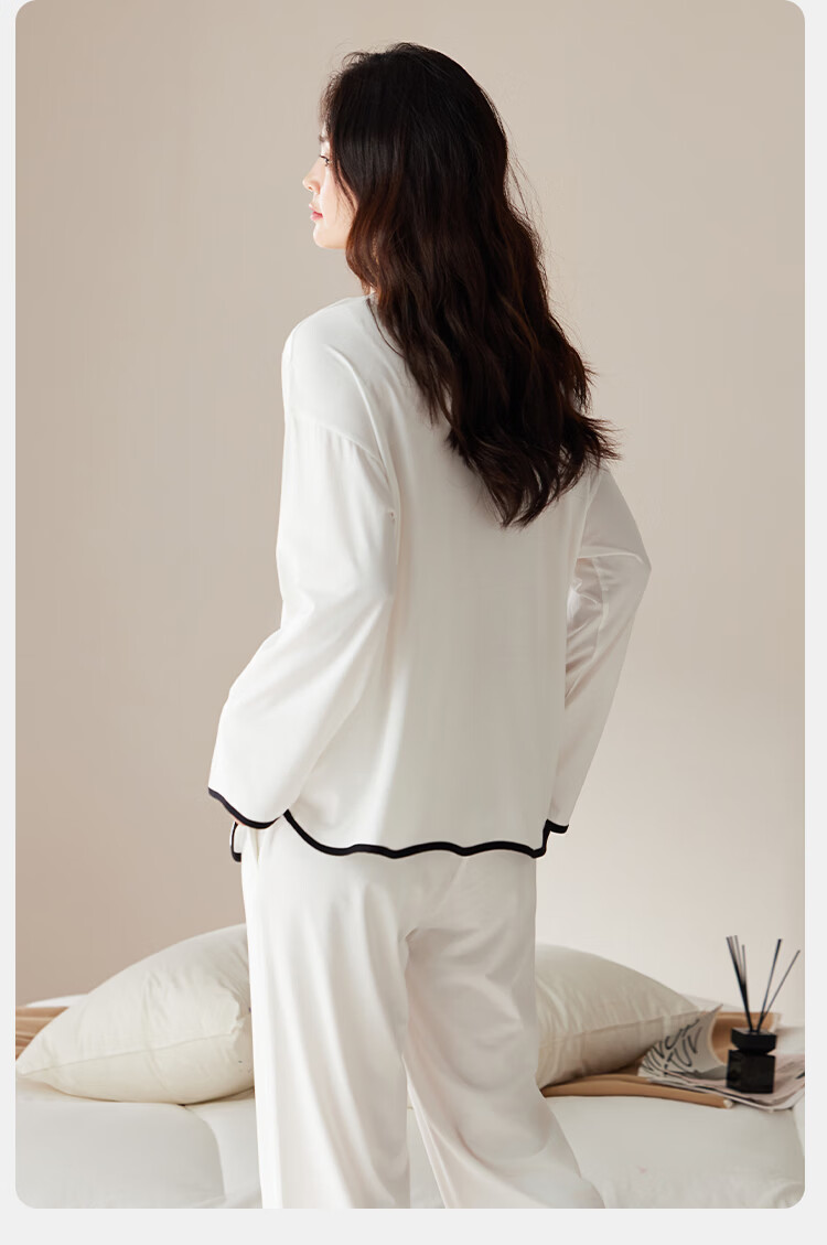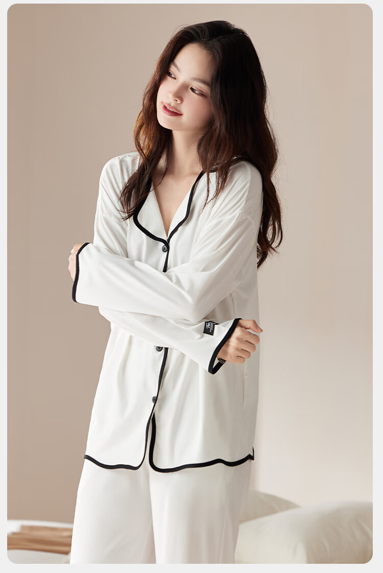 都市丽人女士睡衣女春秋季长袖开衫少女系列宽松透气简约可外穿家居服女 白色 2XL