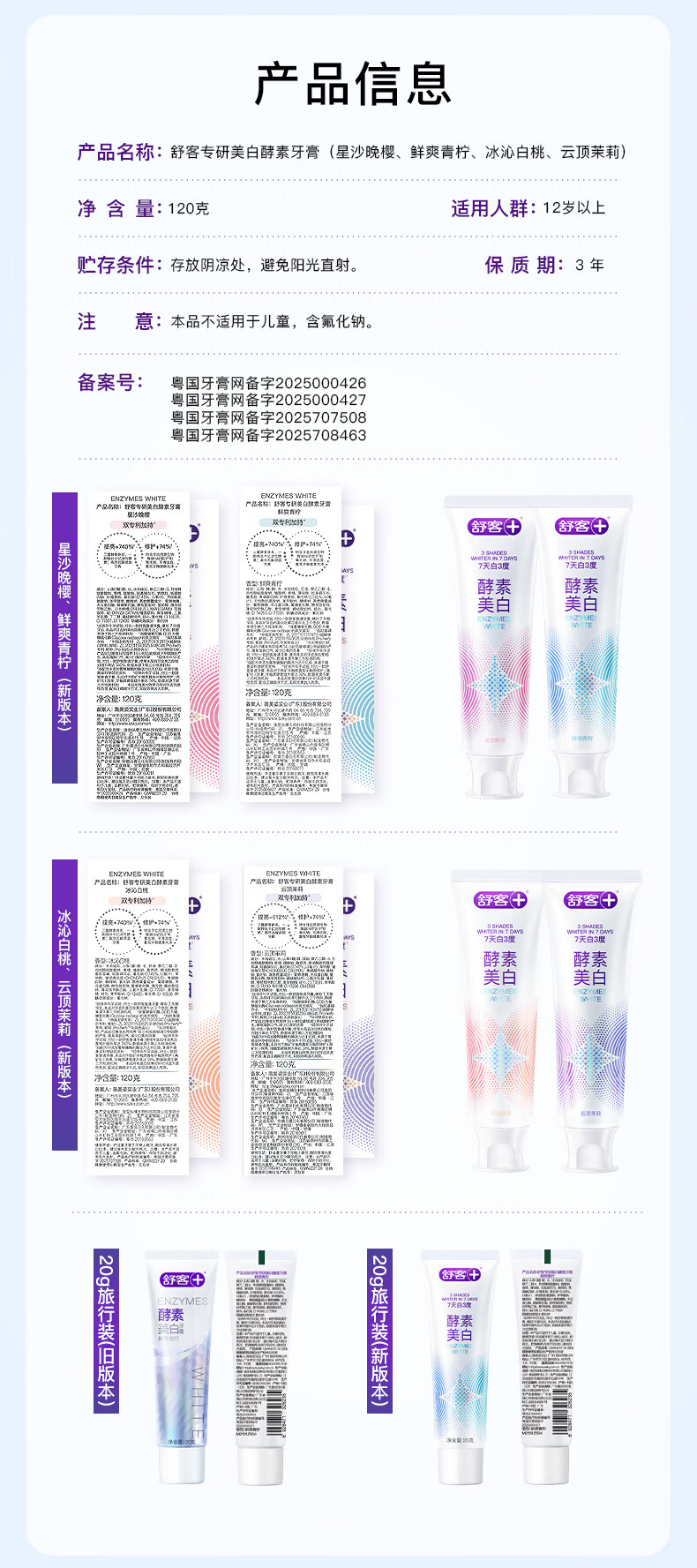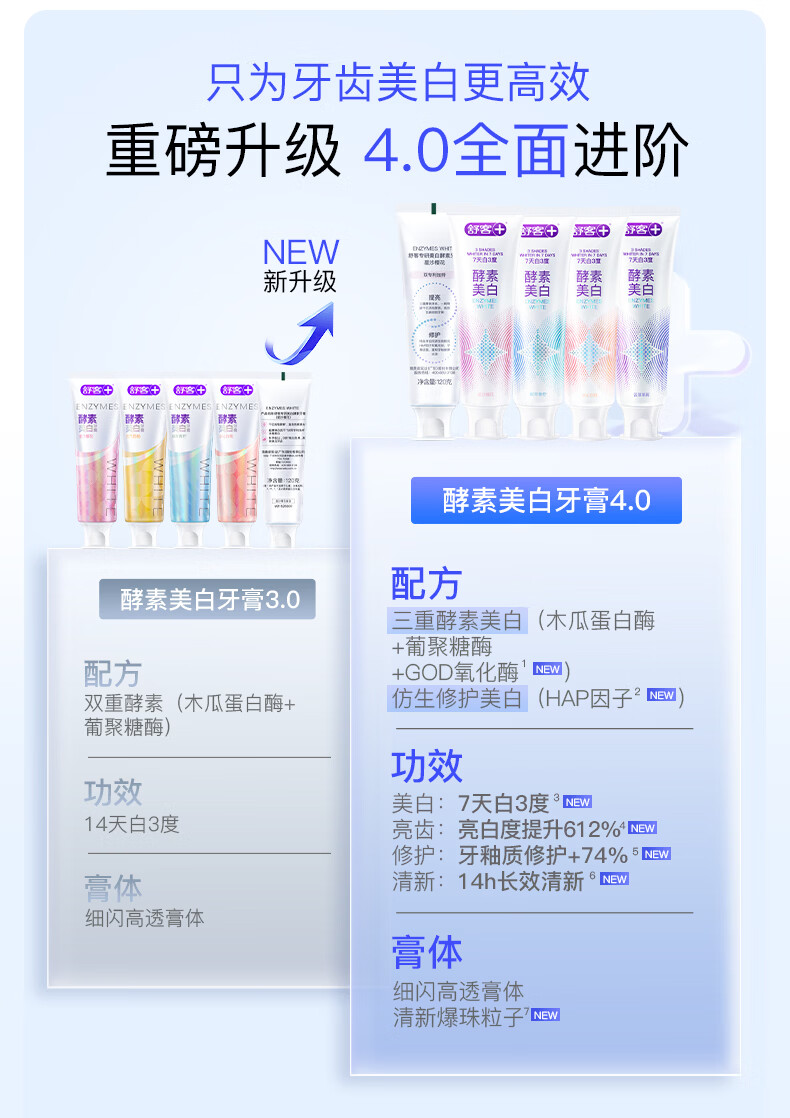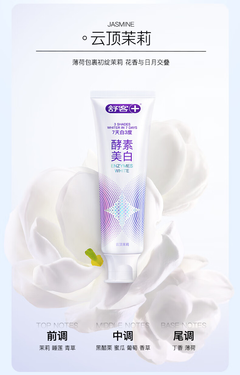 舒客酵素牙膏美白牙齿清新口气去黄去牙渍减轻口臭含氟 【7天白3度】酵素牙膏套装120g*3(白桃味)