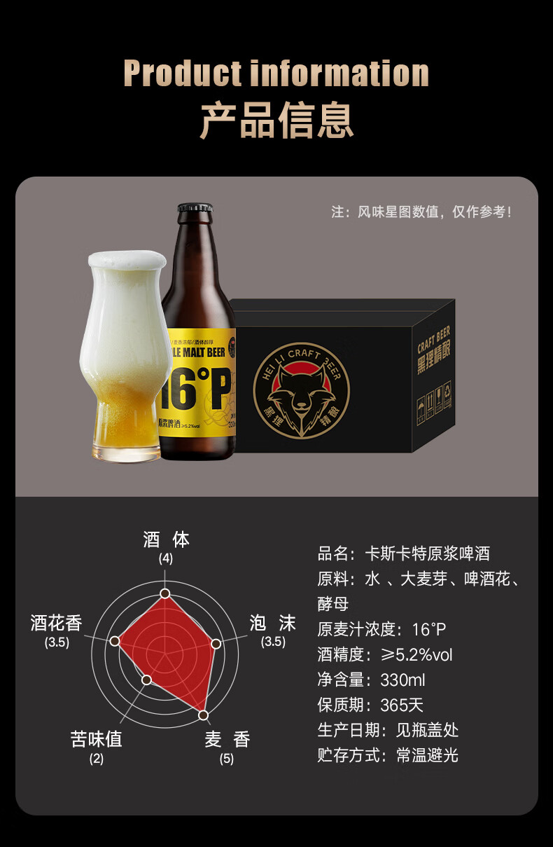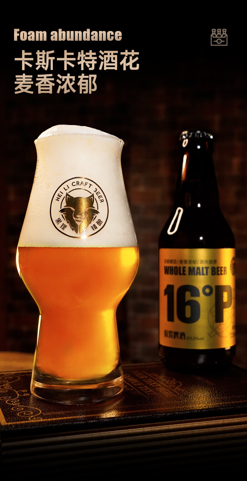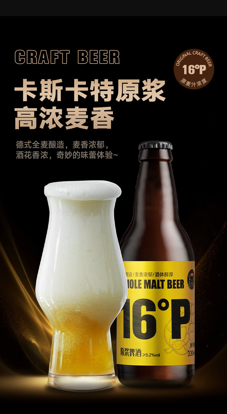 黑狸精酿16°P全麦原浆黄啤酒高端系列高度烈性送礼礼盒330ml整箱装 卡斯卡特原浆啤酒 330ml*12