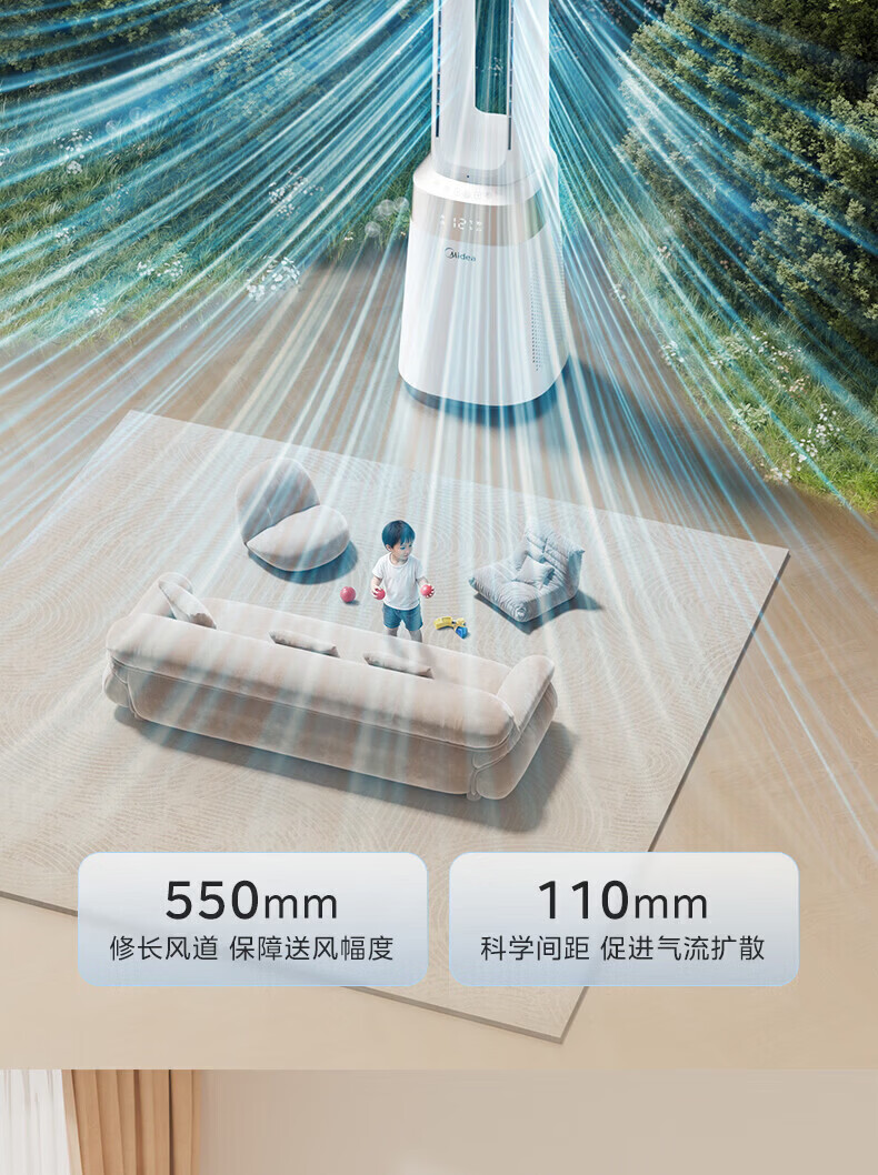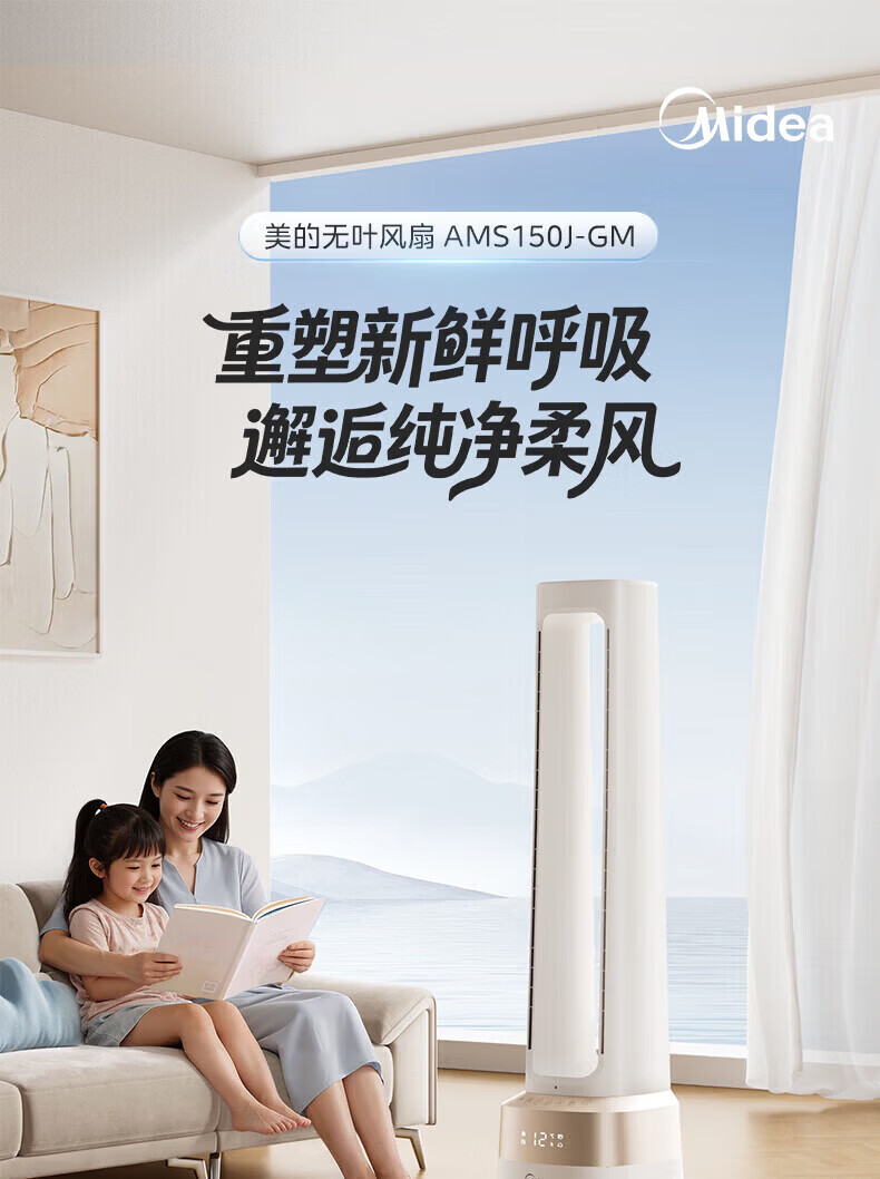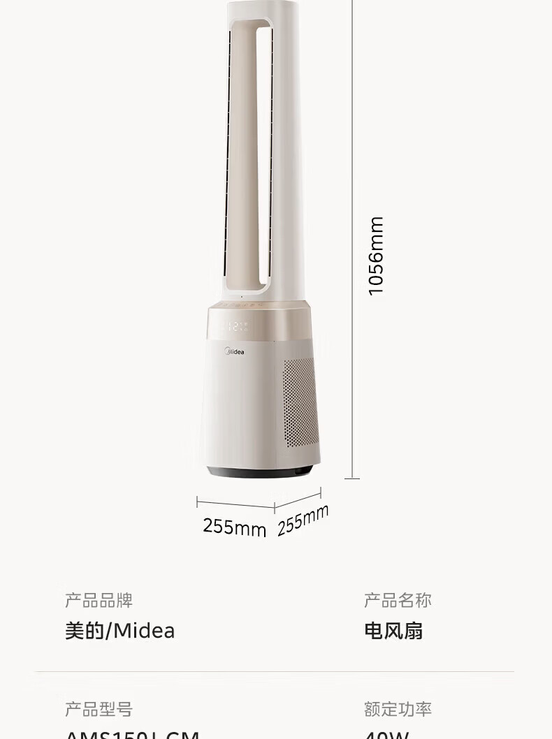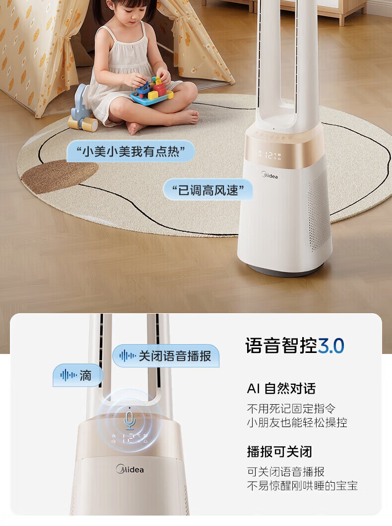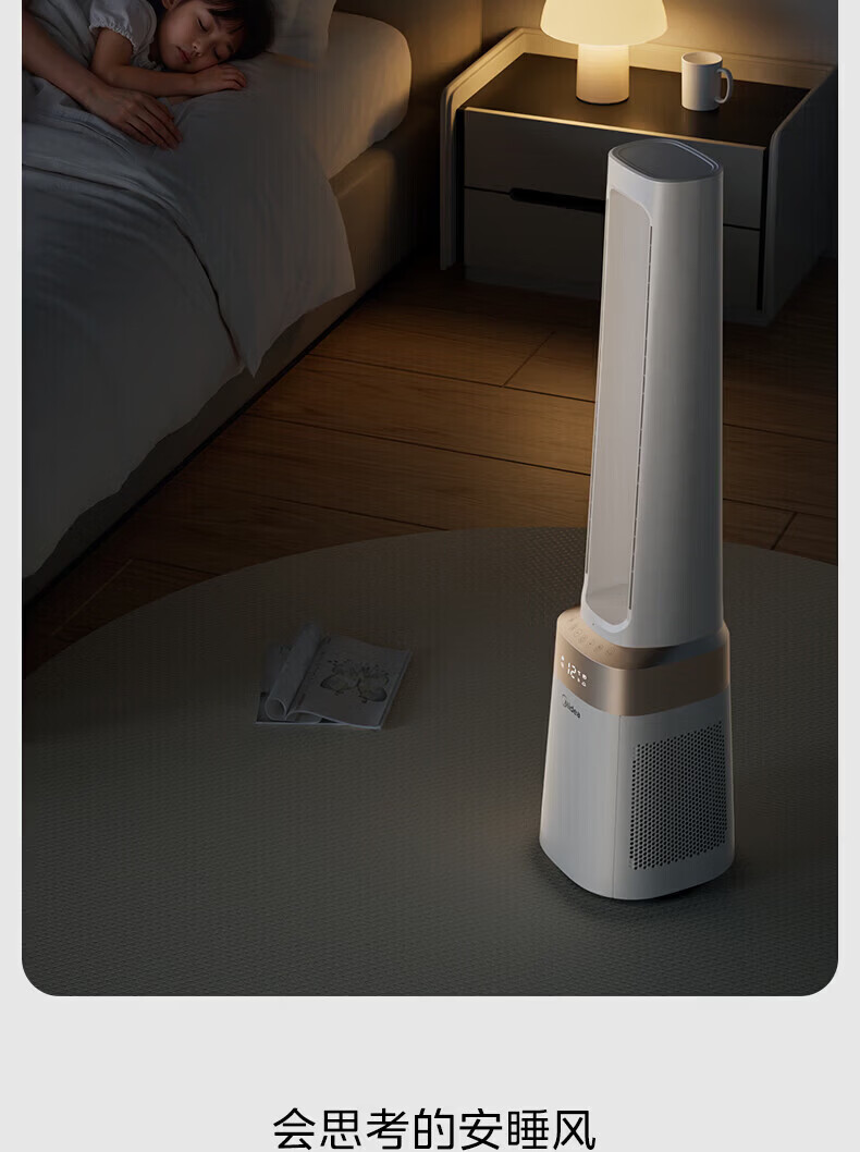 美的(Midea)家用塔式无叶风扇 智能定时轻音安静卧室家用母婴优选 循环风大风力 智能风随温变防着凉 语音声控 【风随温变】AMS150I-TBV