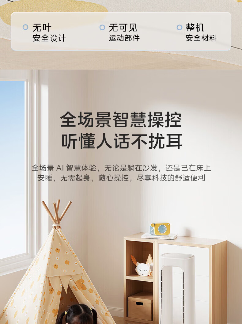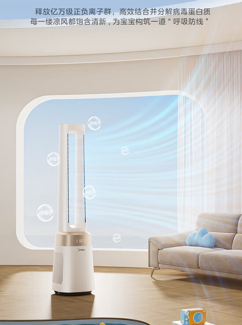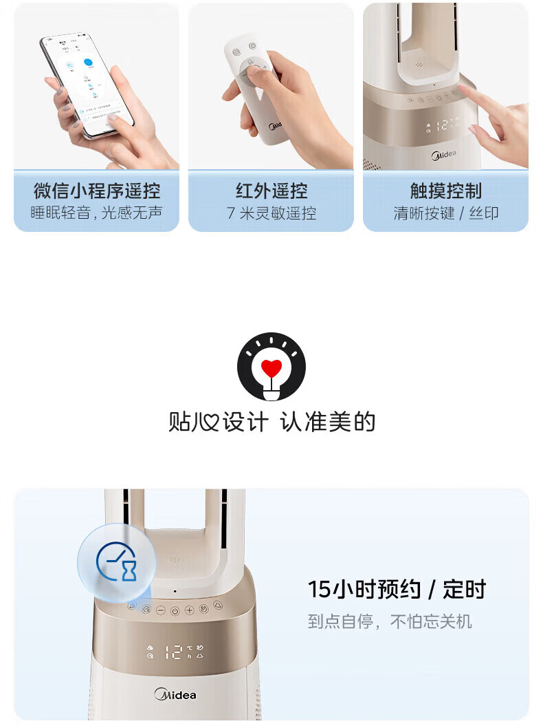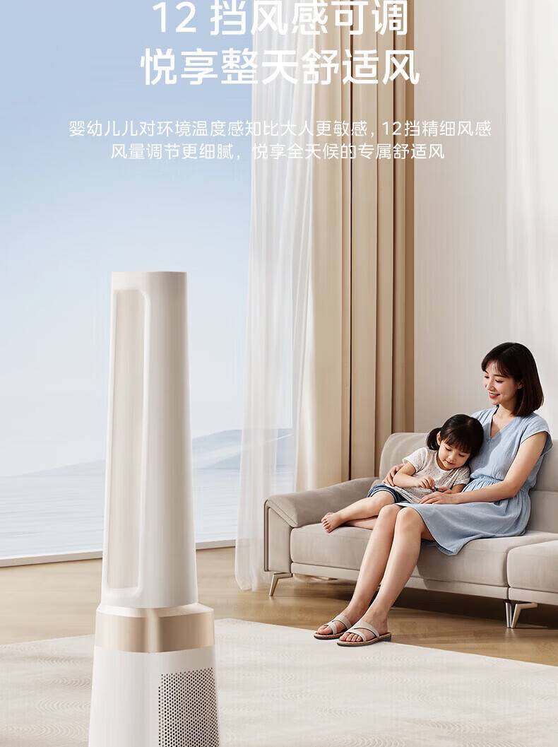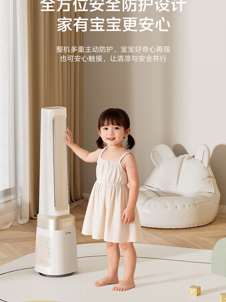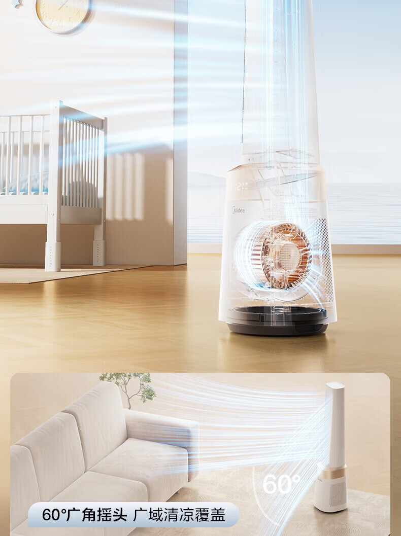 美的(Midea)家用塔式无叶风扇 智能定时轻音安静卧室家用母婴优选 循环风大风力 智能风随温变防着凉 语音声控 【风随温变】AMS150I-TBV