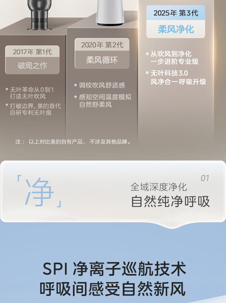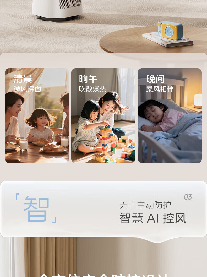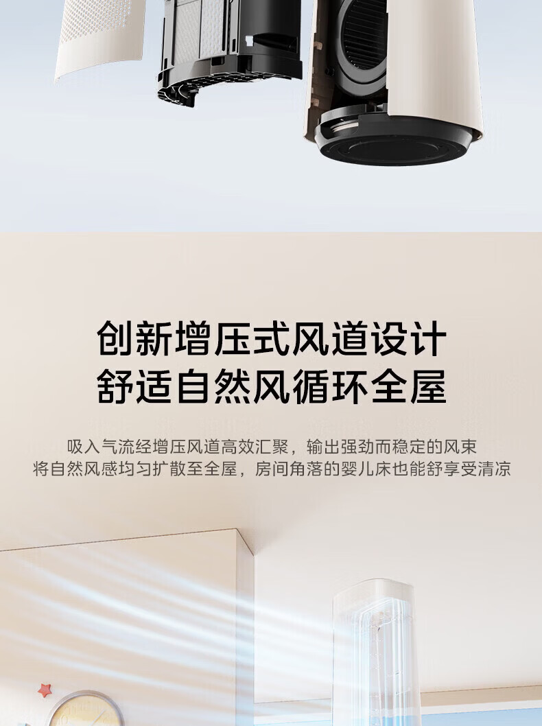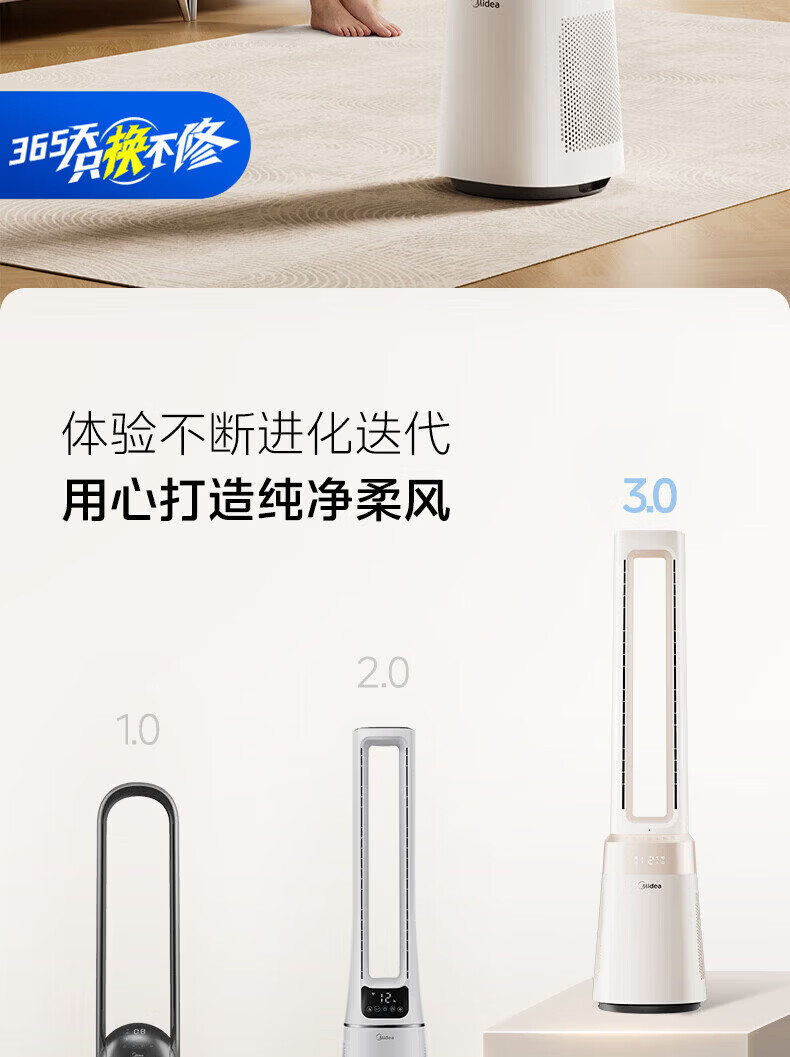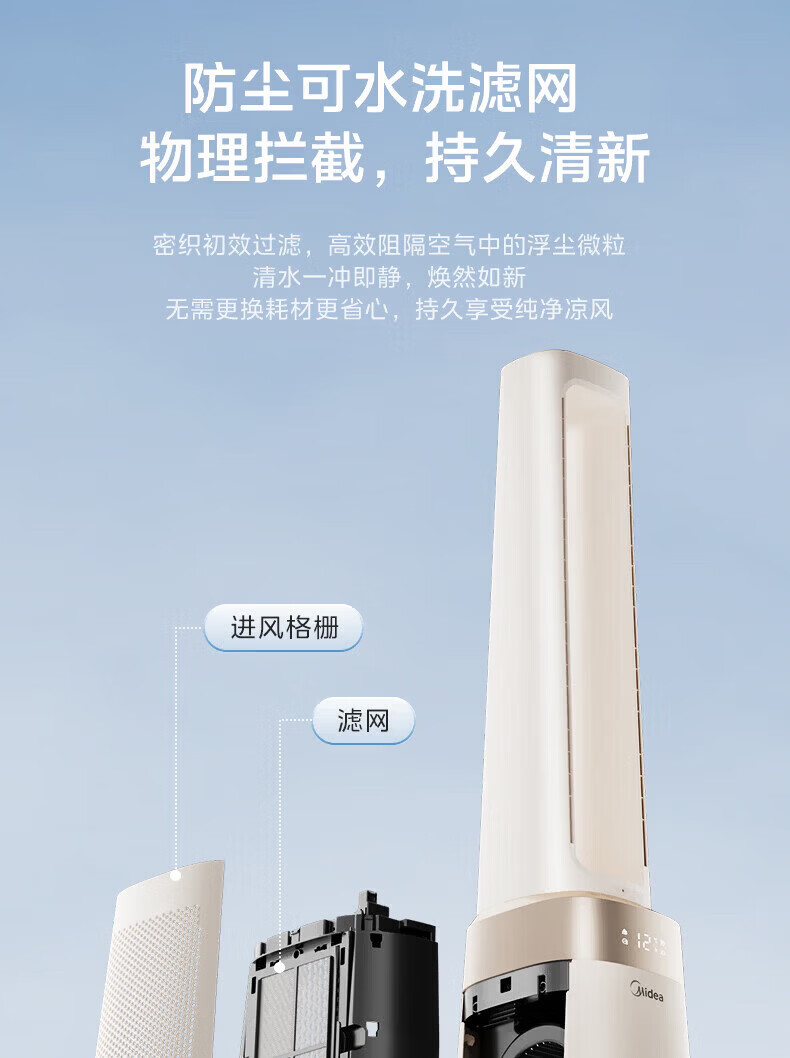 美的(Midea)家用塔式无叶风扇 智能定时轻音安静卧室家用母婴优选 循环风大风力 智能风随温变防着凉 语音声控 【风随温变】AMS150I-TBV