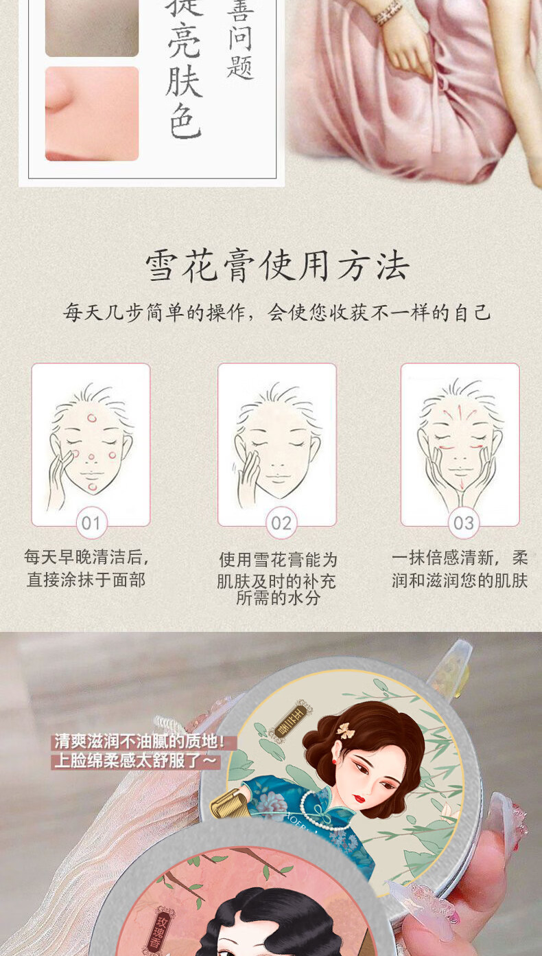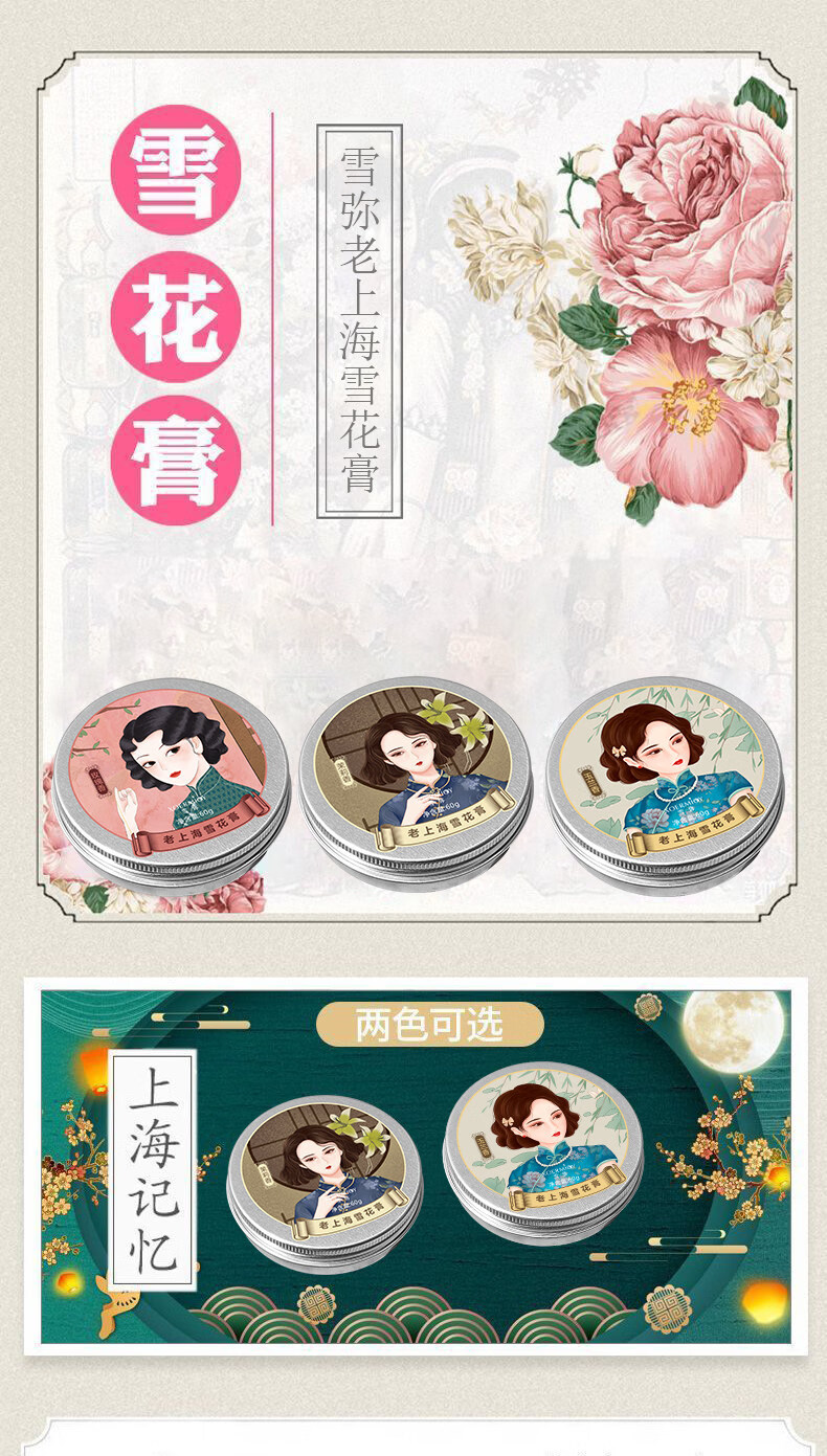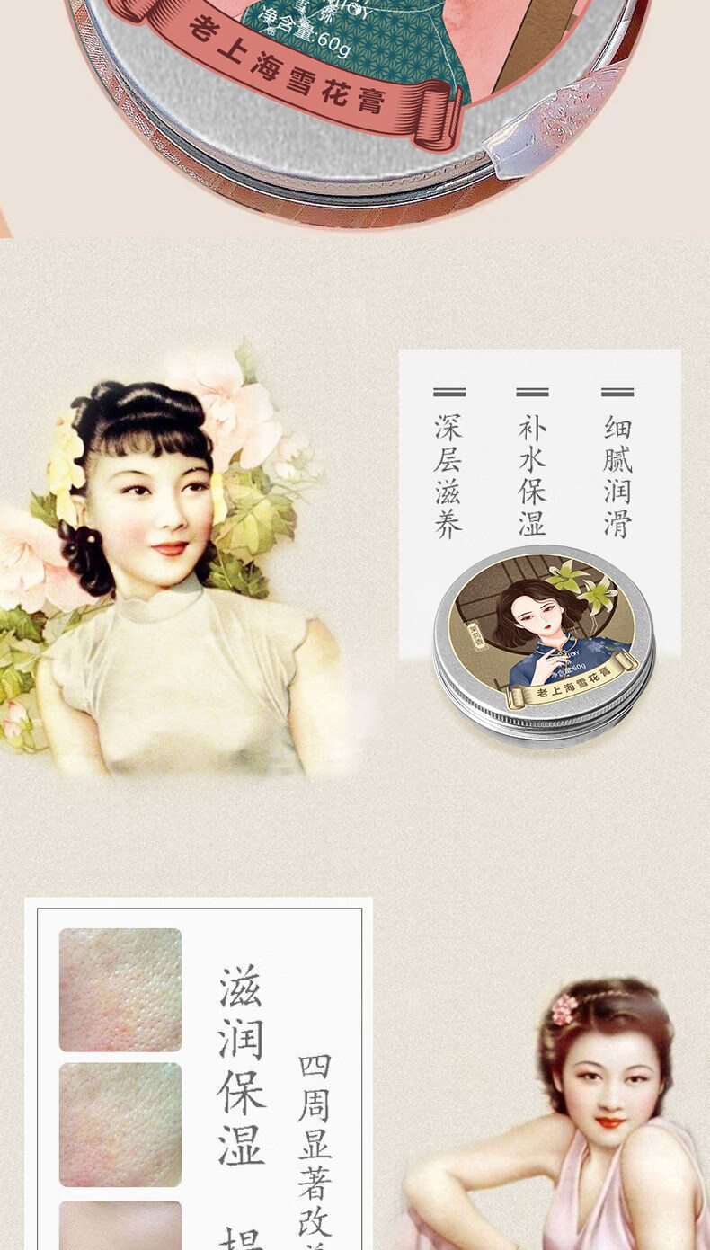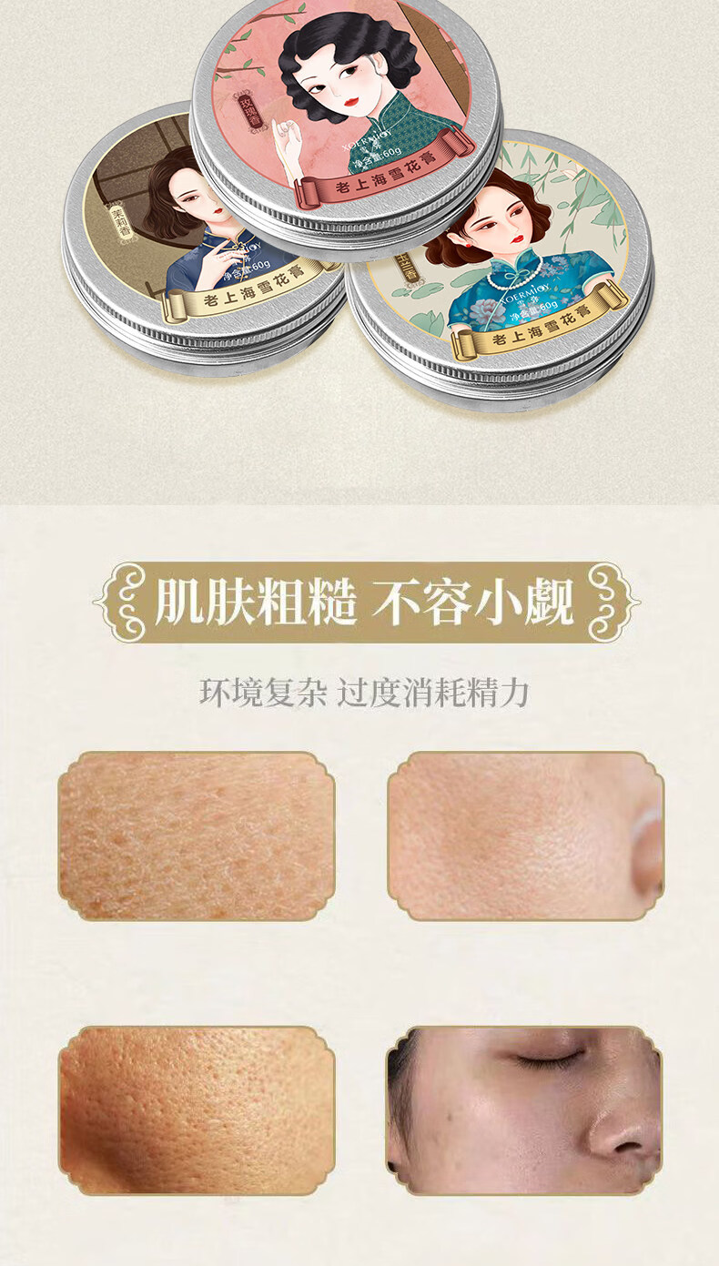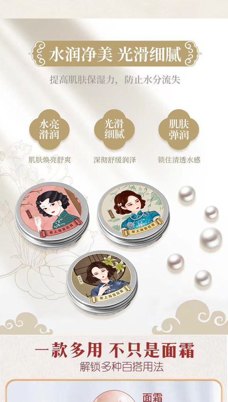 GINBI老上海雪花膏护肤品经典老牌国货补水保湿滋润面霜护手霜男女通用 老上海雪花膏60gx3盒
