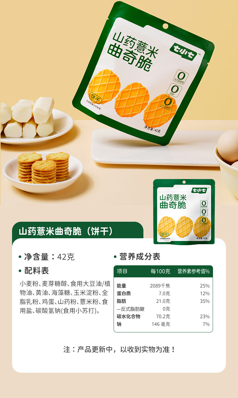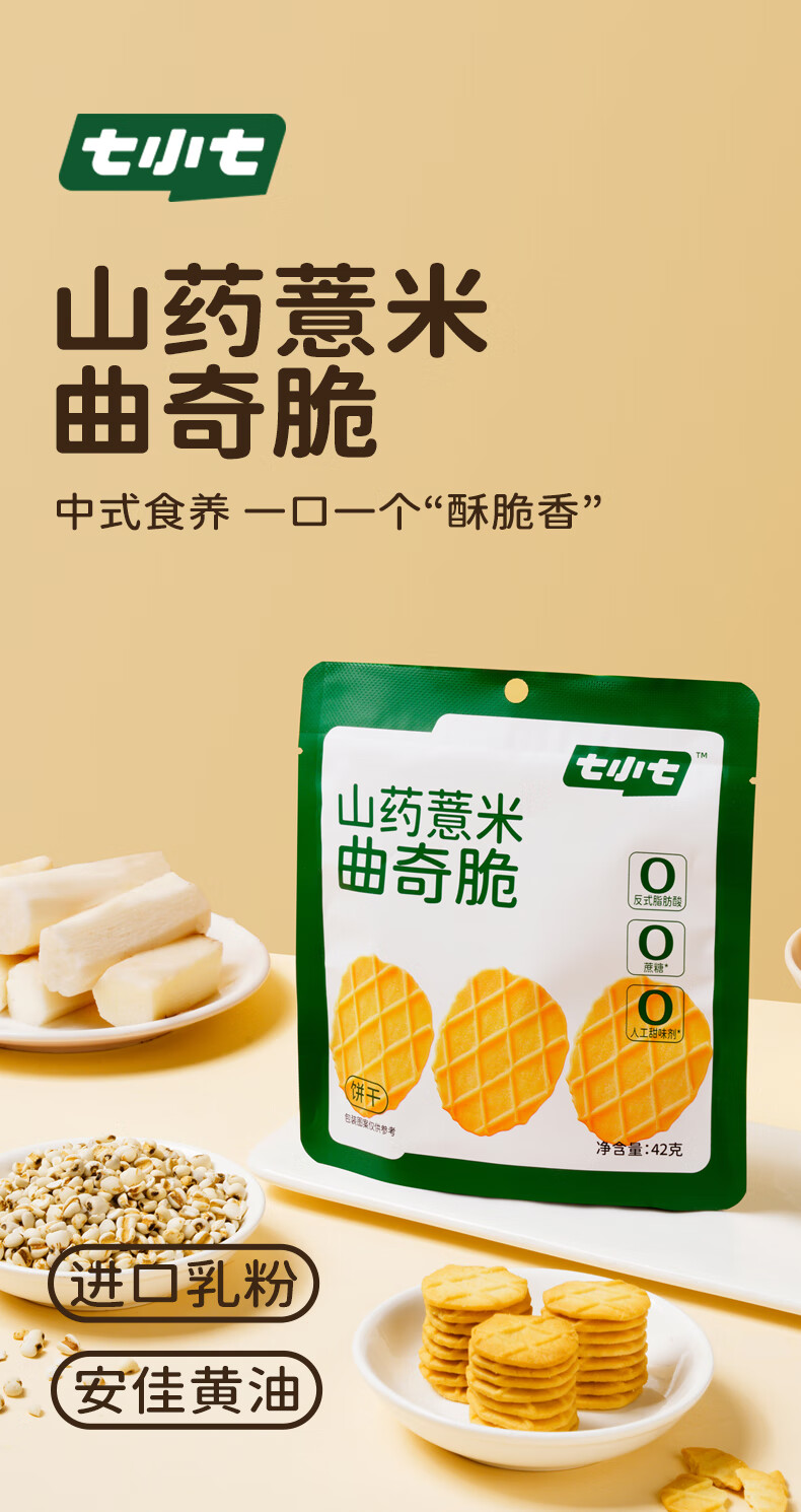 七小七山药薏米曲奇脆42g*4袋 黄油曲奇饼干0添加宝宝零食解馋休闲食品