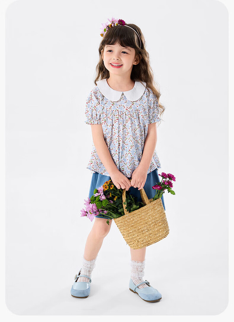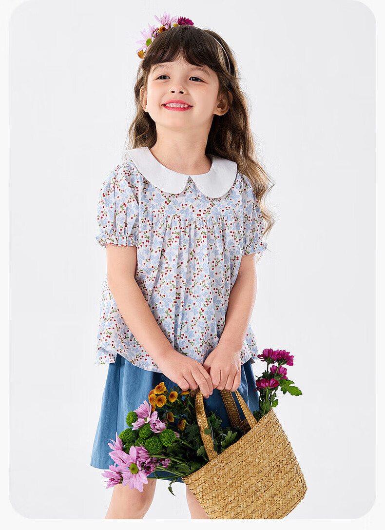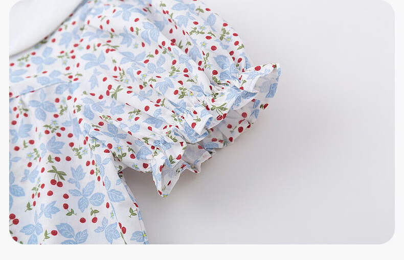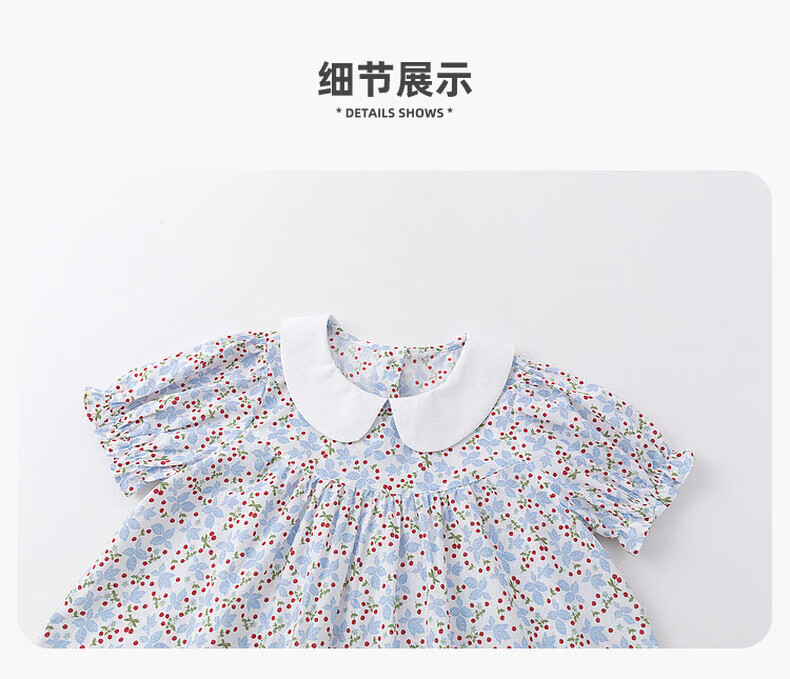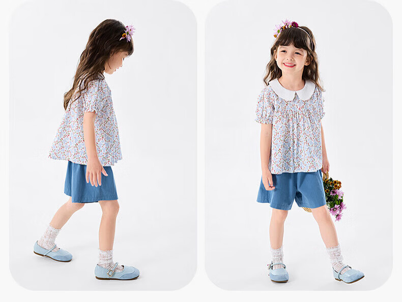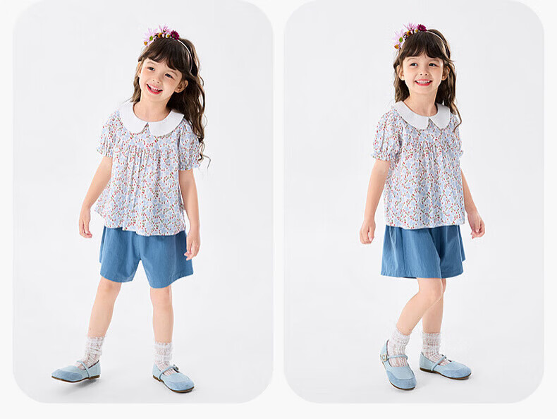 嘟嘟家【100%棉】女童森系套装女孩夏季纯棉短袖短裤女宝小碎花两件套潮 航线蓝 110