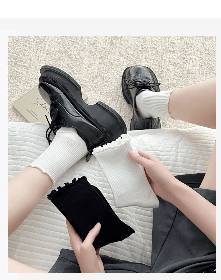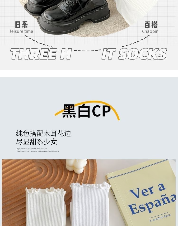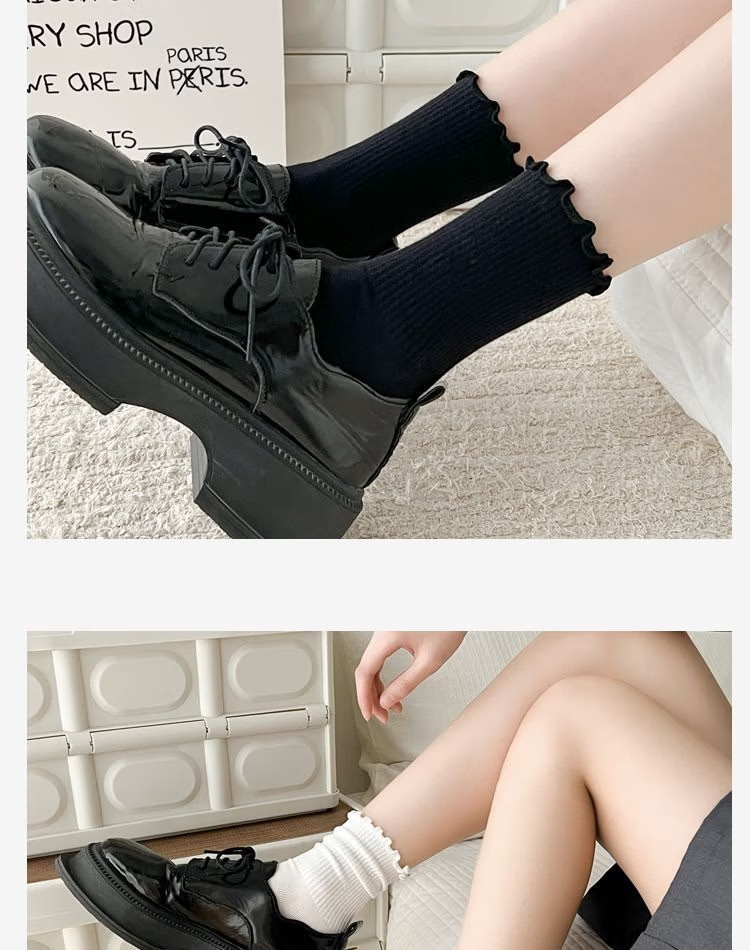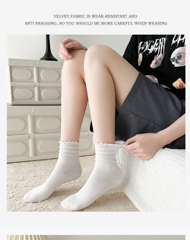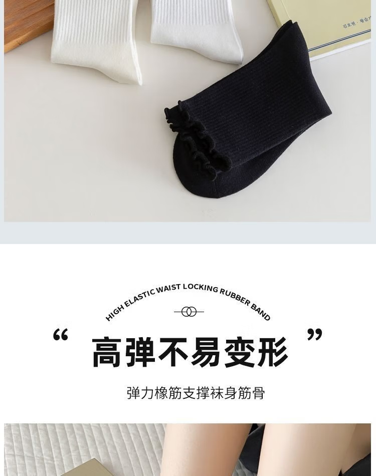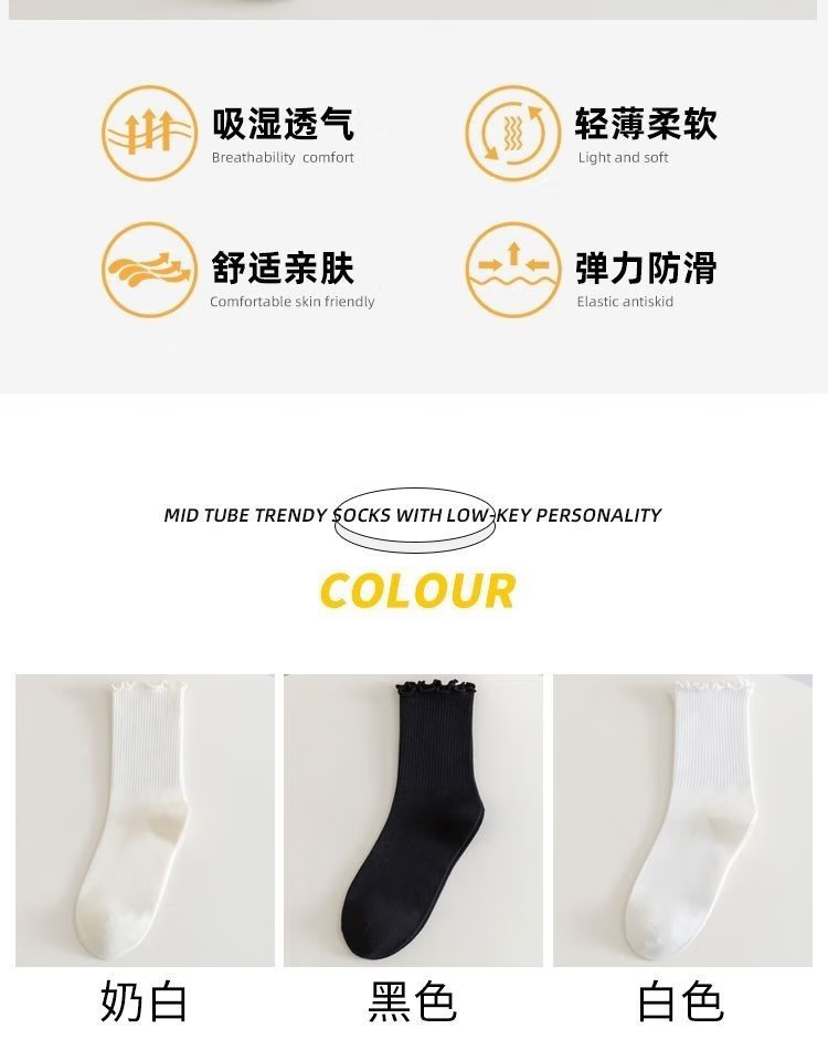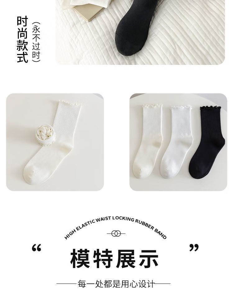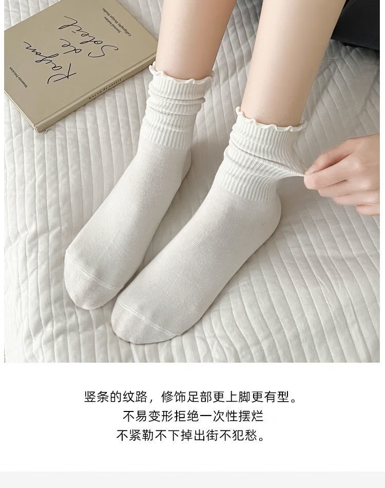 花边袜子女秋冬中筒袜白色堆堆袜长筒袜春秋木耳边jk袜子配小皮鞋 中筒【3双(亏本冲刺)】每色1双 均码 (收藏加购优先发货)