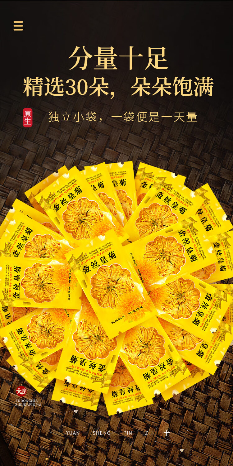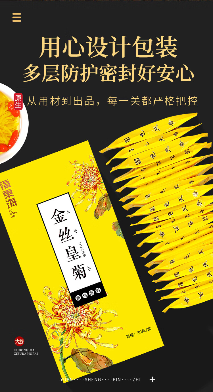 福东海金丝皇菊 安徽黄山特级【买3发4共120大朵】贡菊花茶叶