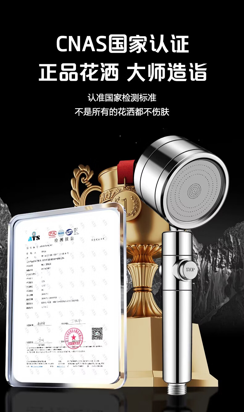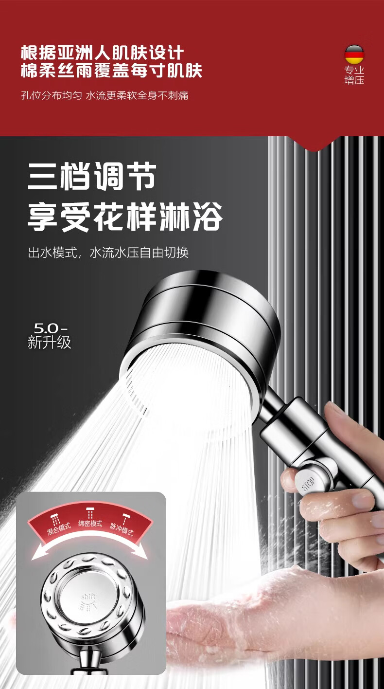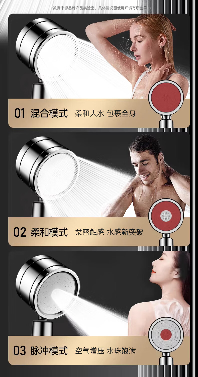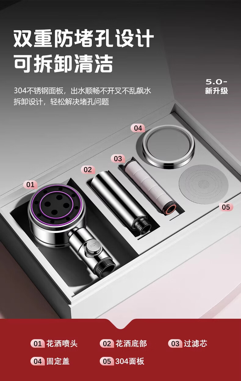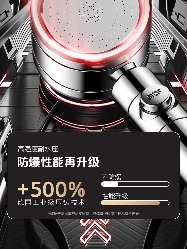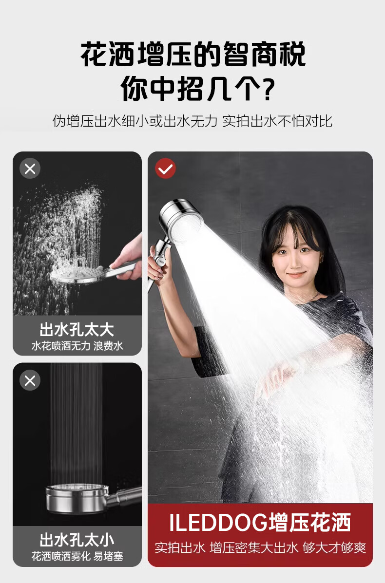 iLeddog【德国】增压淋浴花洒喷头带软管套装手持花洒家用浴室洗澡莲蓬头 【星空银】增压净水花洒 纯净过滤净水丨三档SPA级大水