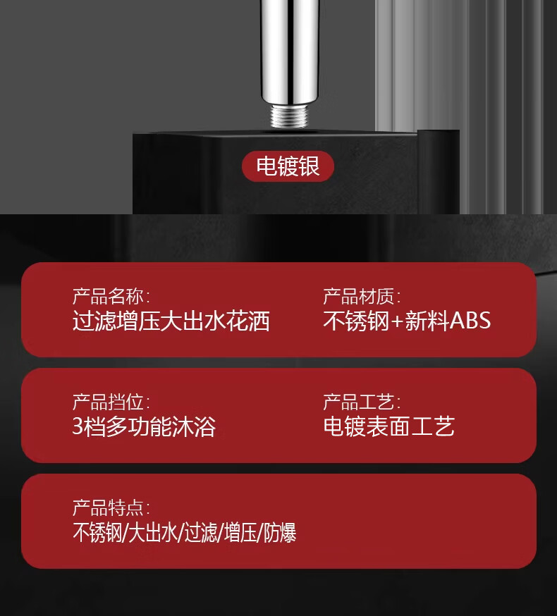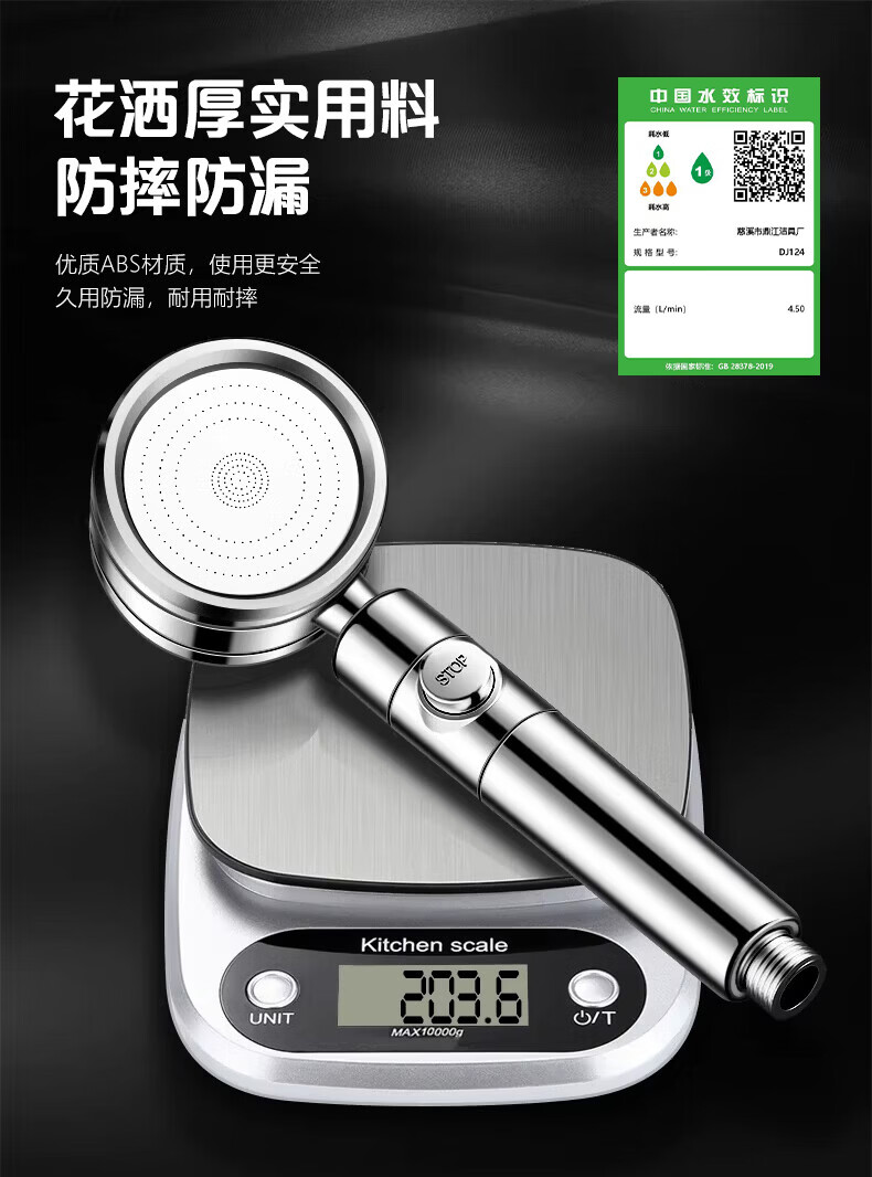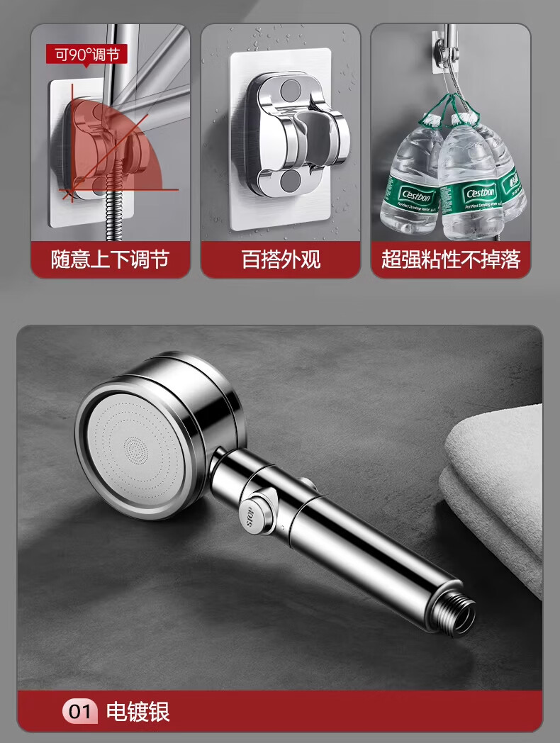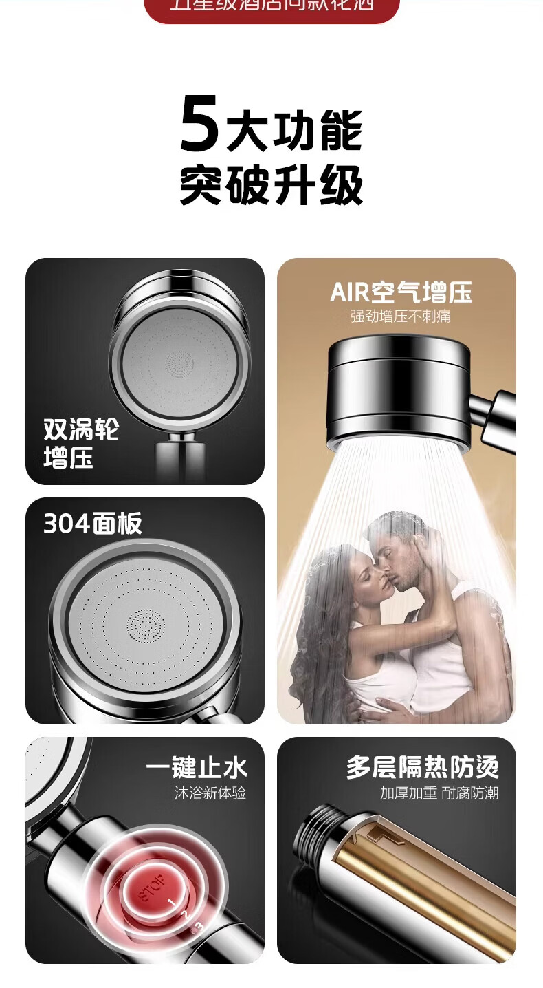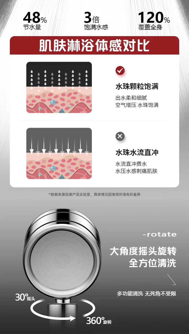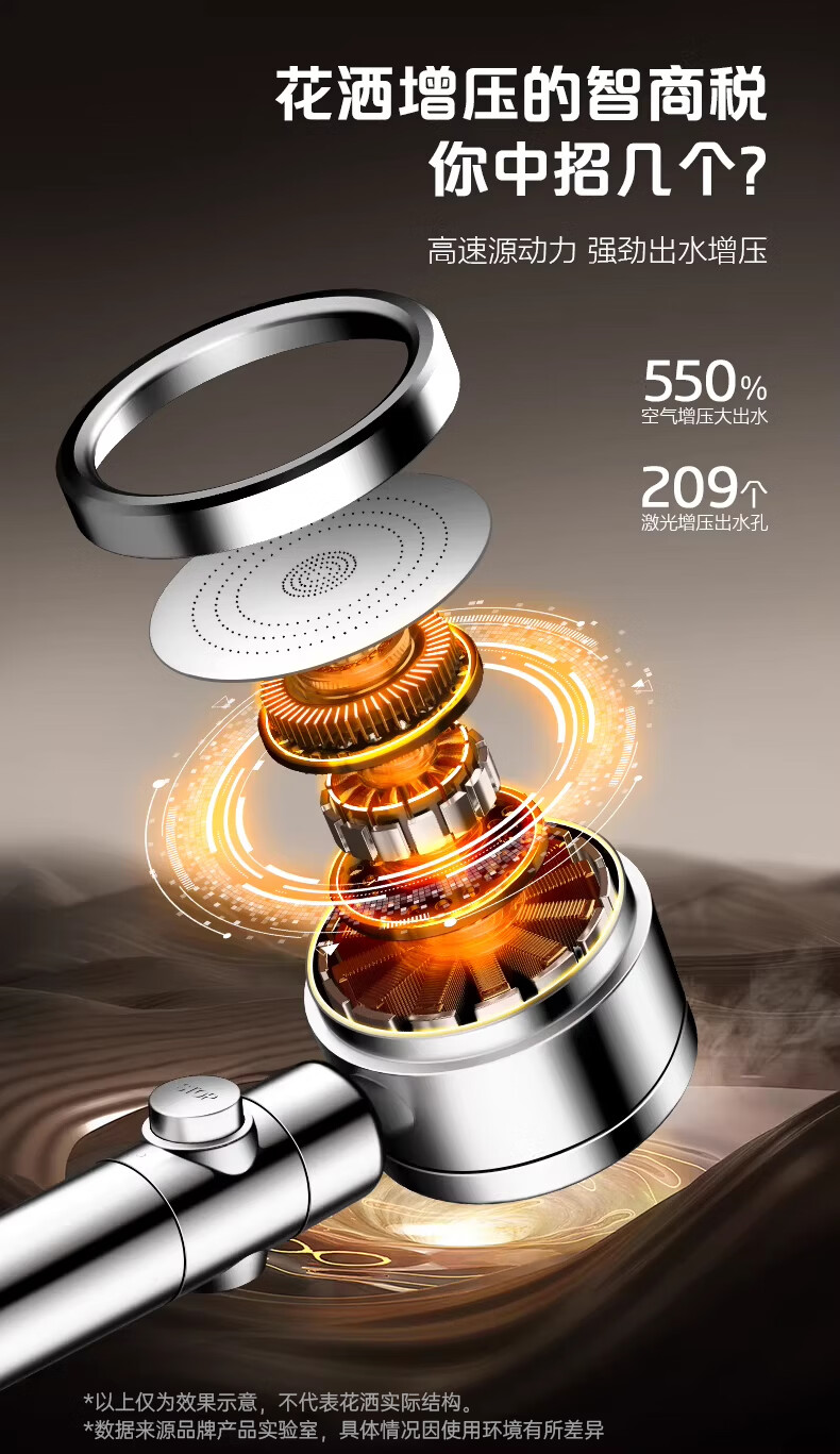 iLeddog【德国】增压淋浴花洒喷头带软管套装手持花洒家用浴室洗澡莲蓬头 【星空银】增压净水花洒 纯净过滤净水丨三档SPA级大水