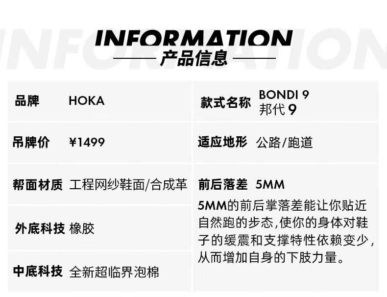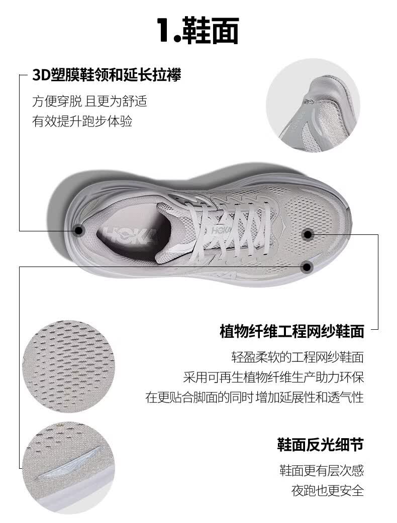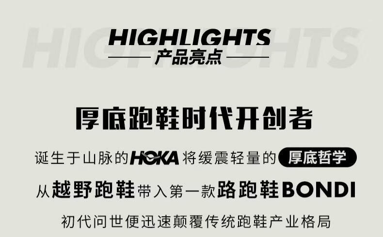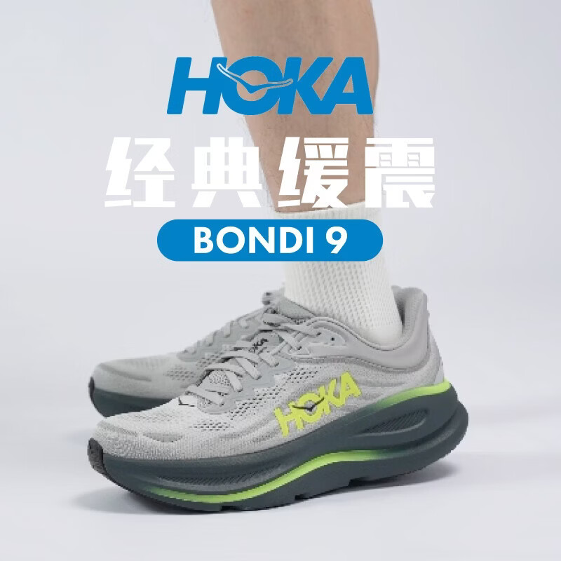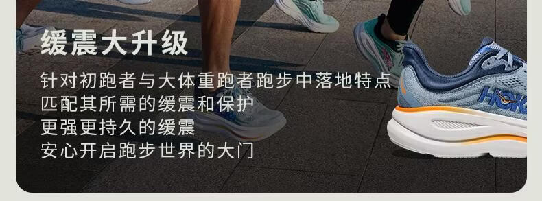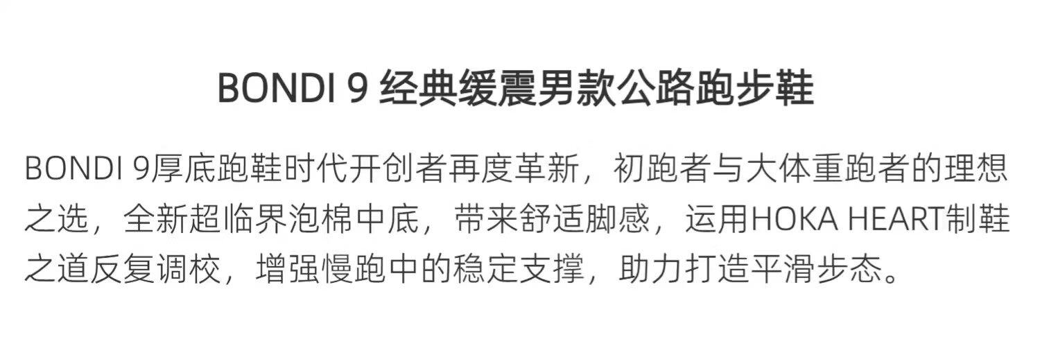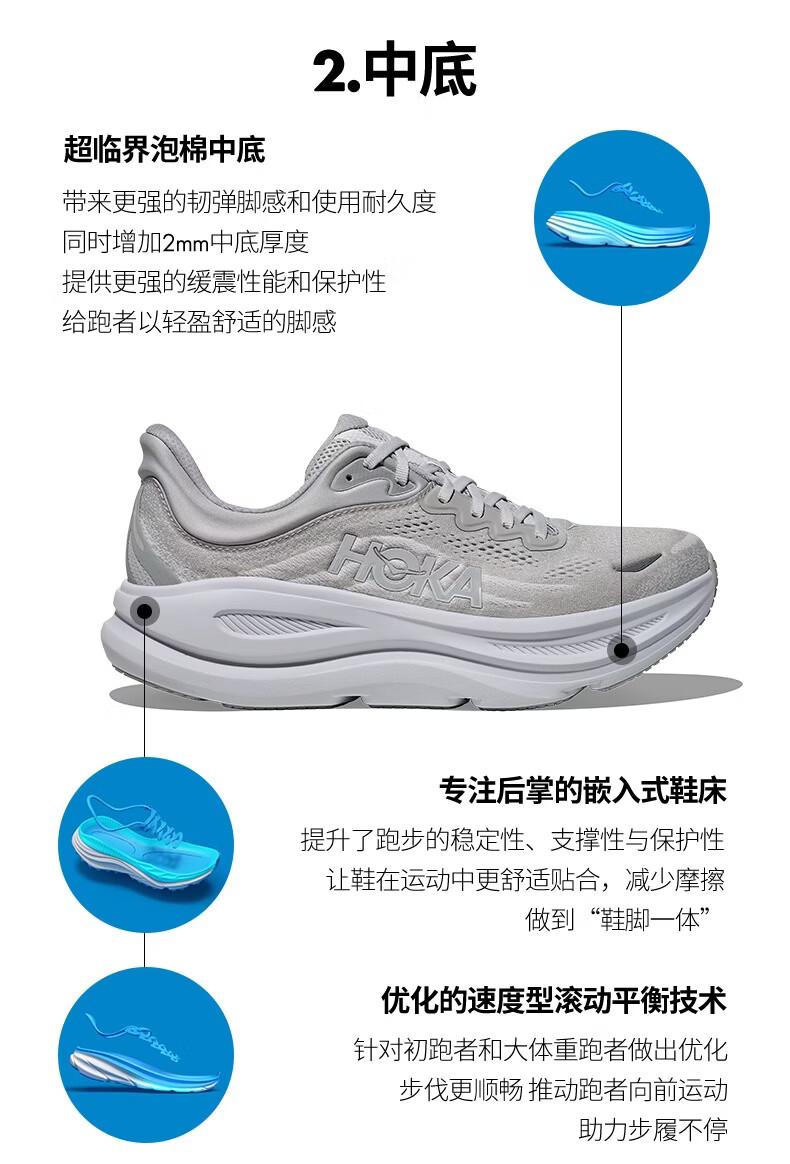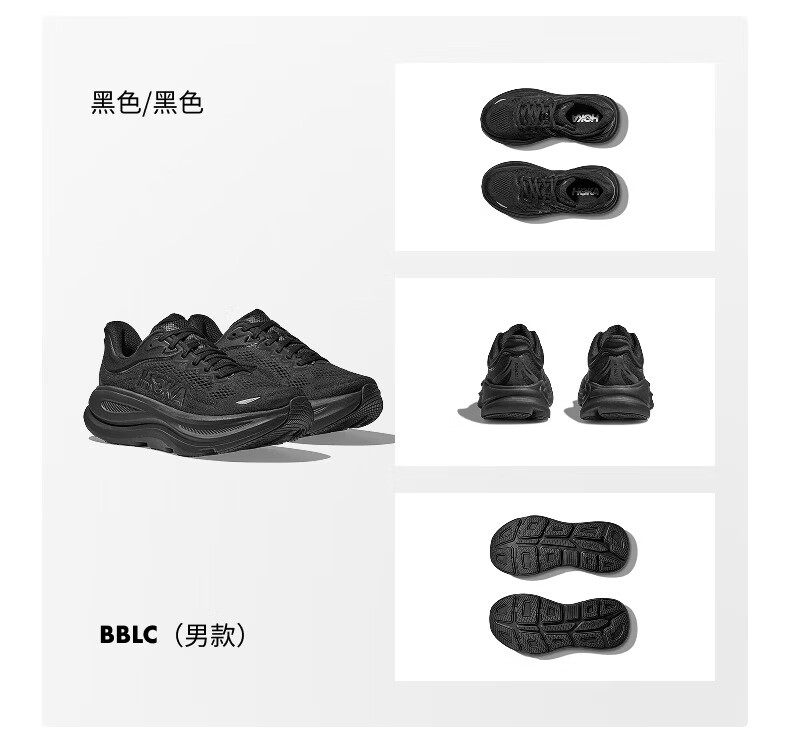 HOKA男款Bondi 9邦代9舒适减震防滑透气公路跑步运动鞋黑色 42.5