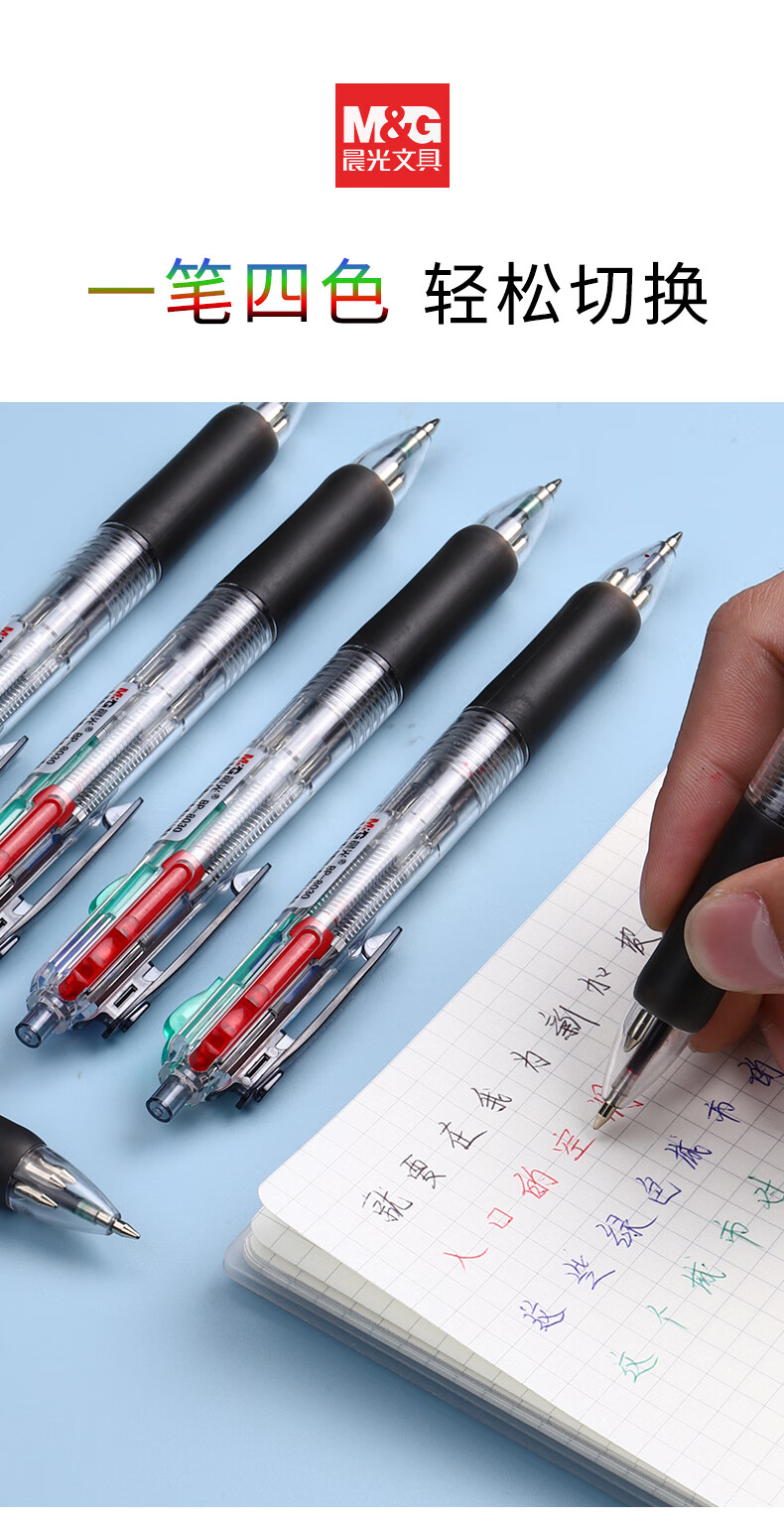 晨光(M&G)四色合一按压式圆珠笔BP8030四色0.7子弹头标记笔多功能4色油性笔学生用办公用笔记文具用品4支
