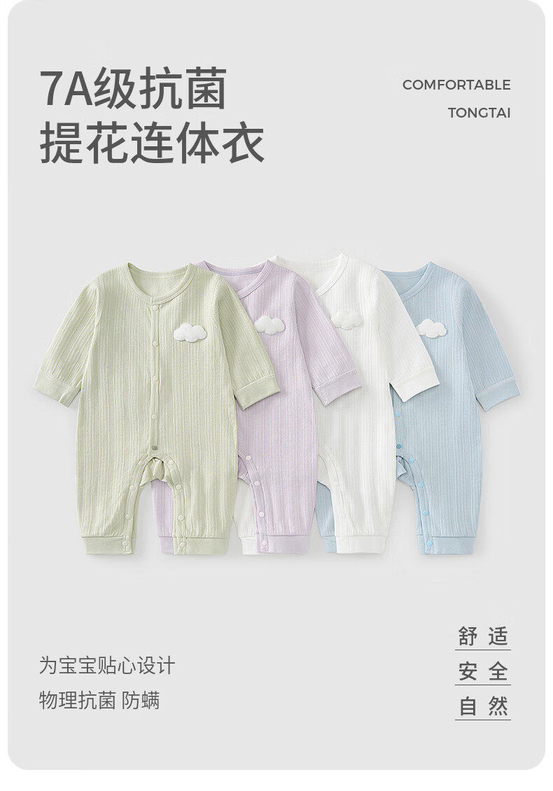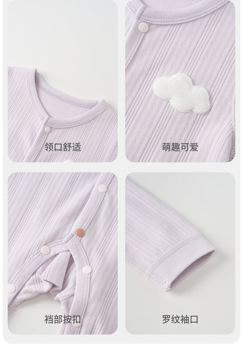 童泰(TONGTAI)婴儿连体衣春秋季纯棉男女宝宝衣服哈衣爬服睡衣提花紫色73cm