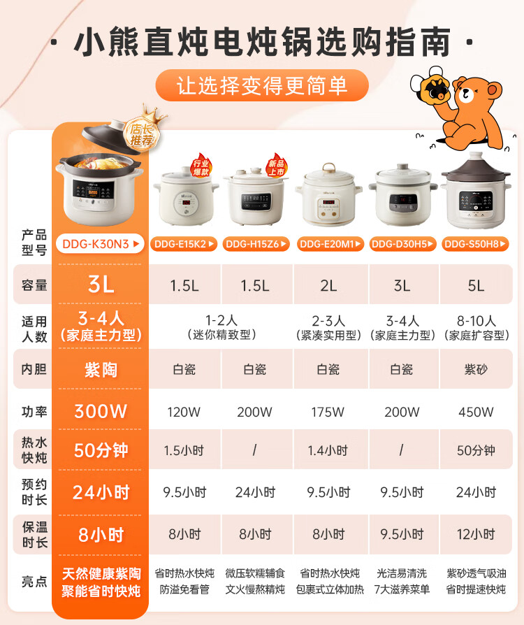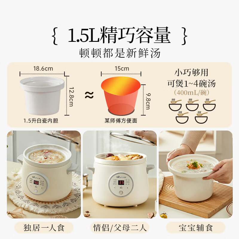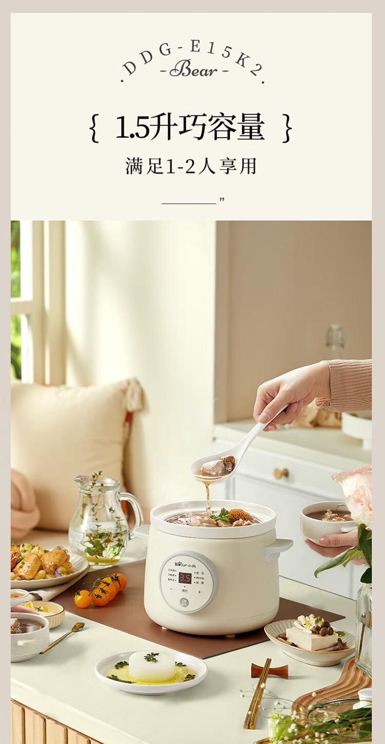 小熊(Bear)电炖锅 电炖盅 煮粥神器煲汤锅炖汤锅 BB煲婴儿煮粥锅熬粥宝宝炖盅小型1-2人辅食锅E15K2 1.5L