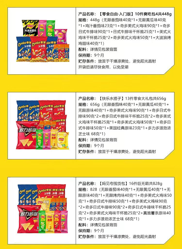 乐事(Lay's) 大礼包448g薯片辣味休闲食品爱意满满大礼盒送小朋友零食大礼包 【零食自由·入门版】10件爽吃包共448g