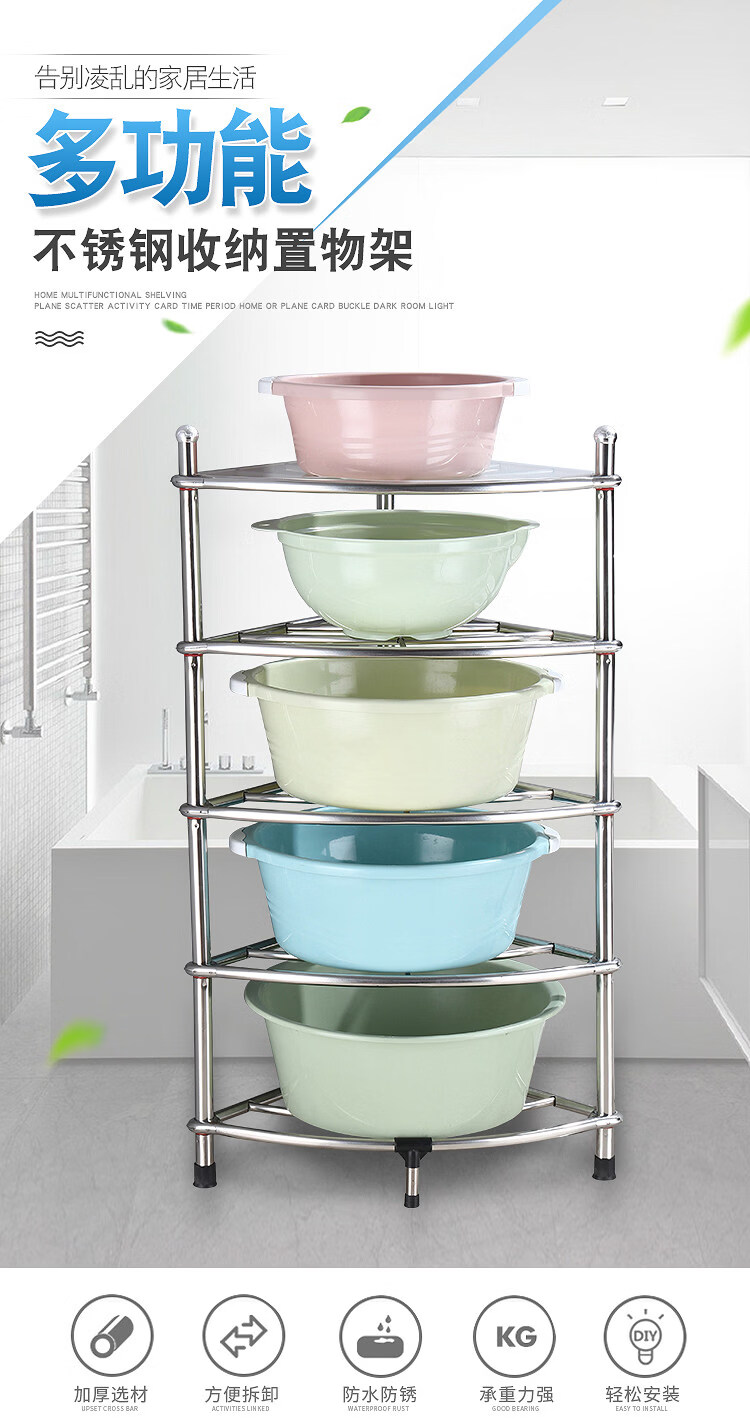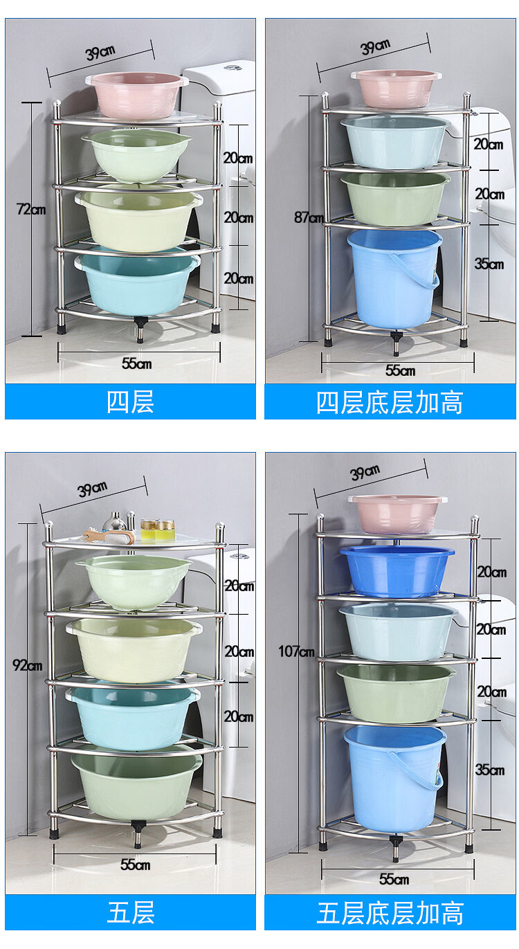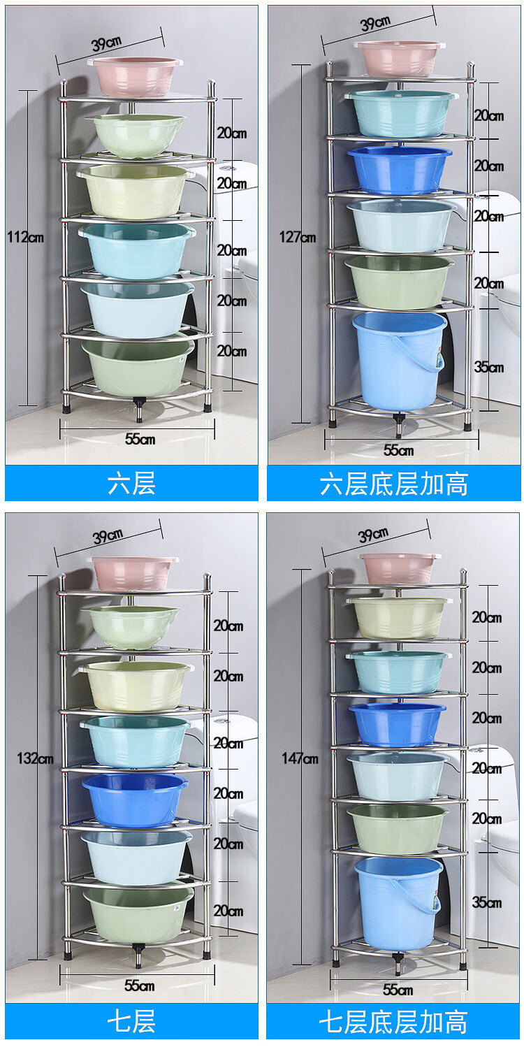 洗脸盆置物架不锈钢脸盆架宿舍落地三角架卫生间置物架浴室转角洗 六层