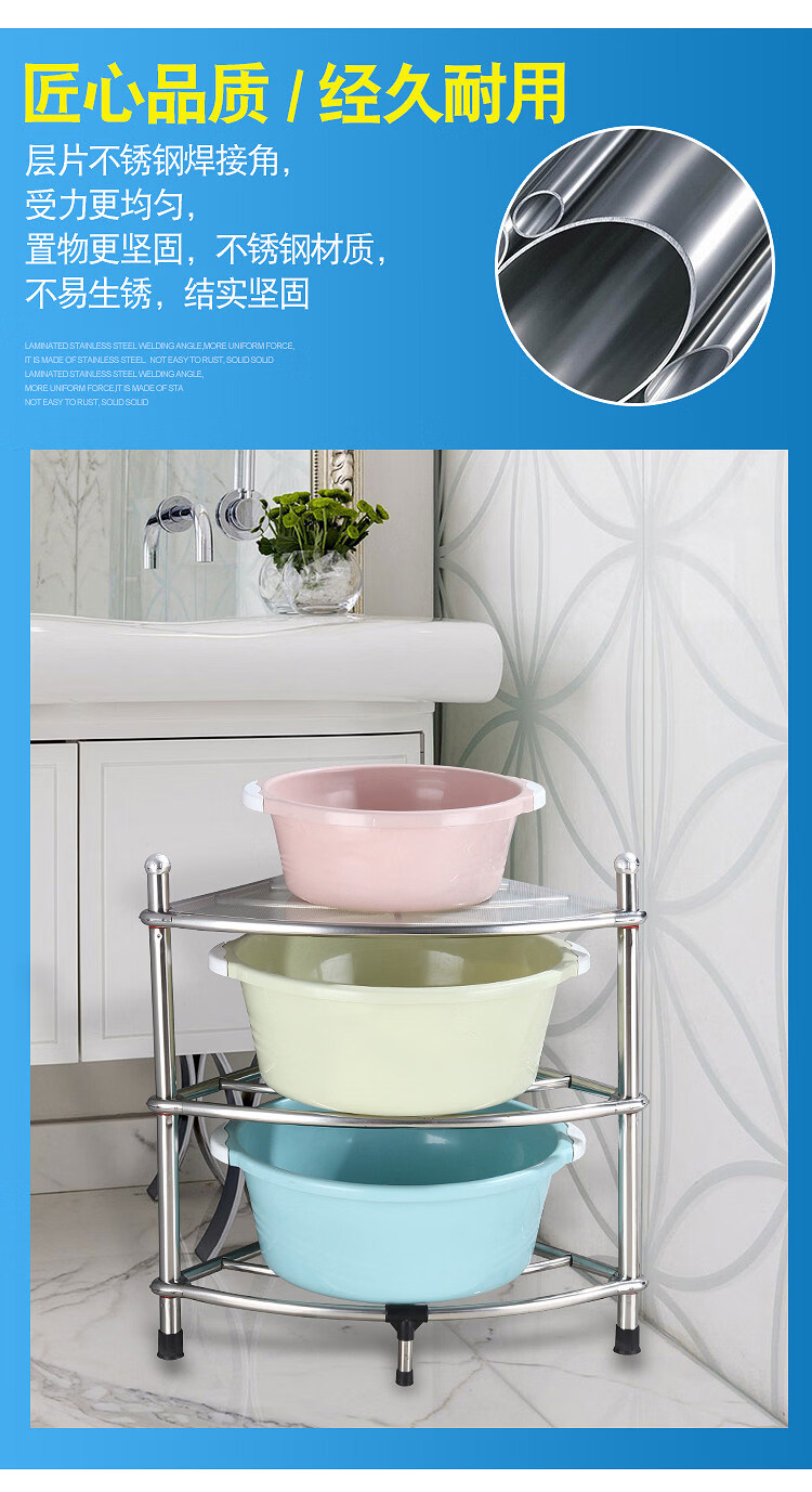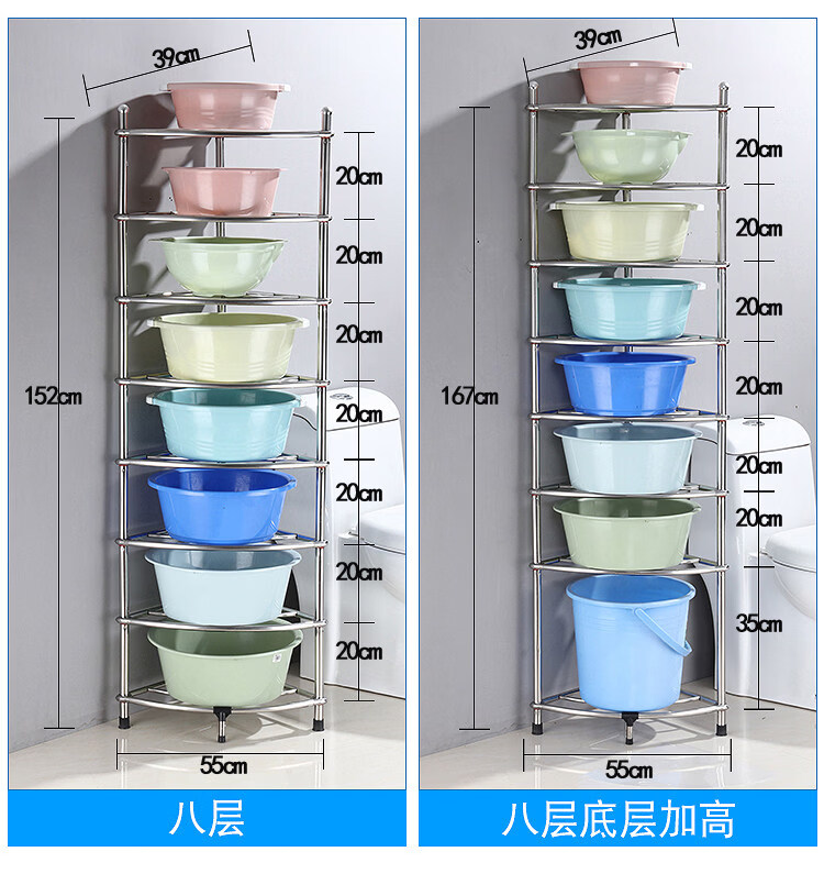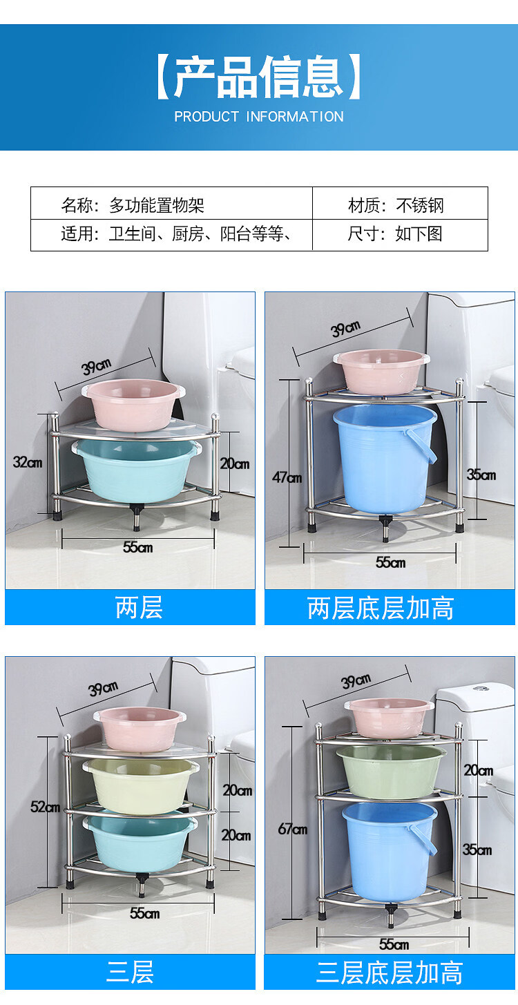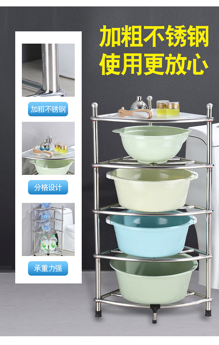 洗脸盆置物架不锈钢脸盆架宿舍落地三角架卫生间置物架浴室转角洗 六层