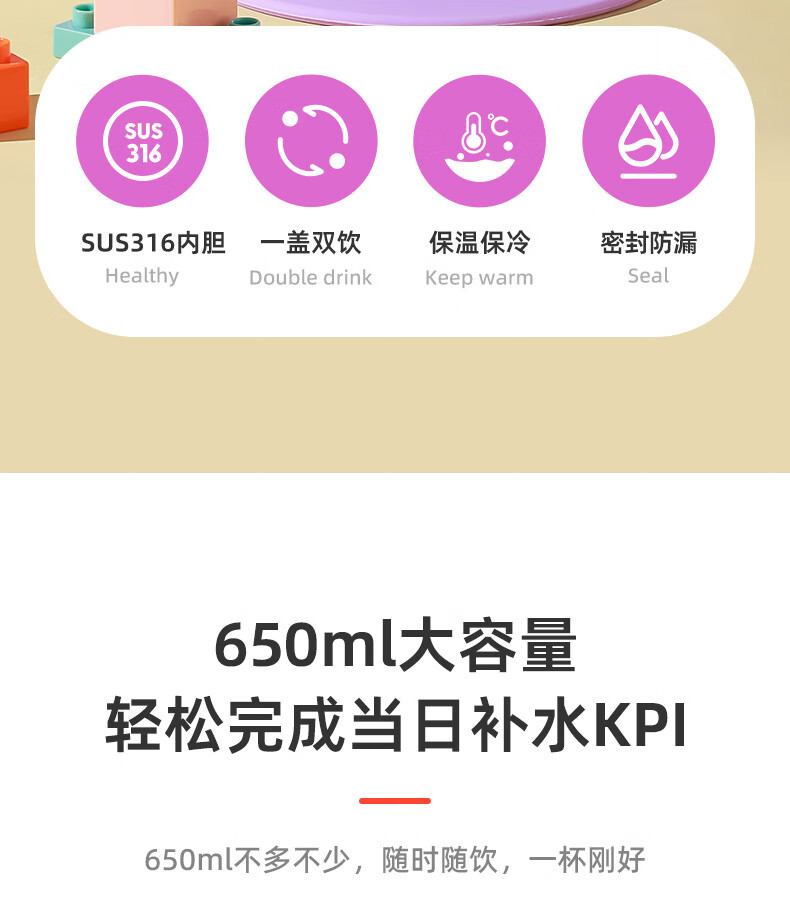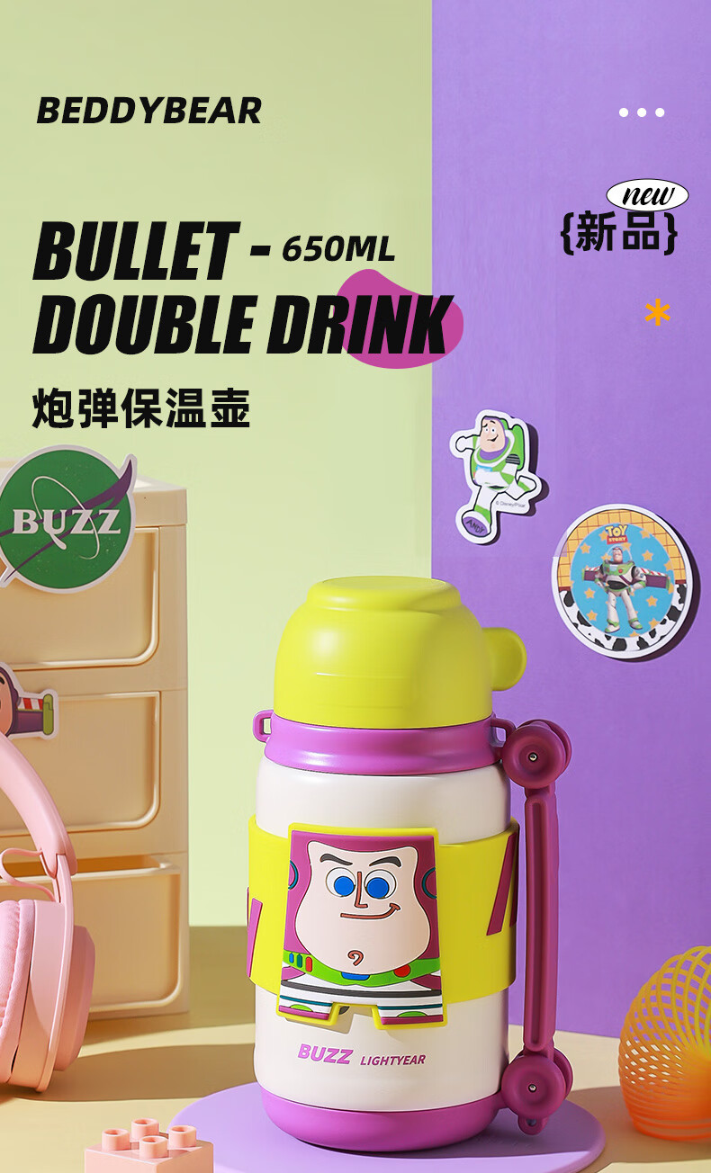 杯具熊儿童保温杯男女学生大容量保温壶两用户外便携水杯上学杯子 炮弹保温壶-亚刻奥特曼650ml