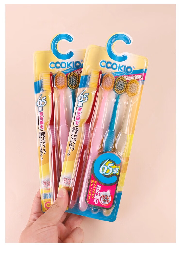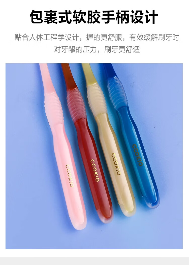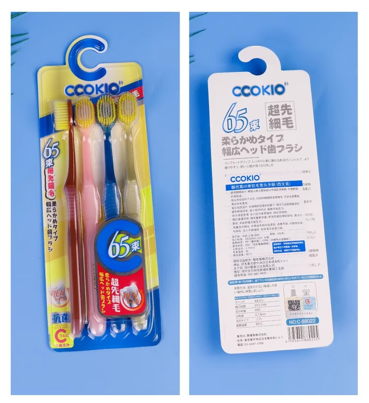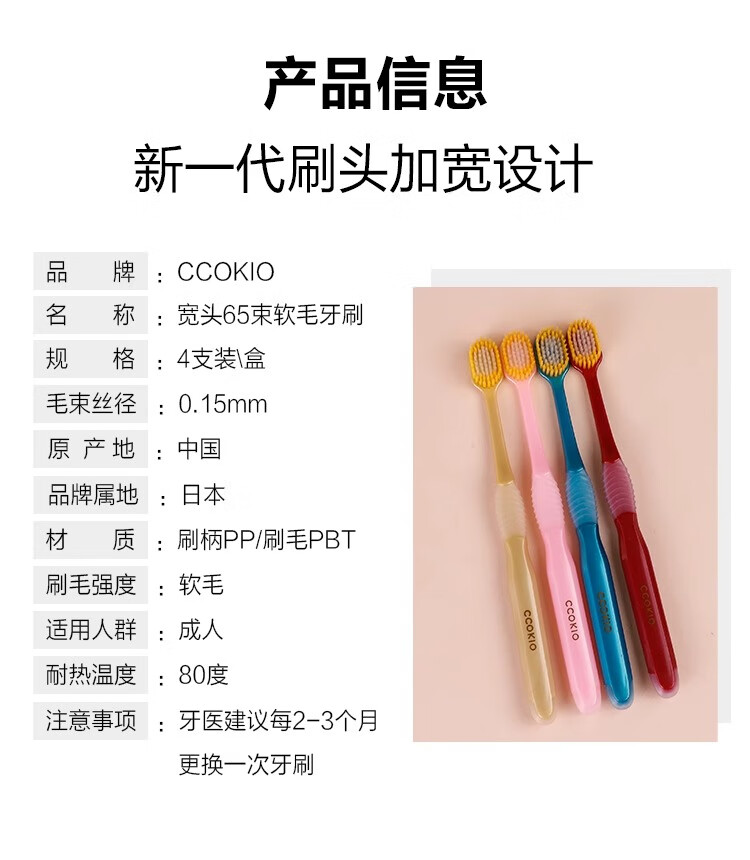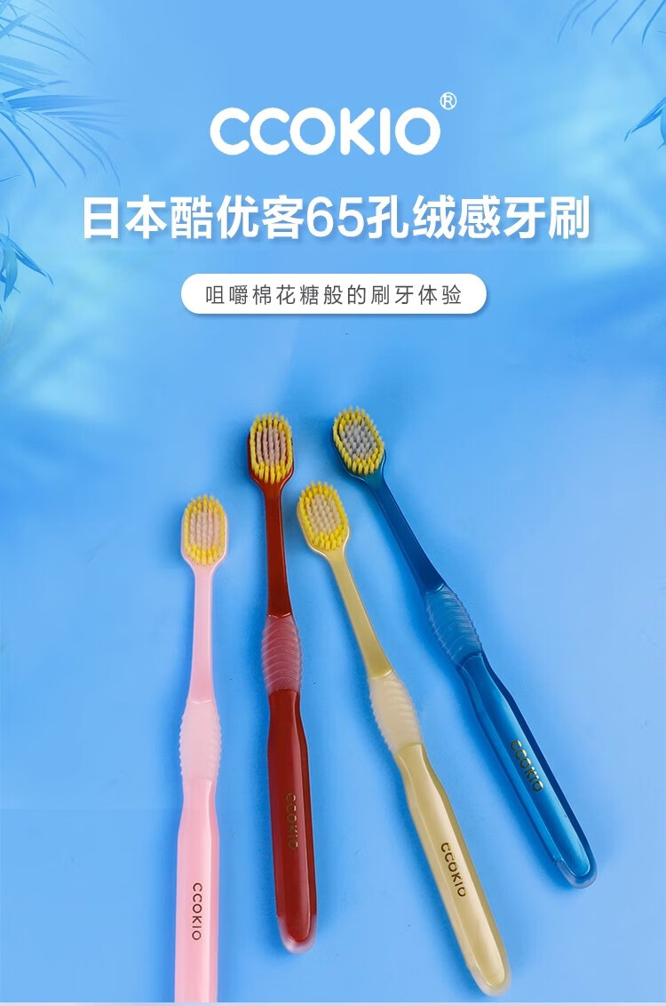 CCOKIO日本宽头65孔牙刷软毛酷优客成人家用男女士专用正品家庭装 65孔羽感宽头牙刷 1盒 4支 /盒 4支