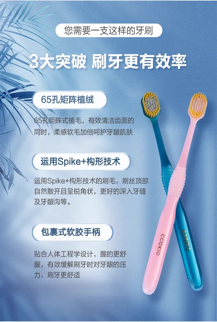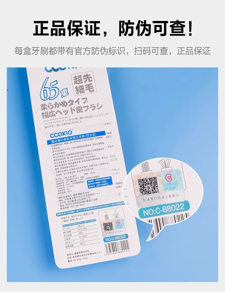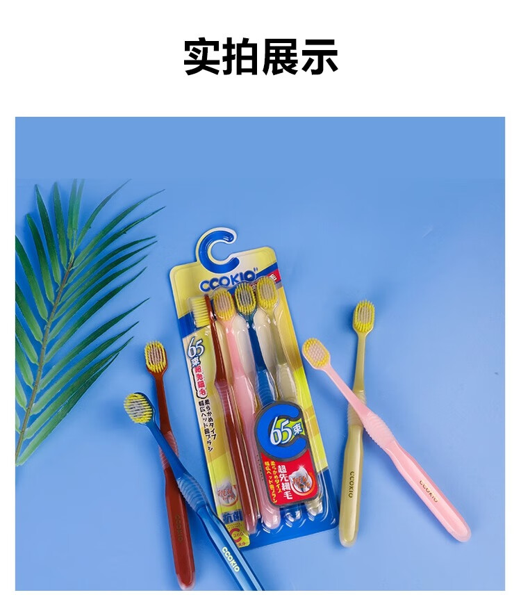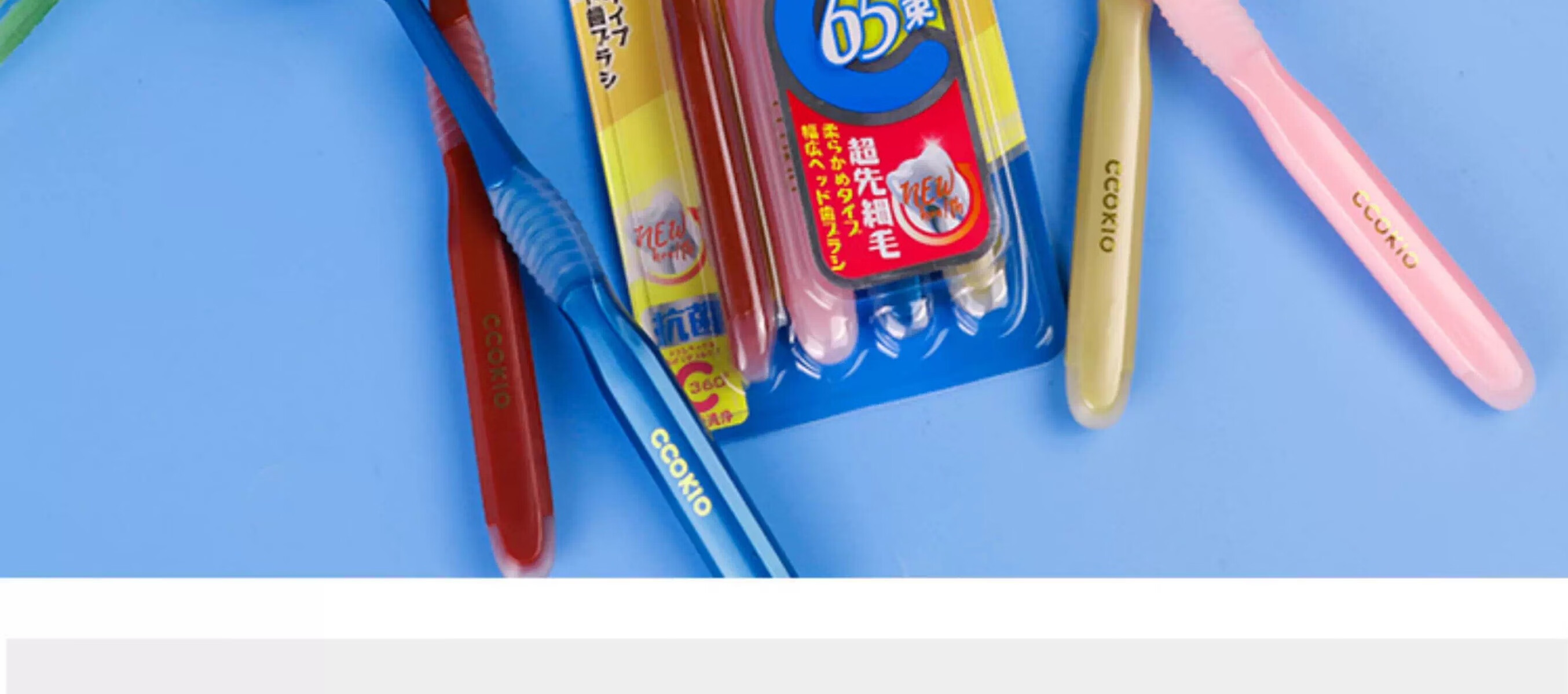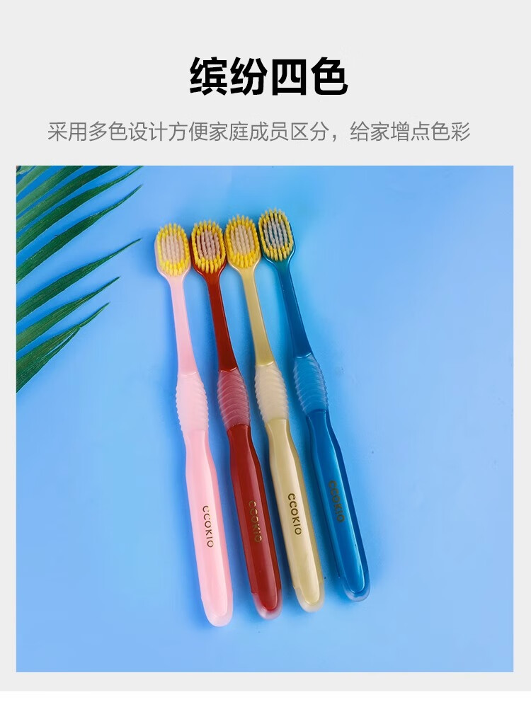 CCOKIO日本宽头65孔牙刷软毛酷优客成人家用男女士专用正品家庭装 65孔羽感宽头牙刷 1盒 4支 /盒 4支