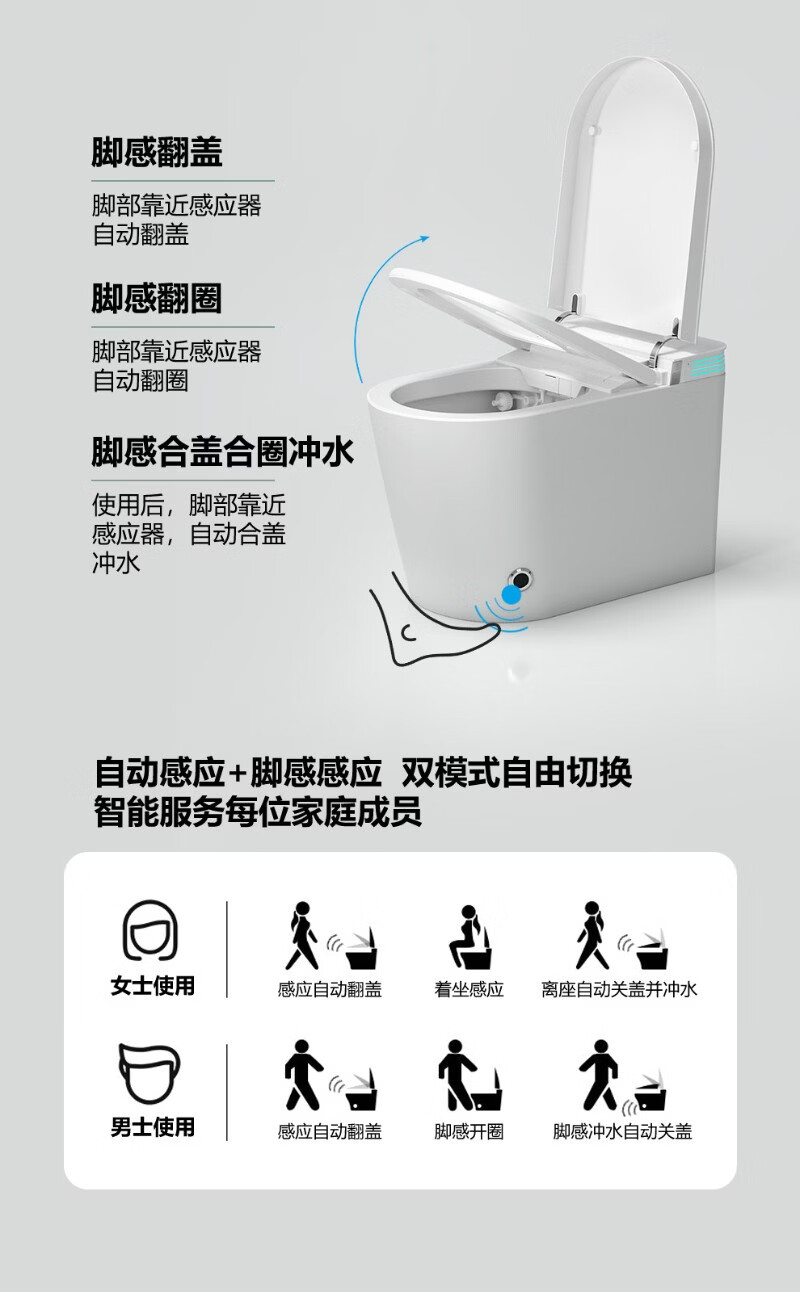 九牧(JOMOO)全自动智能马桶带水箱翻盖双水路即热无水压限制多功能电动坐便器 灰边高配【自动翻盖+喷头杀菌】 250mm坑距【送货上门+包安装】