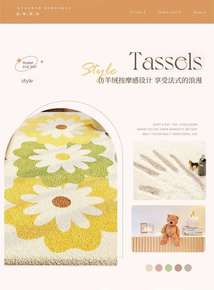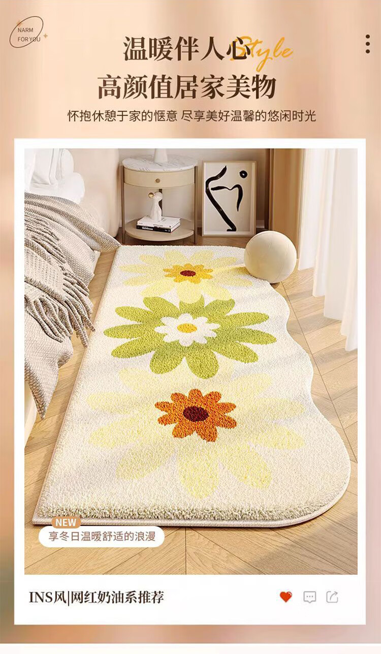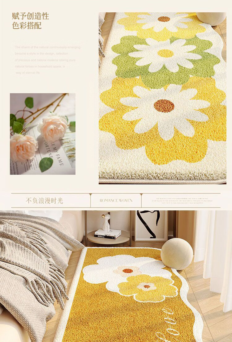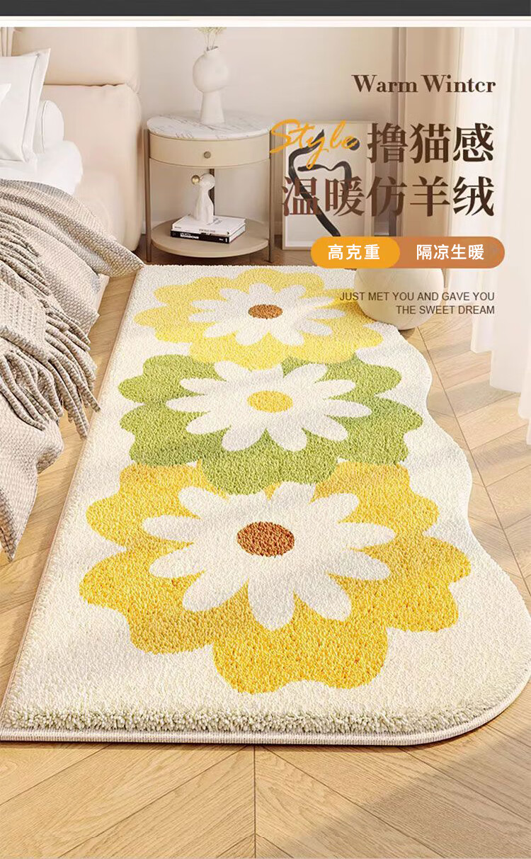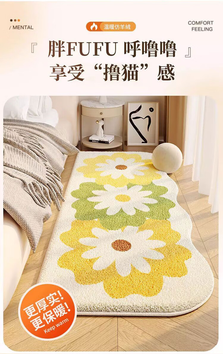 KAYE卧室床边毯 ins风仿羊绒少女房间长条加厚毯子女孩儿童房床边地毯 FYR-春晖似锦 50x140cm