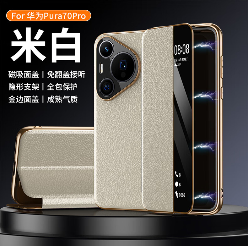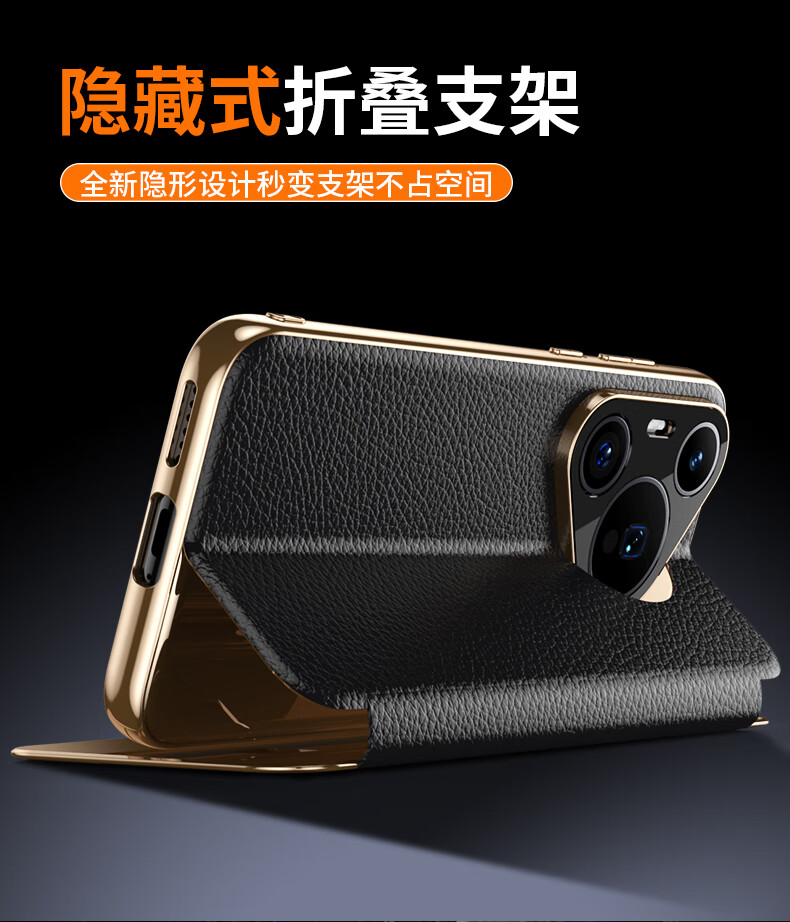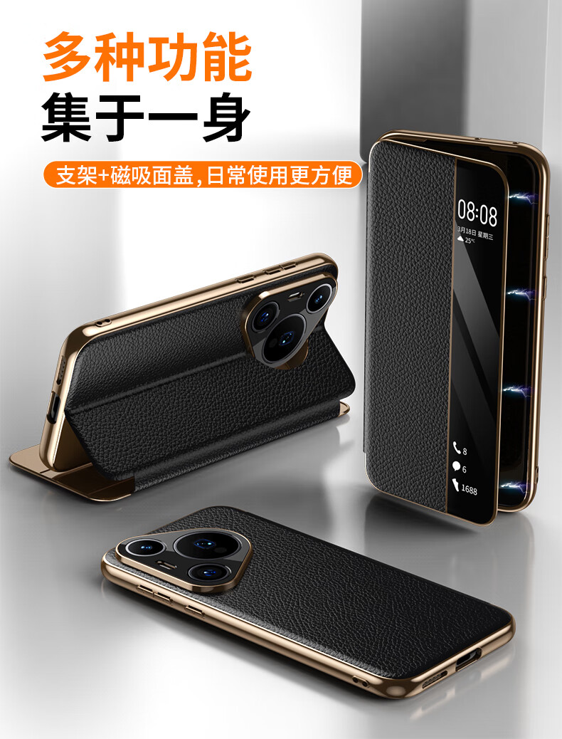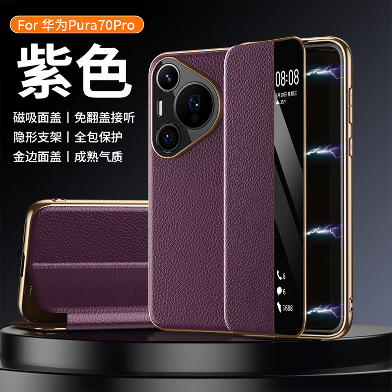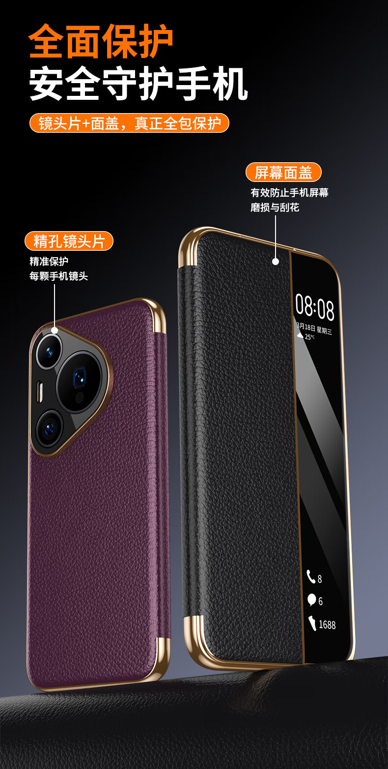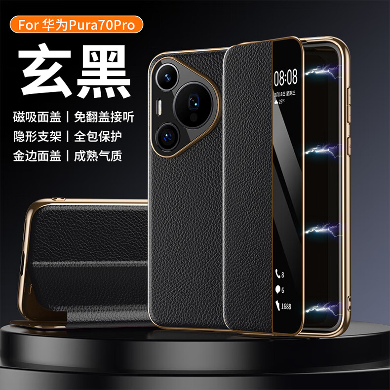 麦焕华为pura70pro手机壳智能视窗pura70保护套真皮免翻盖接听pura70ultra头层牛皮散热保护壳 【黑色】头层真皮 华为pura70ultra